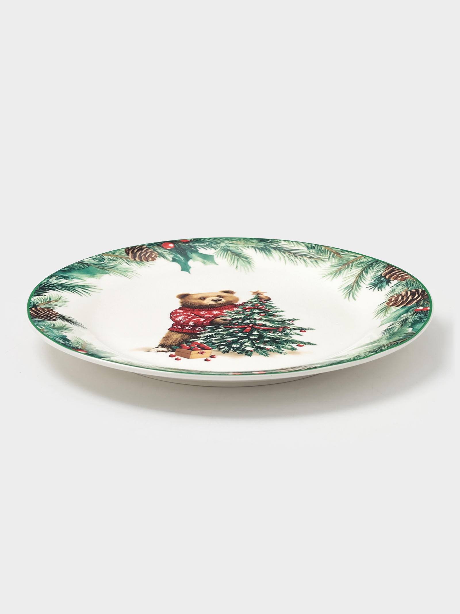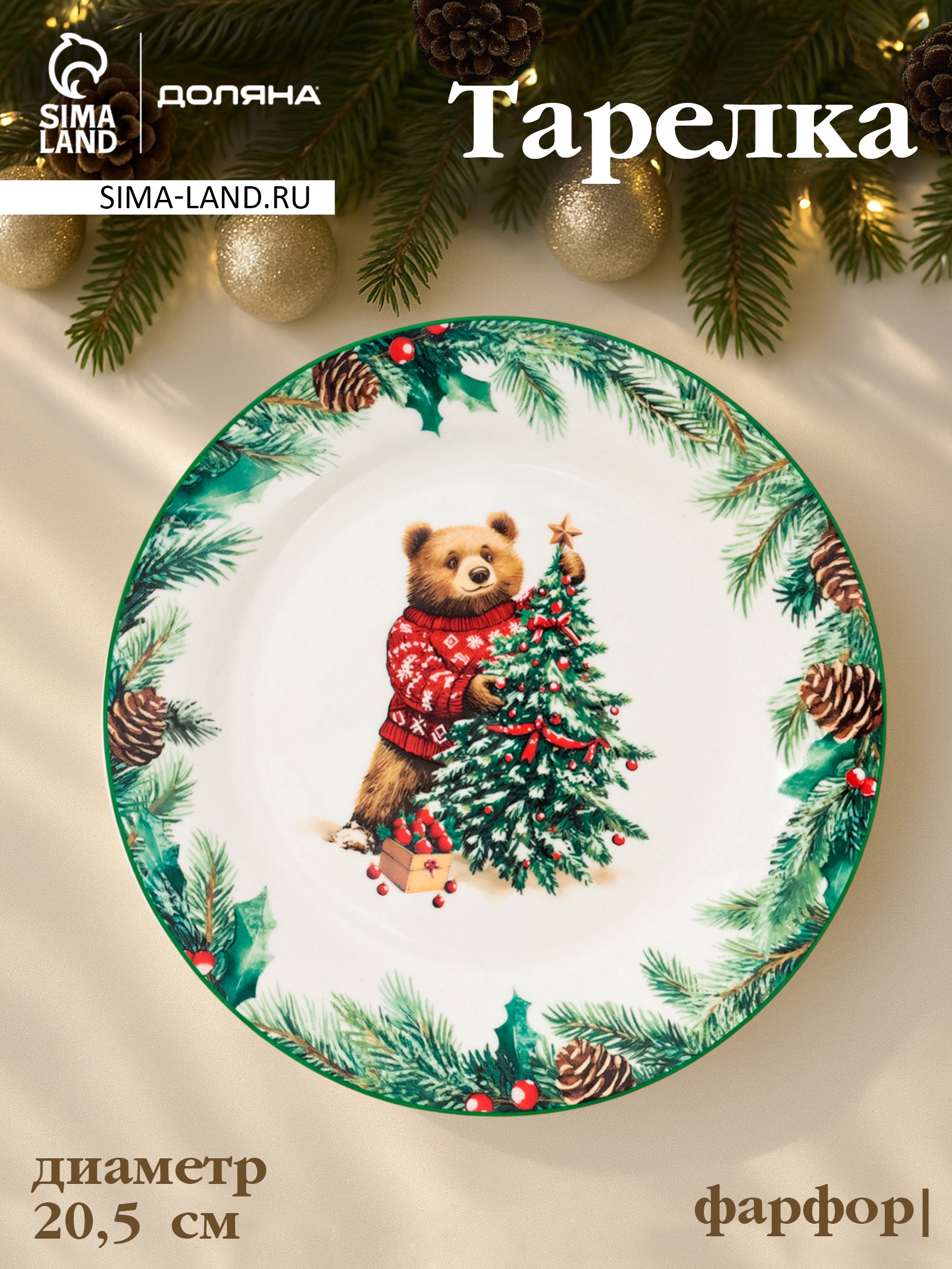 Тарелка новогодняя доляна «сказки зимнего леса», D=20.5 см, фарфор, белая