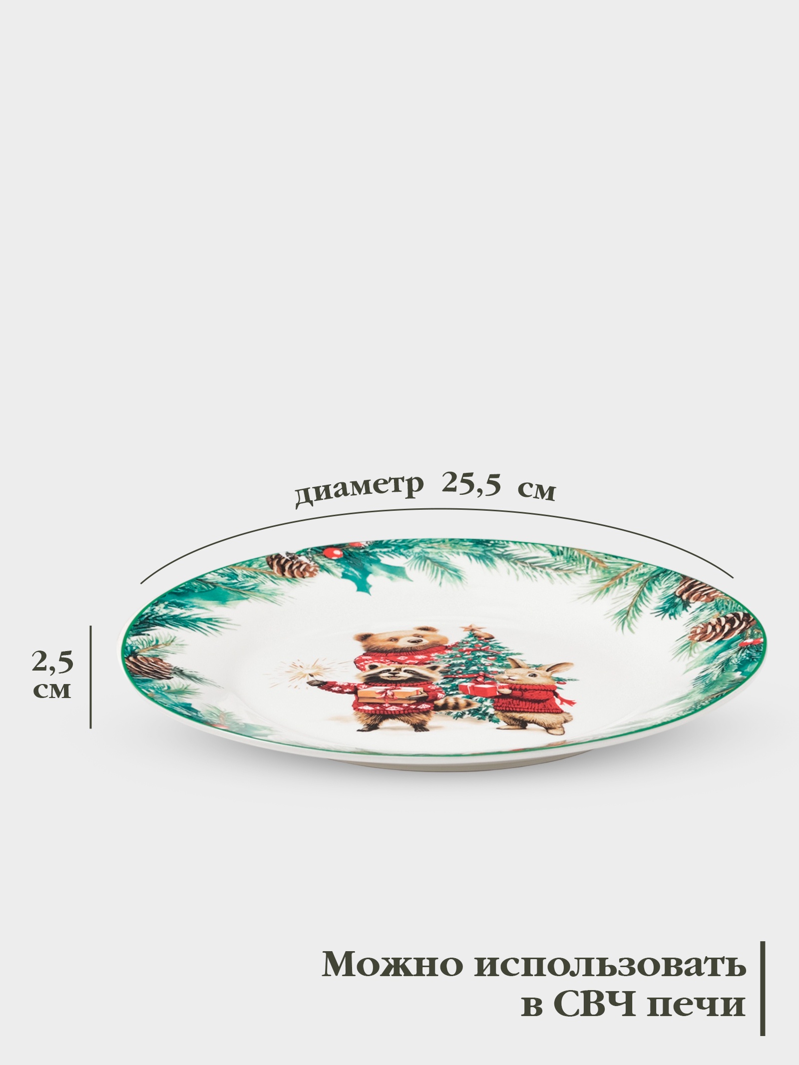 Тарелка новогодняя доляна «сказки зимнего леса», D=25.5 см, фарфор, белая