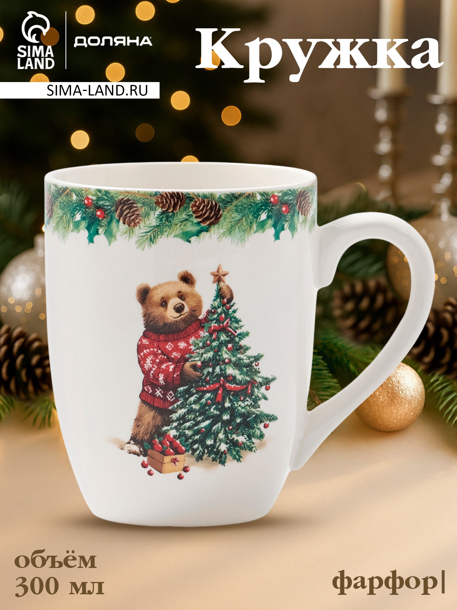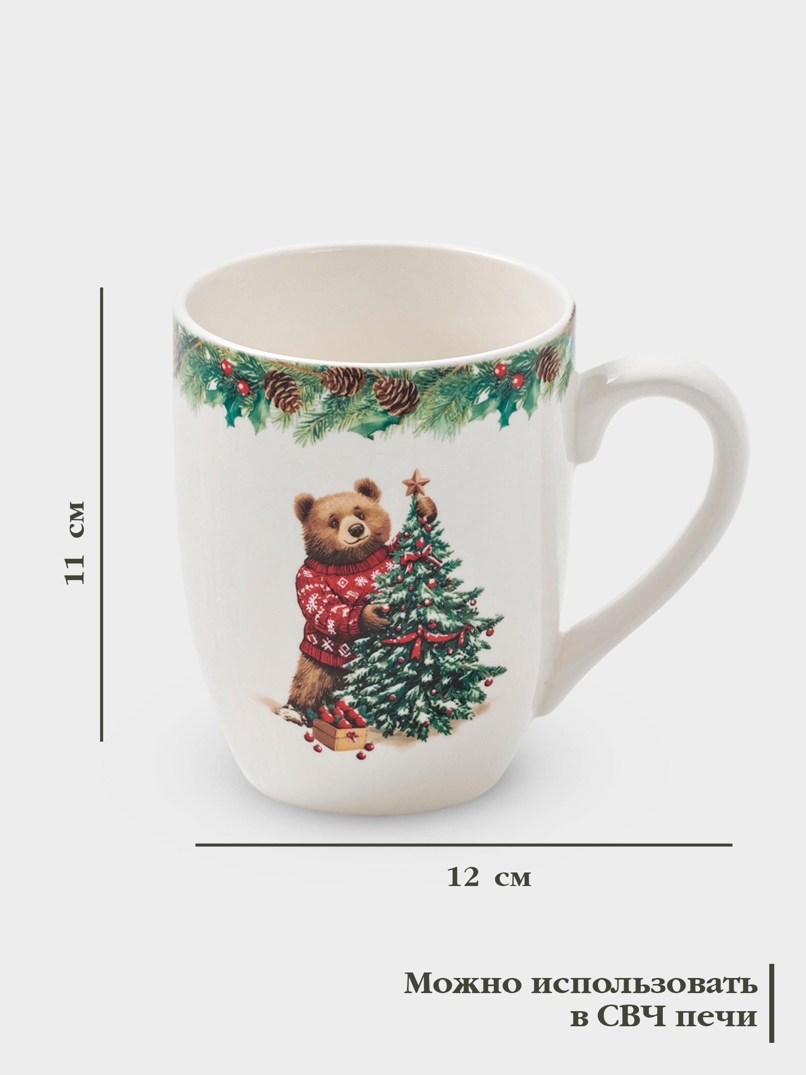 Кружка новогодняя доляна «сказки зимнего леса», 300 мл, фарфор, белая