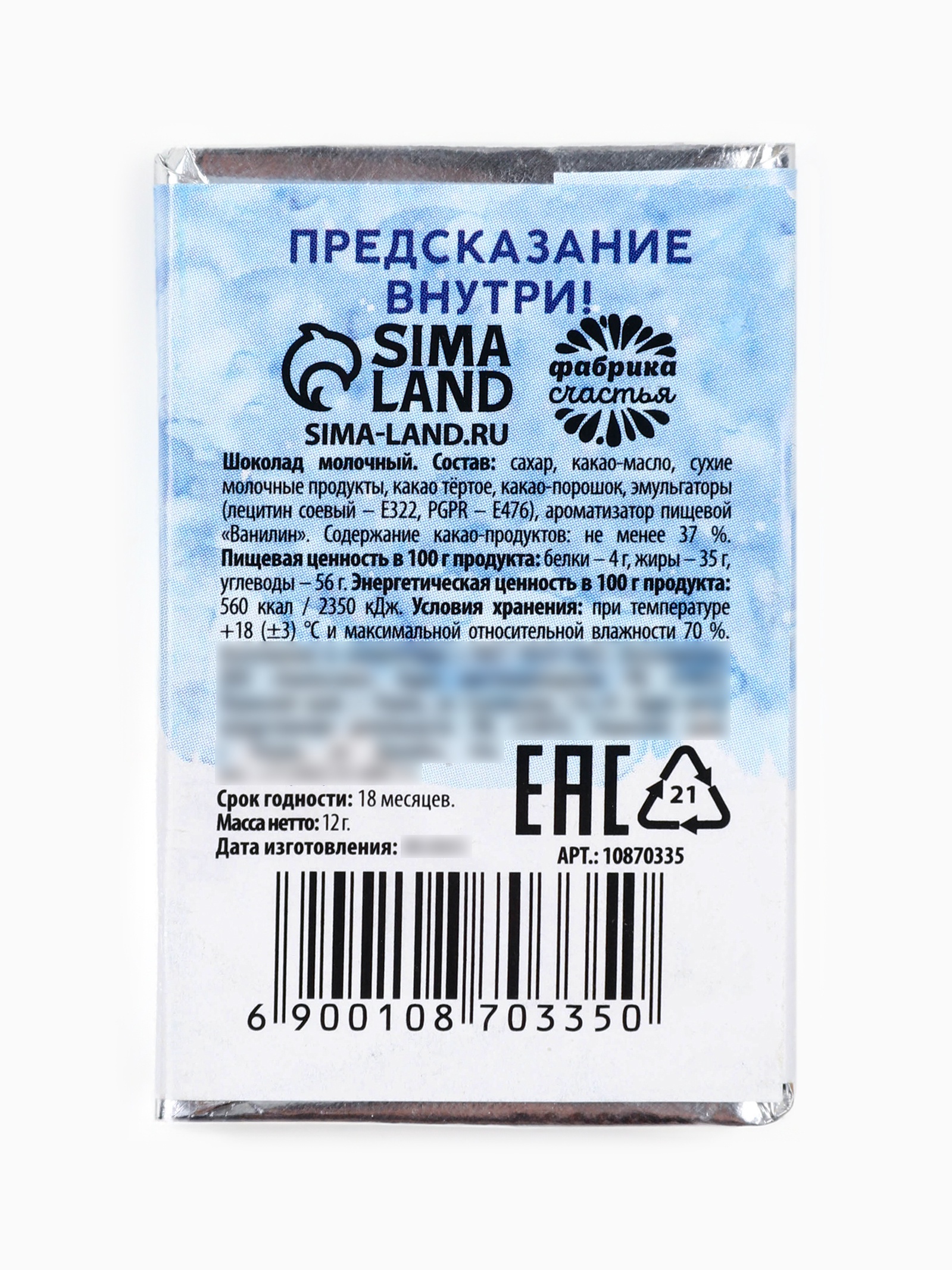 Новогодний шоколад «с новым годом», 12 г. Белки, г:4|Вес нетто, г:12|Жиры, г:35|Углеводы, г:56|Энергетическая ценность, ккал:560|Символ года:Нет|Тематика праздника:Новый год|Форма:Плитка|Вид шоколада:Молочный|Добавки:Без добавок|Страна:Россия  развернуть описание ▼