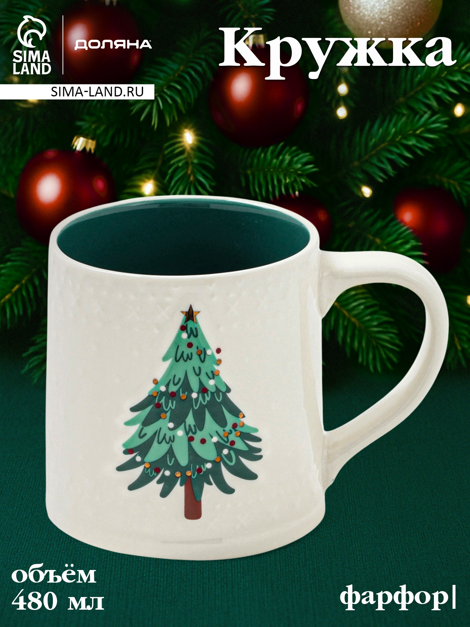 Кружка новогодняя доляна «ёлочка», 480 мл, фарфор, белая