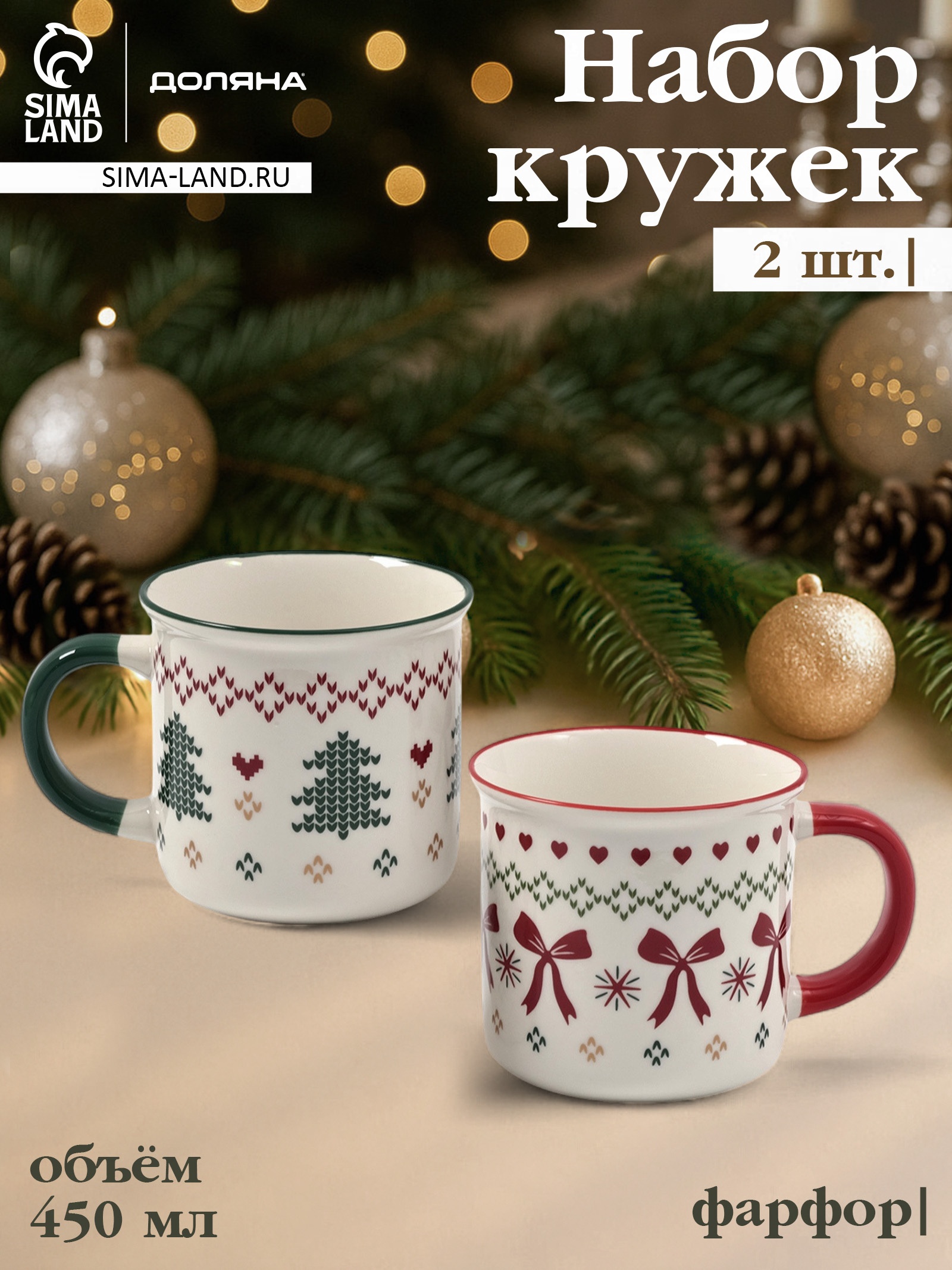 Набор кружек новогодних доляна «волшебство на двоих», 2 шт., 450 мл, фарфор, белый