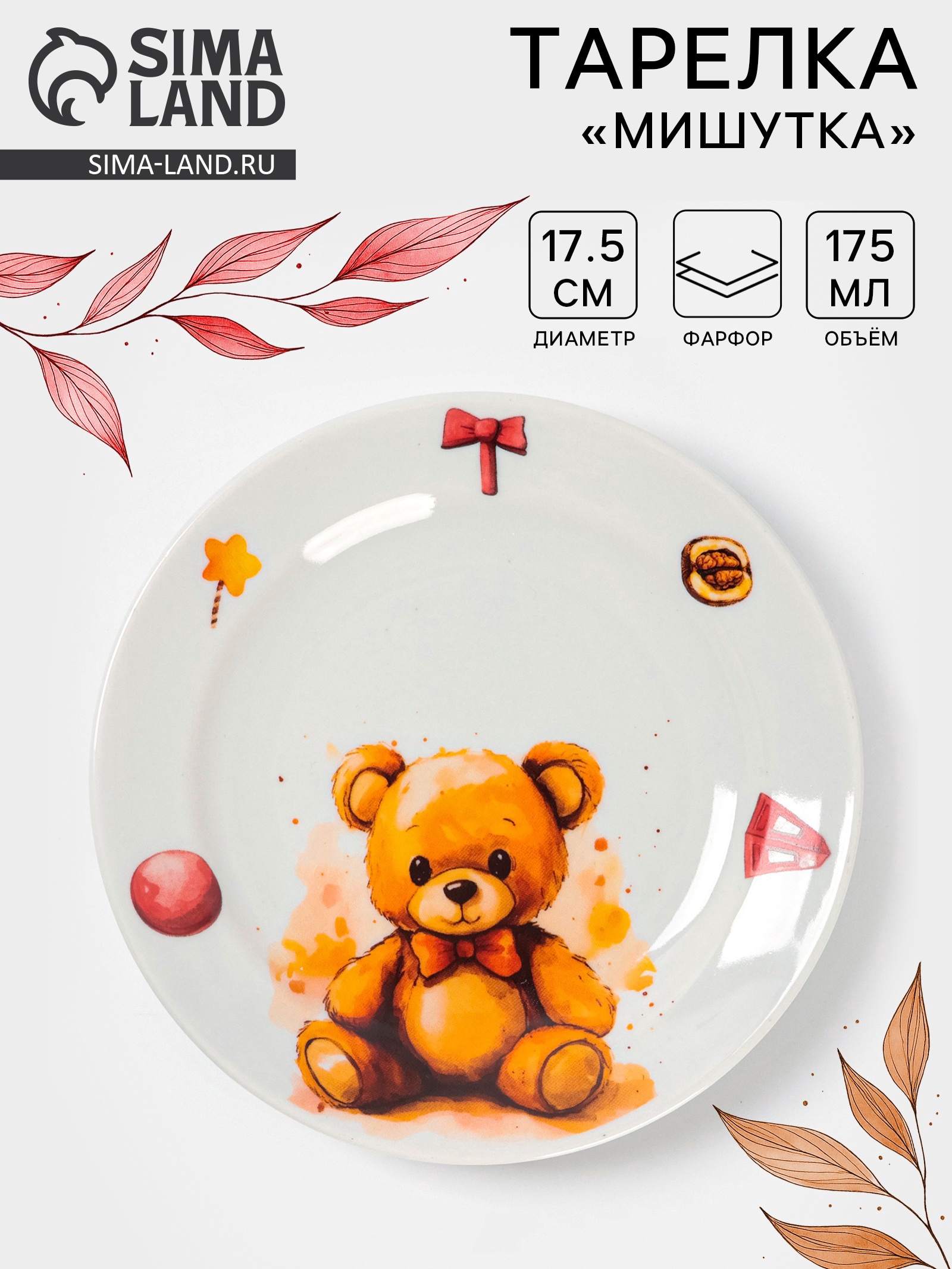 Тарелка детская дулевский фарфор «мишутка», D=17.5 см, 175 мл, белая