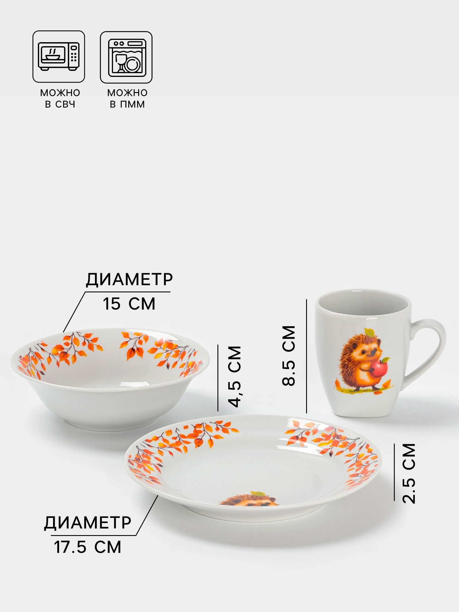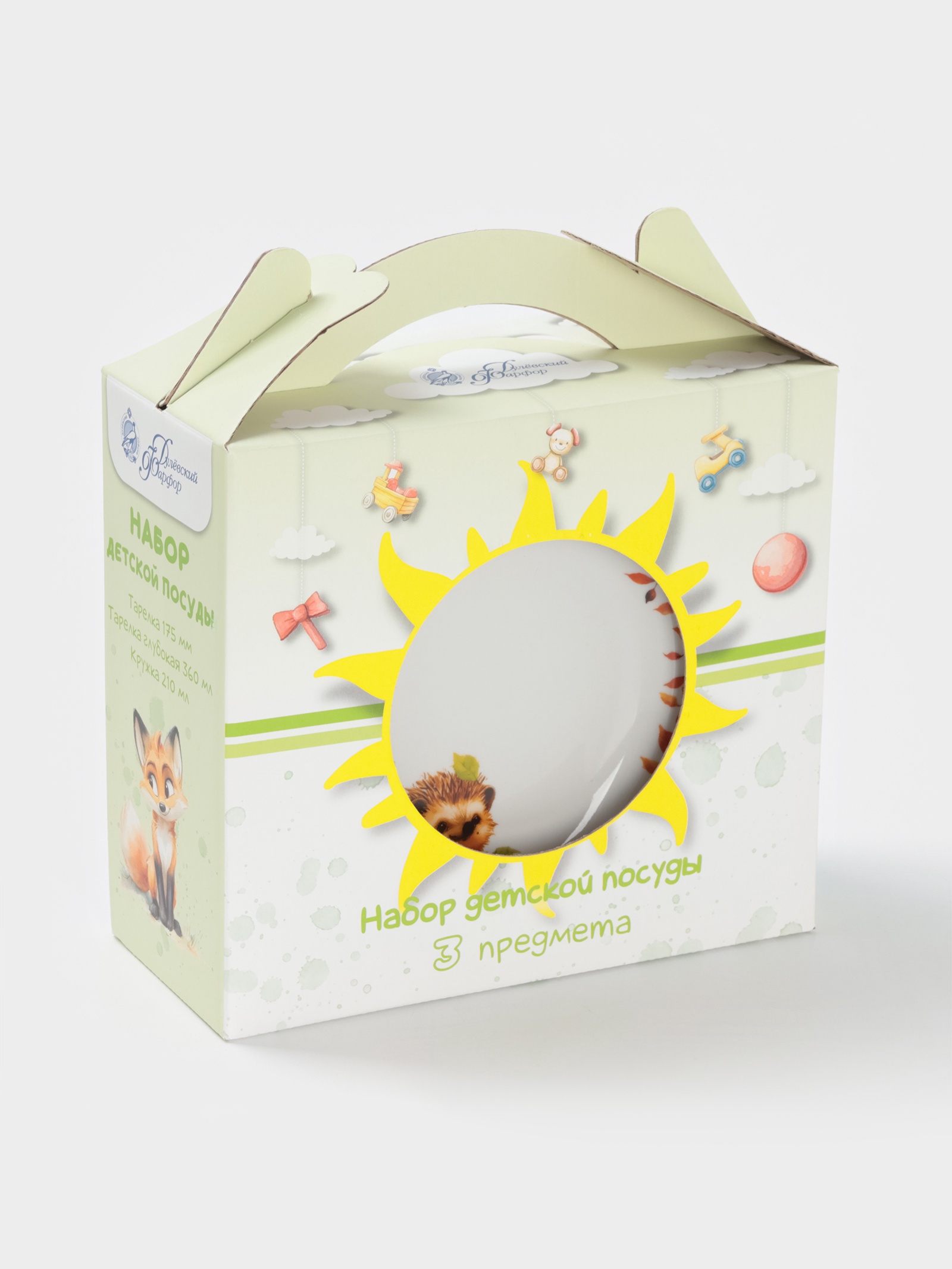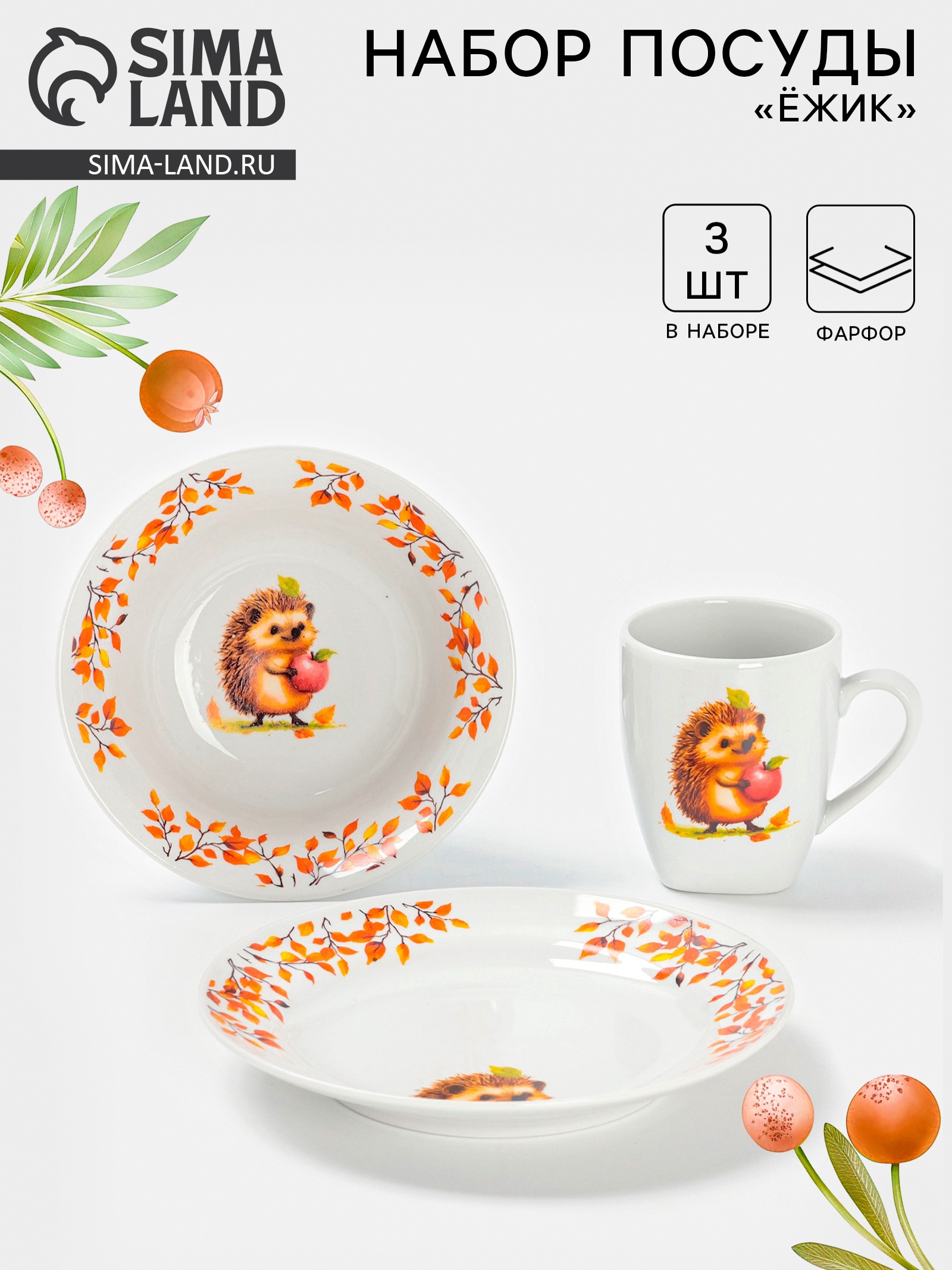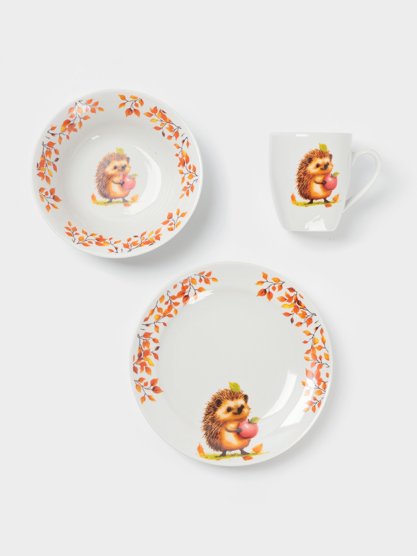 Набор детской посуды дулевский фарфор «ёжик», 3 предмета: тарелка 175 мл, миска 360 мл, кружка 210 мл, белый