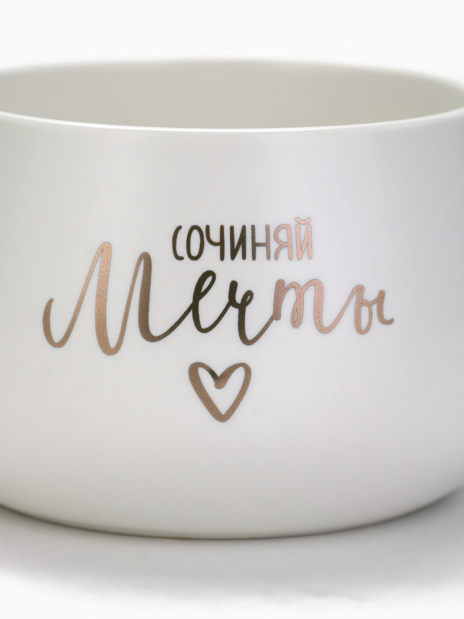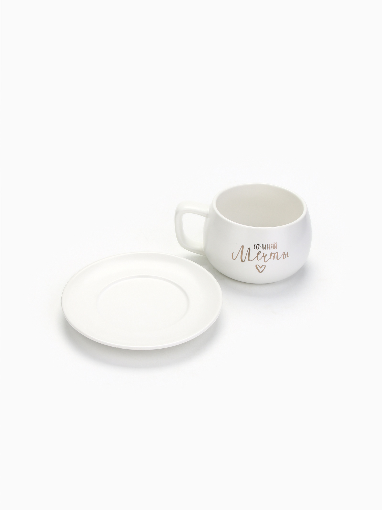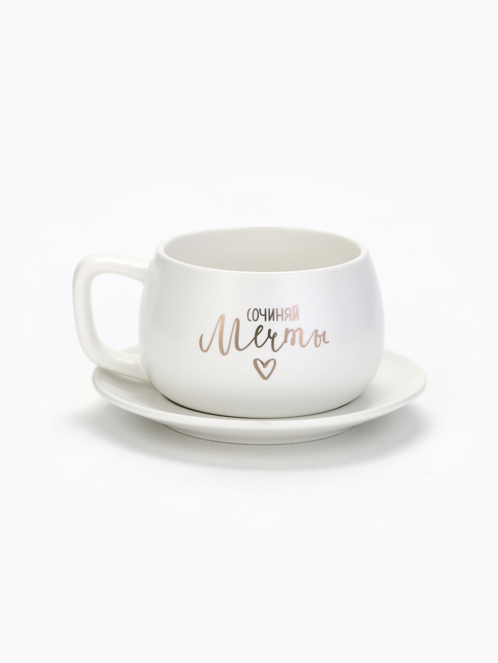 Чайная пара «сочиняй мечты»: кружка 300 мл, блюдце. Цвет:Белый|Количество персон:1|В наборе, шт.:2|Объём, мл:300|Тематика:С сердечками|Тематика:Надписи, цифры, буквы|Рисунок:Да|Материал:Керамика|Можно мыть в посудомоечной машине:Нет|Можно использовать в СВЧ-печи:Нет|Текстура:Гладкая|Особенности:С золотой отводкой|Матовая поверхность:Да|Страна:Китай  развернуть описание ▼