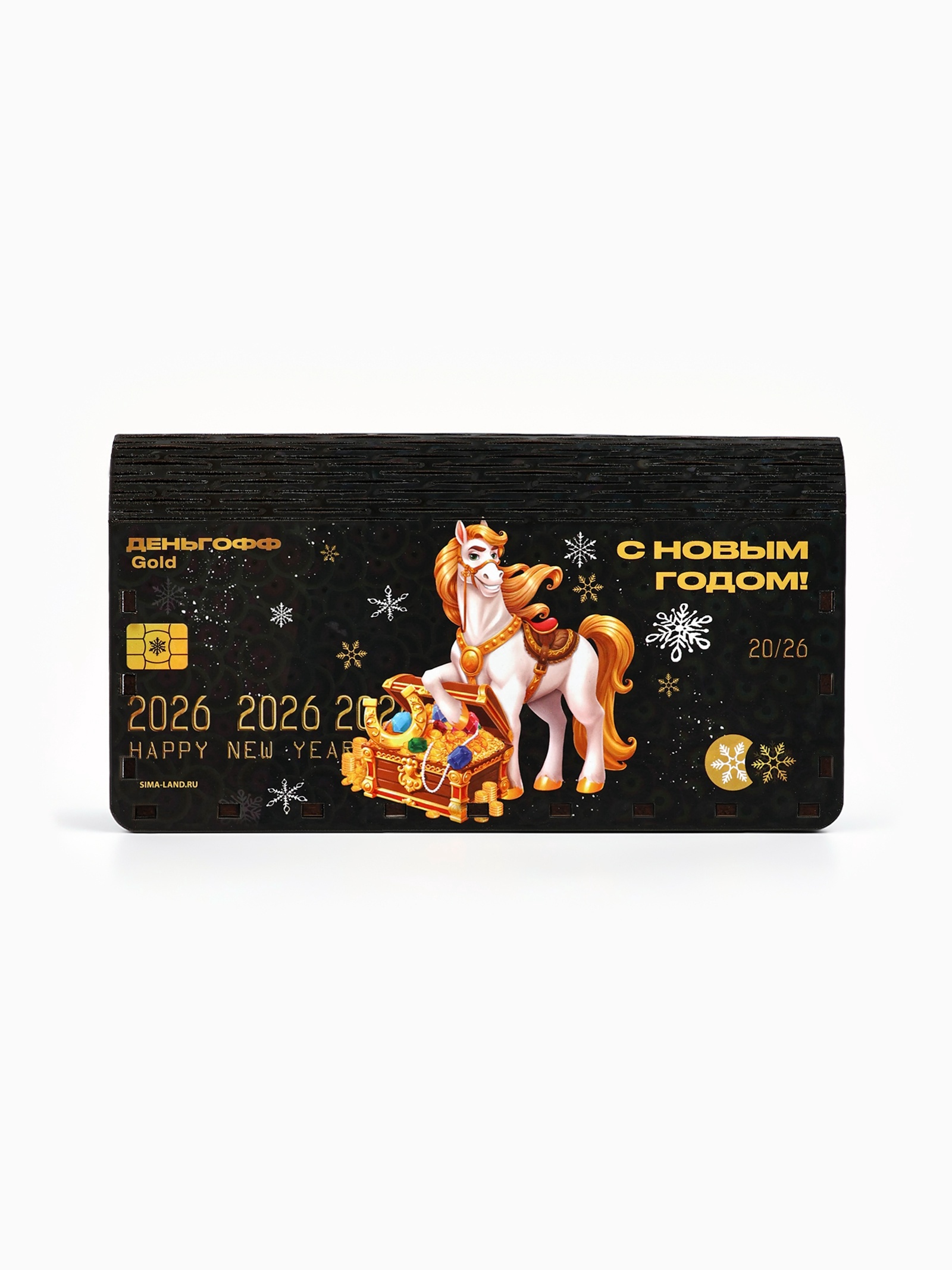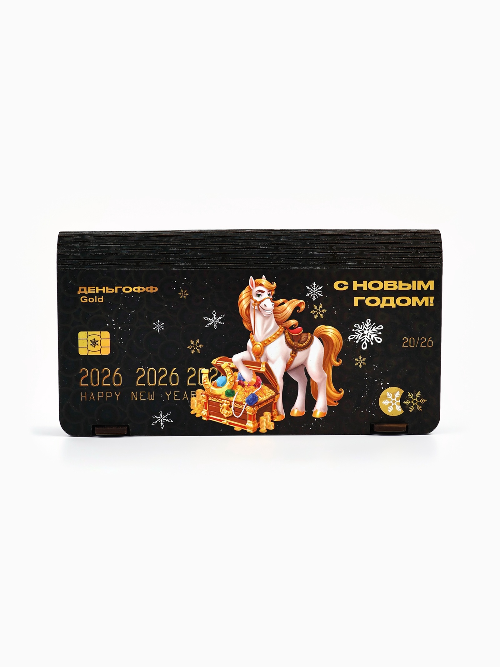 Купюрница «с новым годом». Набор:Нет|Символ года:Символ года 2026 (Лошадь)|Тематика праздника:Новый год|Материал:Дерево|Страна:Россия