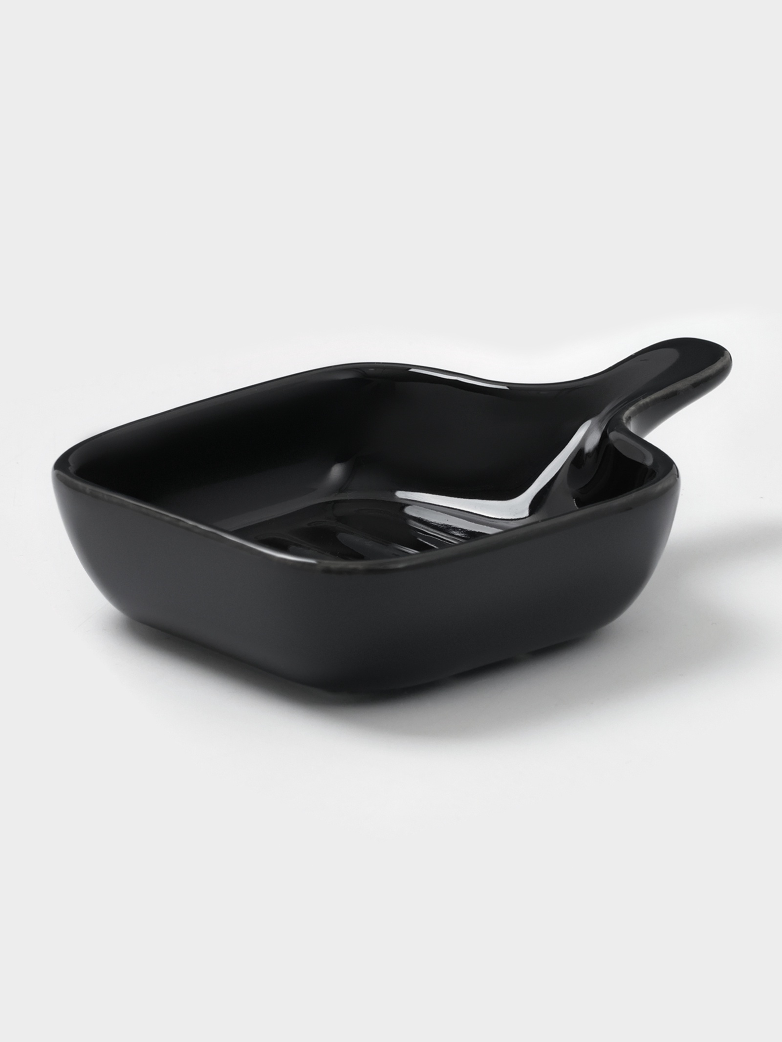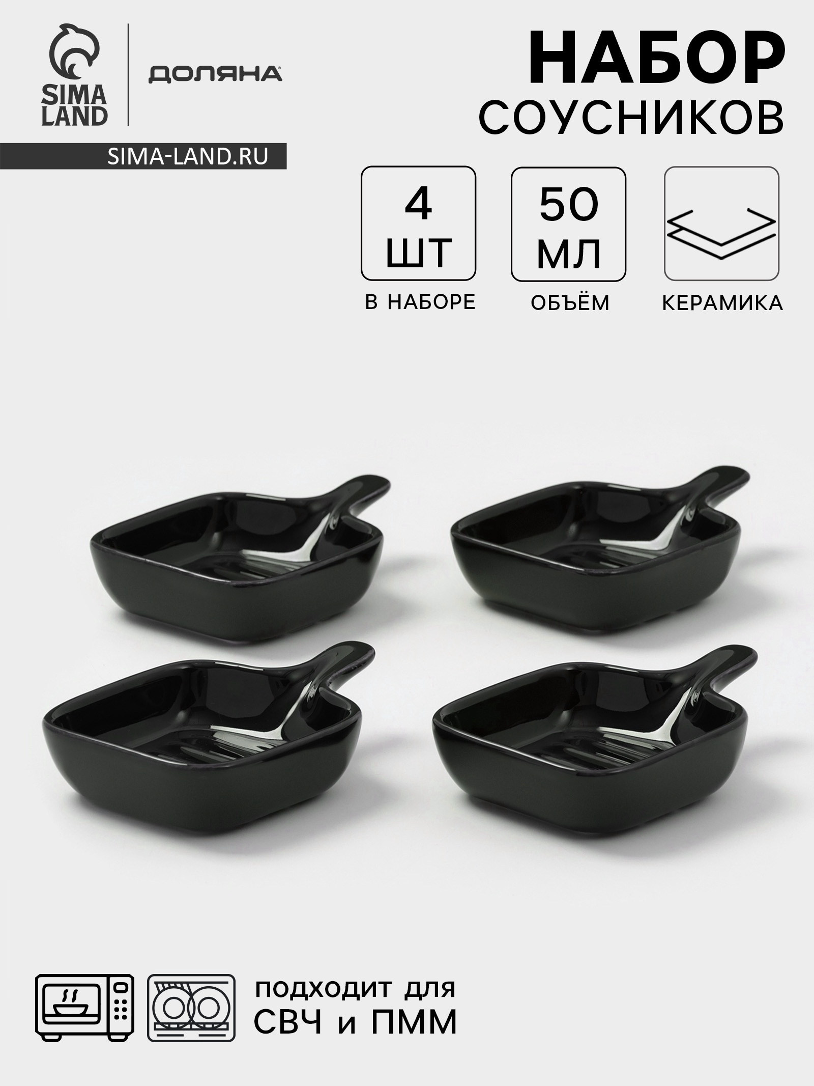 Соусники с ручкой доляна «сковорода», набор 4 шт., 50 мл, керамика, чёрные