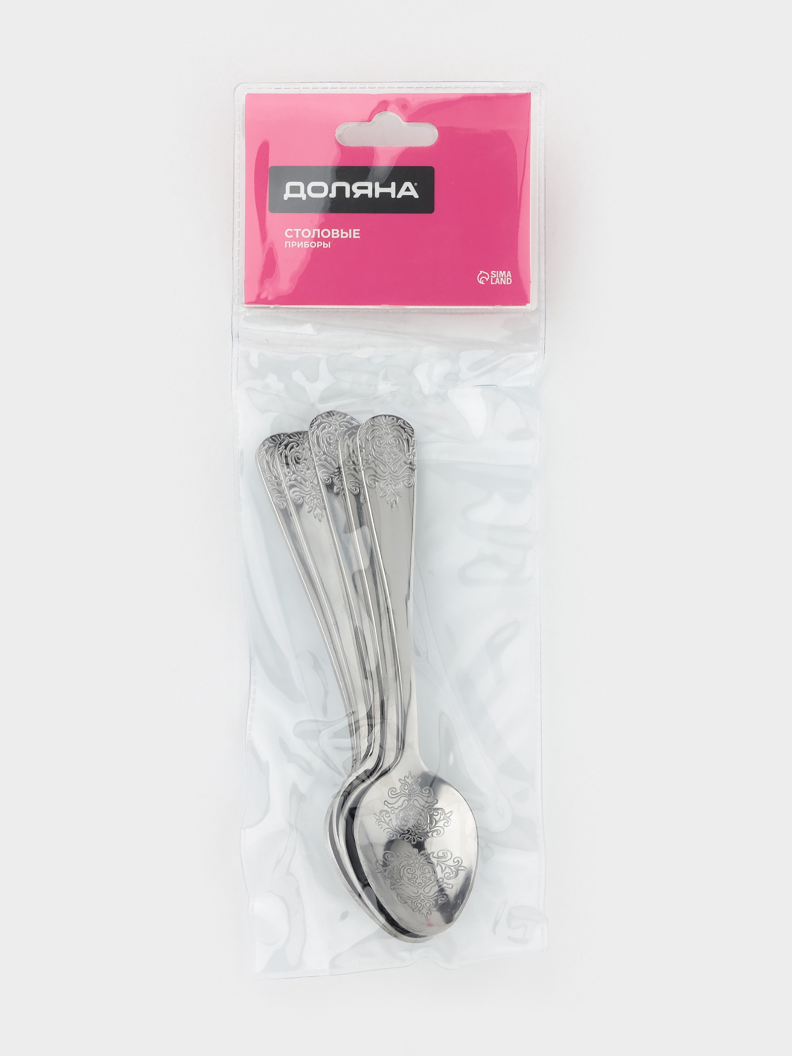 Набор чайных ложек доляна «эмили», длина 13.2 см, 6 шт., нержавеющая сталь, серебристый