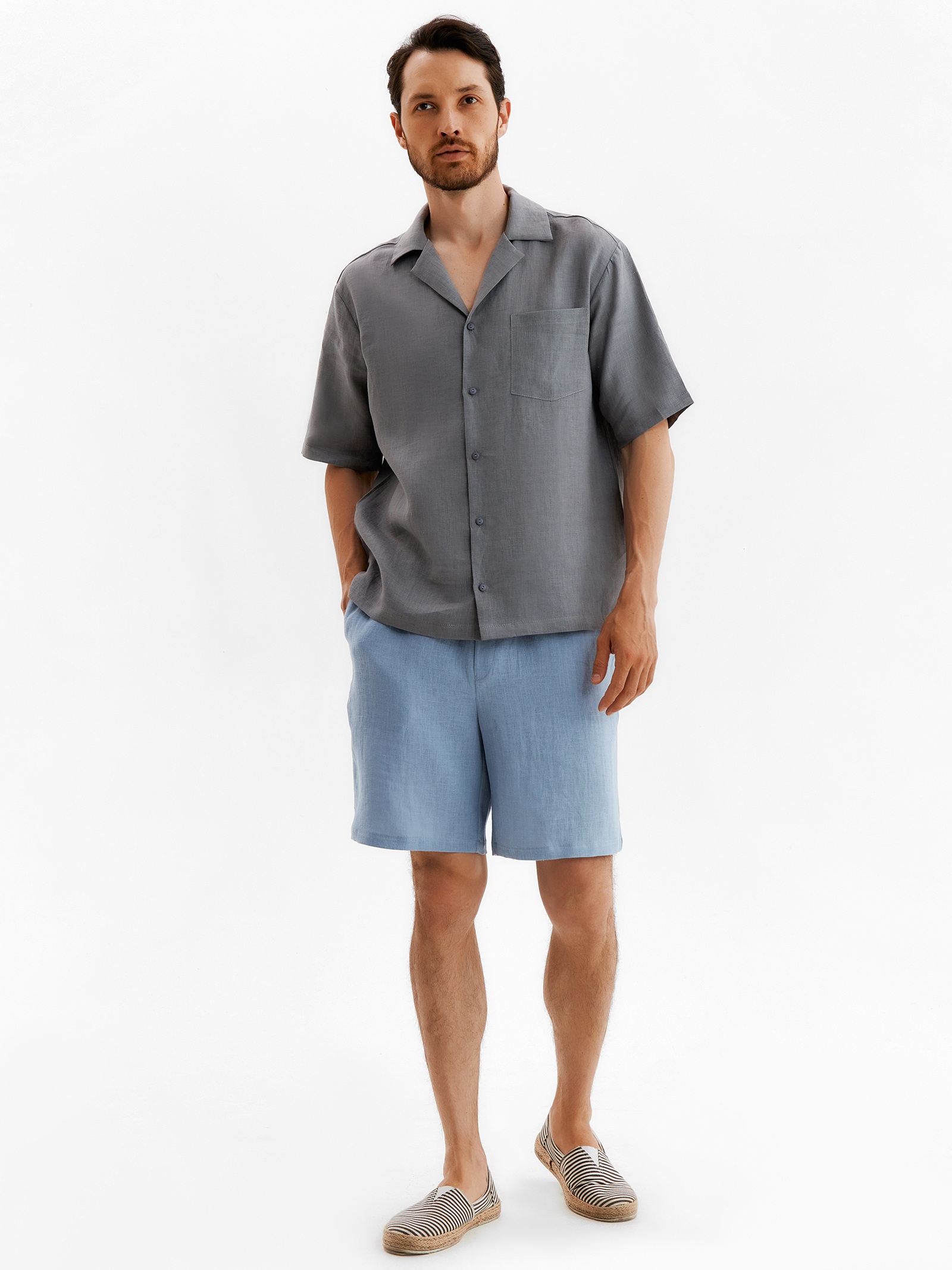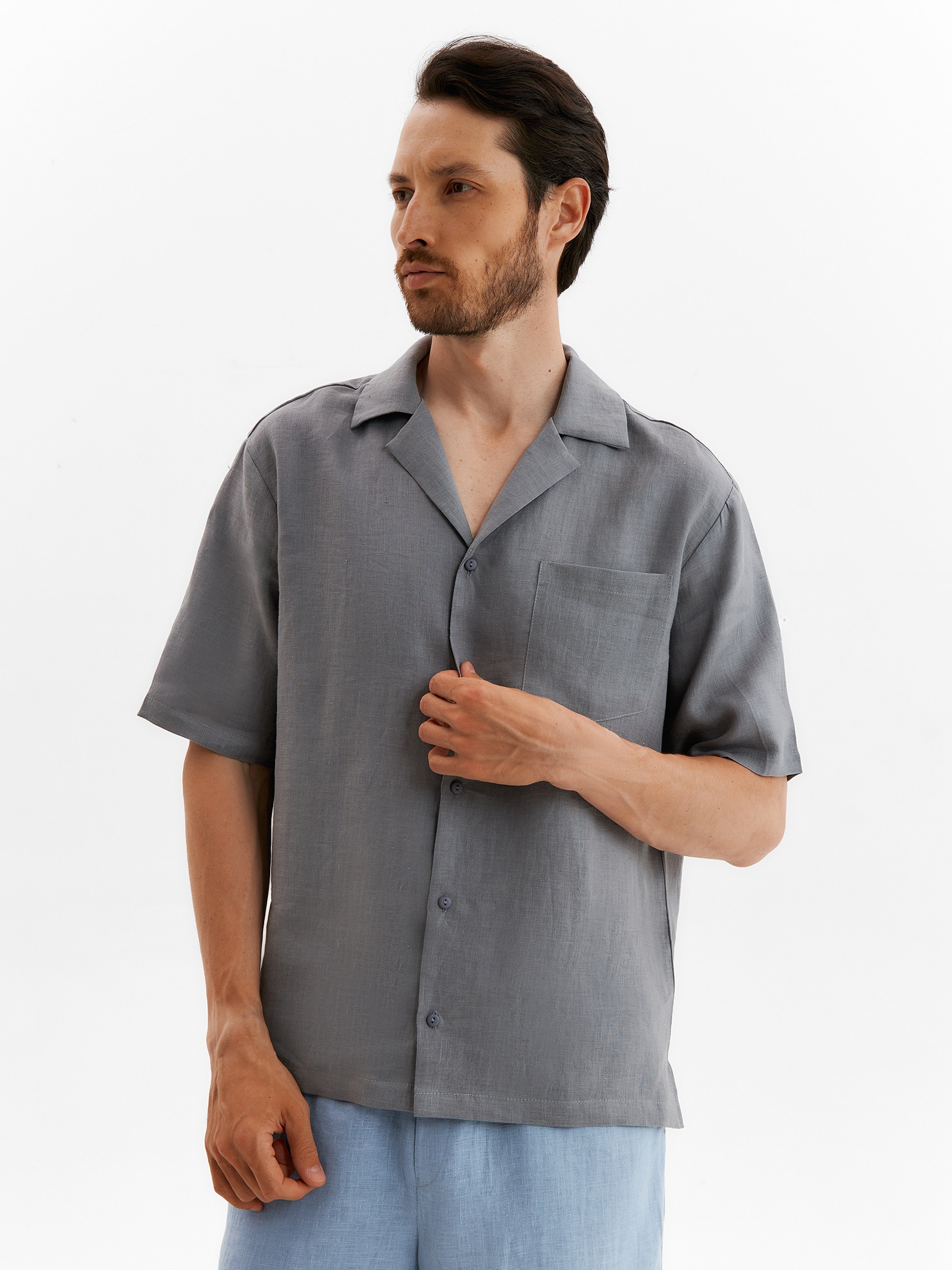 Рубашка мужская с коротким рукавом mist, размер 48, серая. Представьте себе: вы легко и свободно гуляете по летнему городу, чувствуя себя комфортно и стильно в любую погоду. Эта мужская рубашка с коротким рукавом в элегантном сером цвете, создана именно для таких моментов. Это не просто одежда, это – ваш ключ к идеальному летнему образу. Эта практичная и стильная рубашка для мужчин станет незаменимой вещью в вашем гардеробе. Вот что делает ее такой привлекательной: Дышащий комфорт. Изготовлена из легкой, дышащей ткани, которая обеспечивает комфорт даже в жаркую погоду.Свобода движения. Продуманный крой не сковывает движений, позволяя вам чувствовать себя уверенно в любой ситуации.Универсальный стиль. Прекрасно сочетается с джинсами, брюками и шортами, создавая стильный и непринуждённый образ.Практичность и удобство. Легко гладится и сохраняет форму, что экономит ваше время и силы.Выбирая эту серую рубашку, вы выбираете комфорт, стиль и универсальность. Мужская летняя рубашка – это обязательная вещь гардероба каждого мужчины, который ценит удобство и элегантность. Почувствуйте себя уверенно уже сегодня! Цвет:Серый|Для кого:Для мужчины|Ткань:Льняная ткань|Размер:48|Рост, см:175|Сезон:Лето|Длина рукава:Короткий|Состав ткани:Лён|Тип силуэта:Прямой|Страна:Россия  развернуть описание ▼