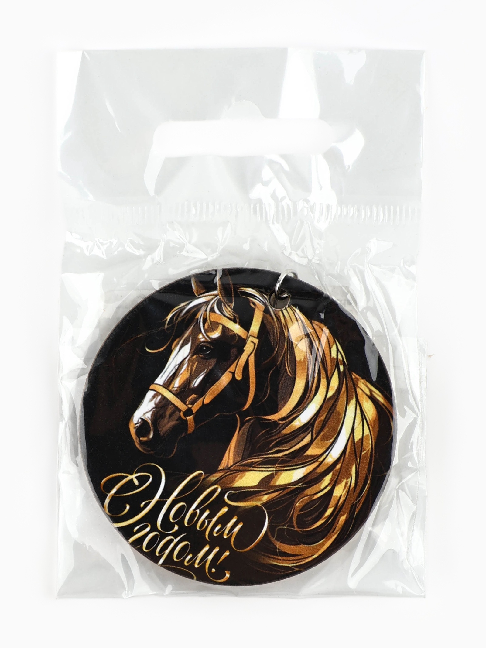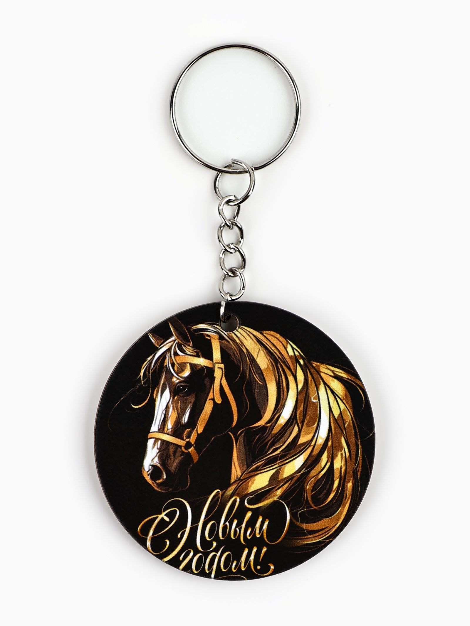 Брелок новогодний «с новым годом». Набор:Нет|Символ года:Символ года 2026 (Лошадь)|Тематика праздника:Новый год|Материал:Металл|Материал:ХДФ|Страна:Россия
