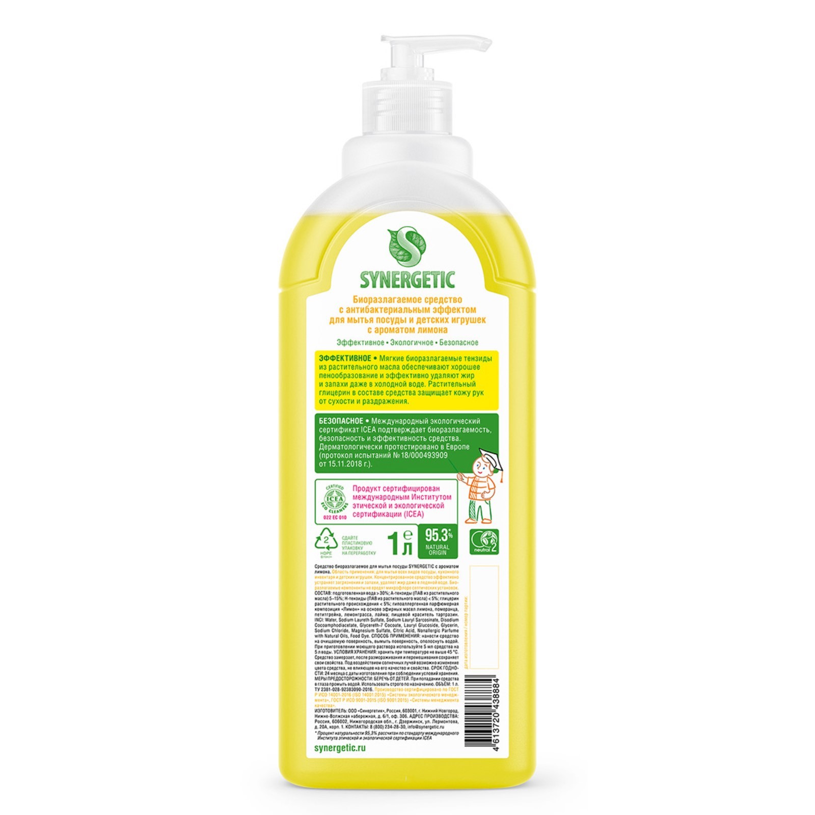 Средство для мытья посуды Synergetic "лимон", с антибактериальным эффектом, 1 л