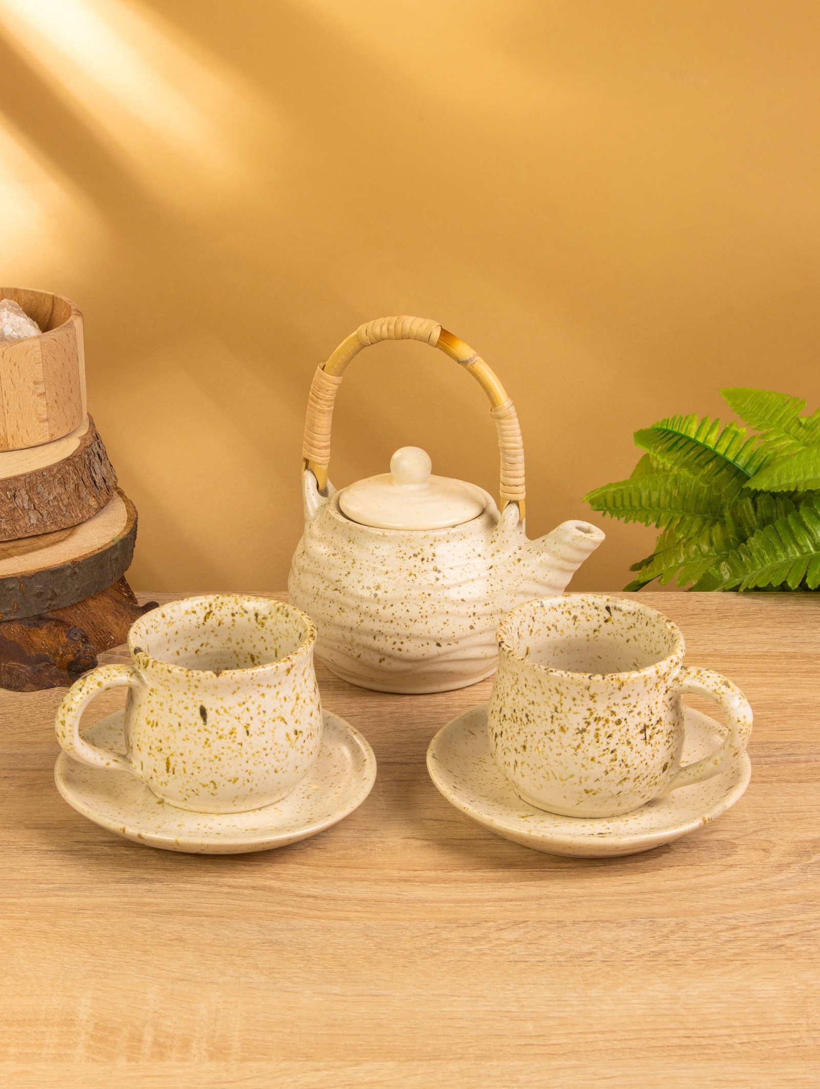 Набор чайный «камень», чайник, 2 кружки, 27x24x16 см, керамика, бежевый в крошку