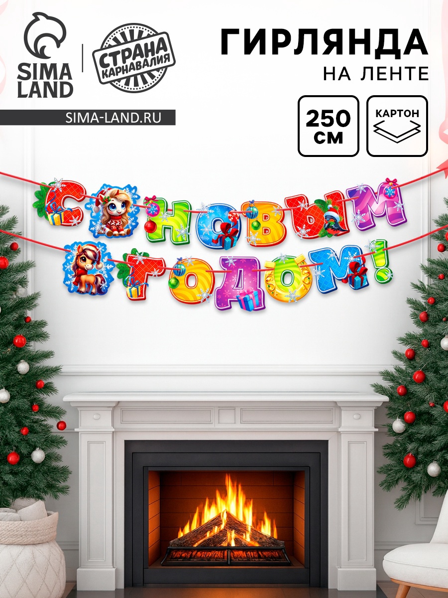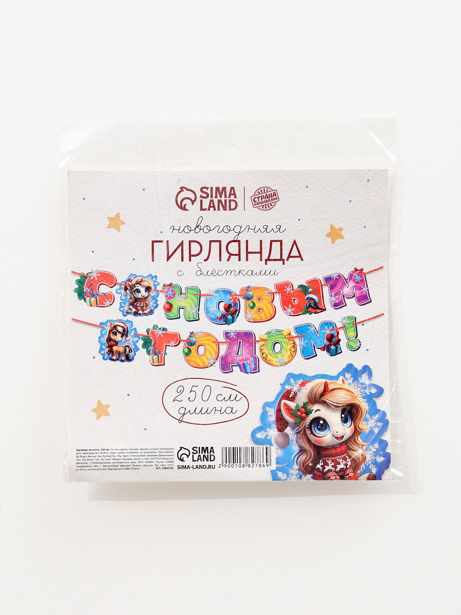 Гирлянда на ленте с блестками «с новым годом!», лошадки, 250 см