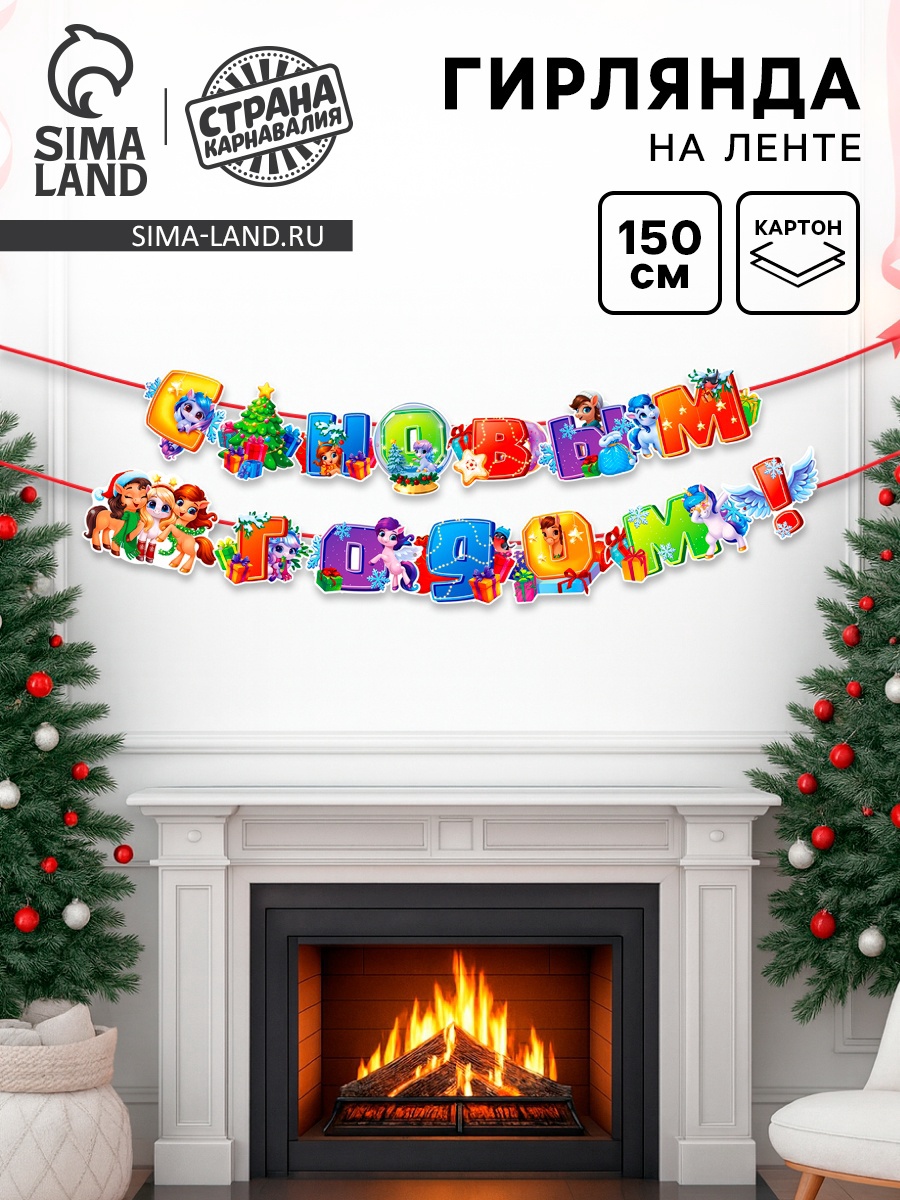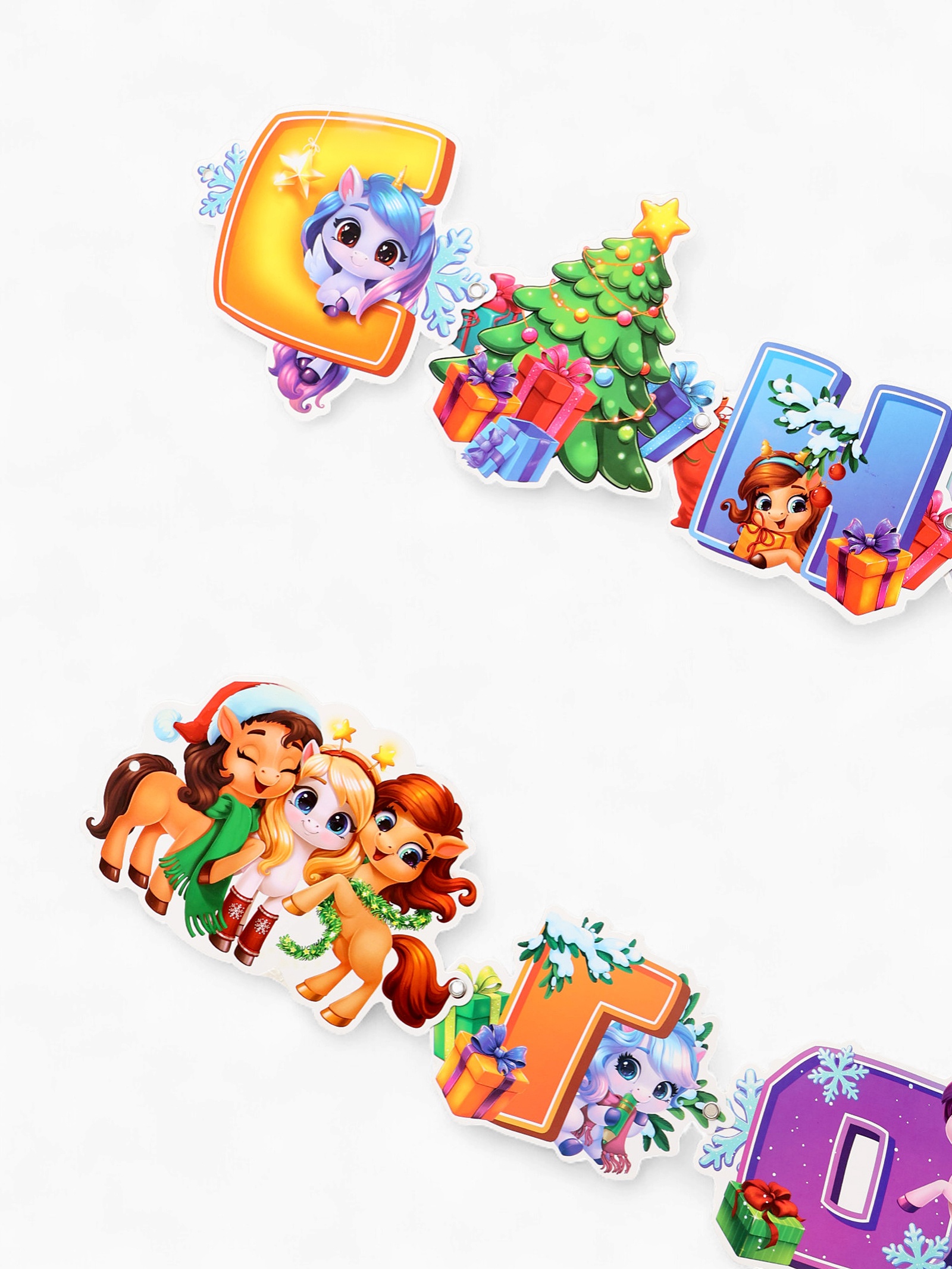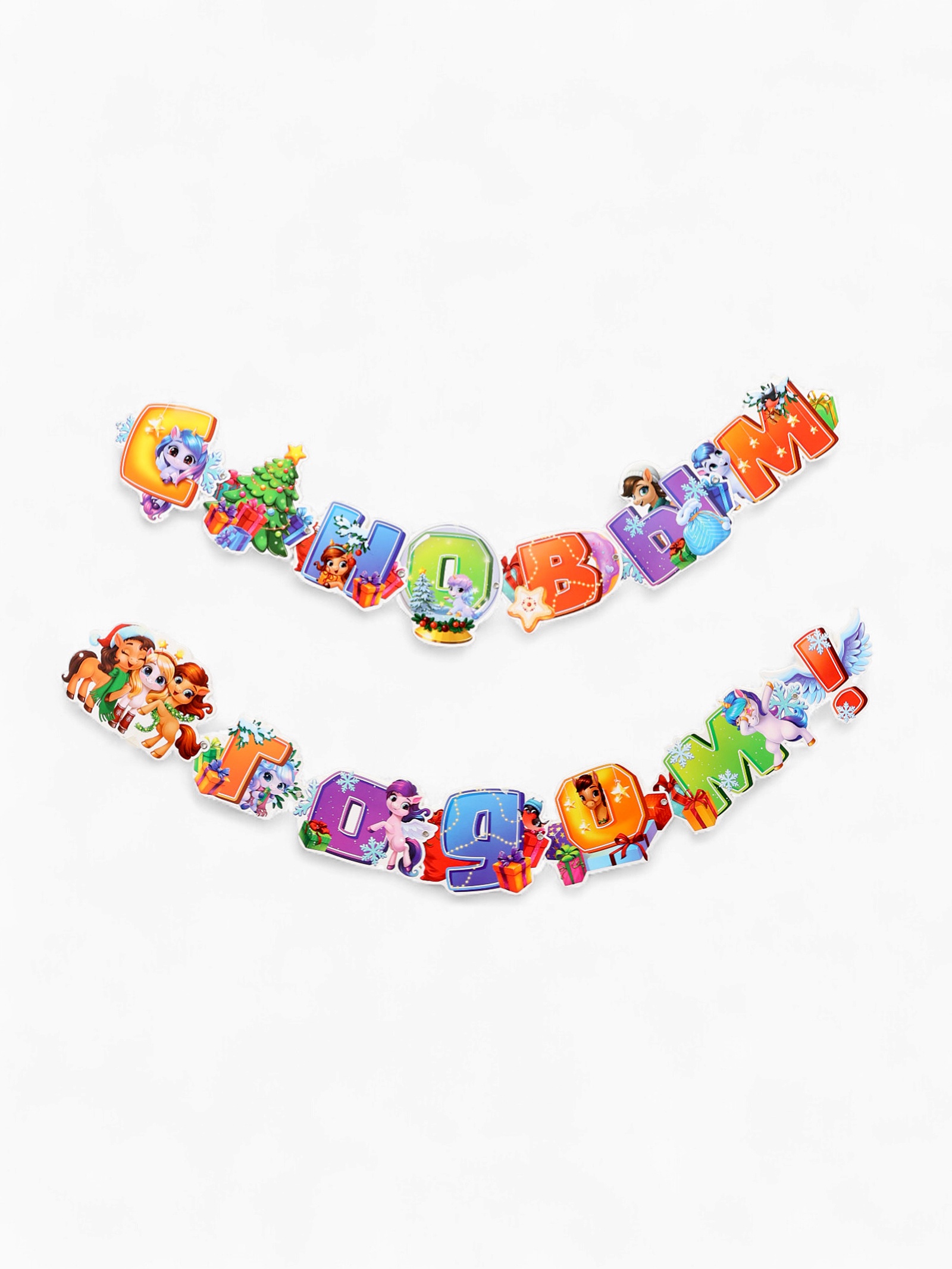 Гирлянда на люверсах «с новым годом!» лошадки, 150 см