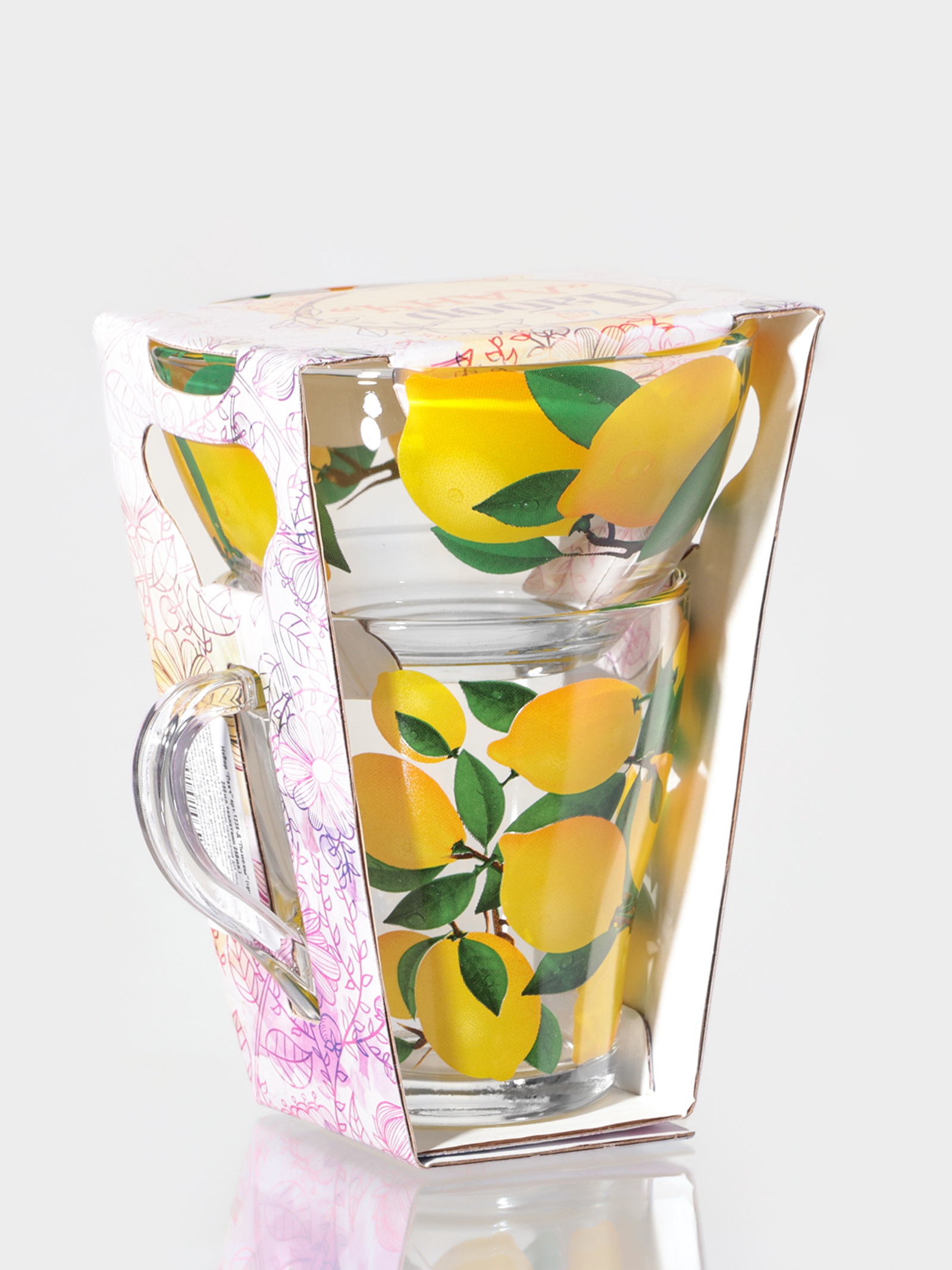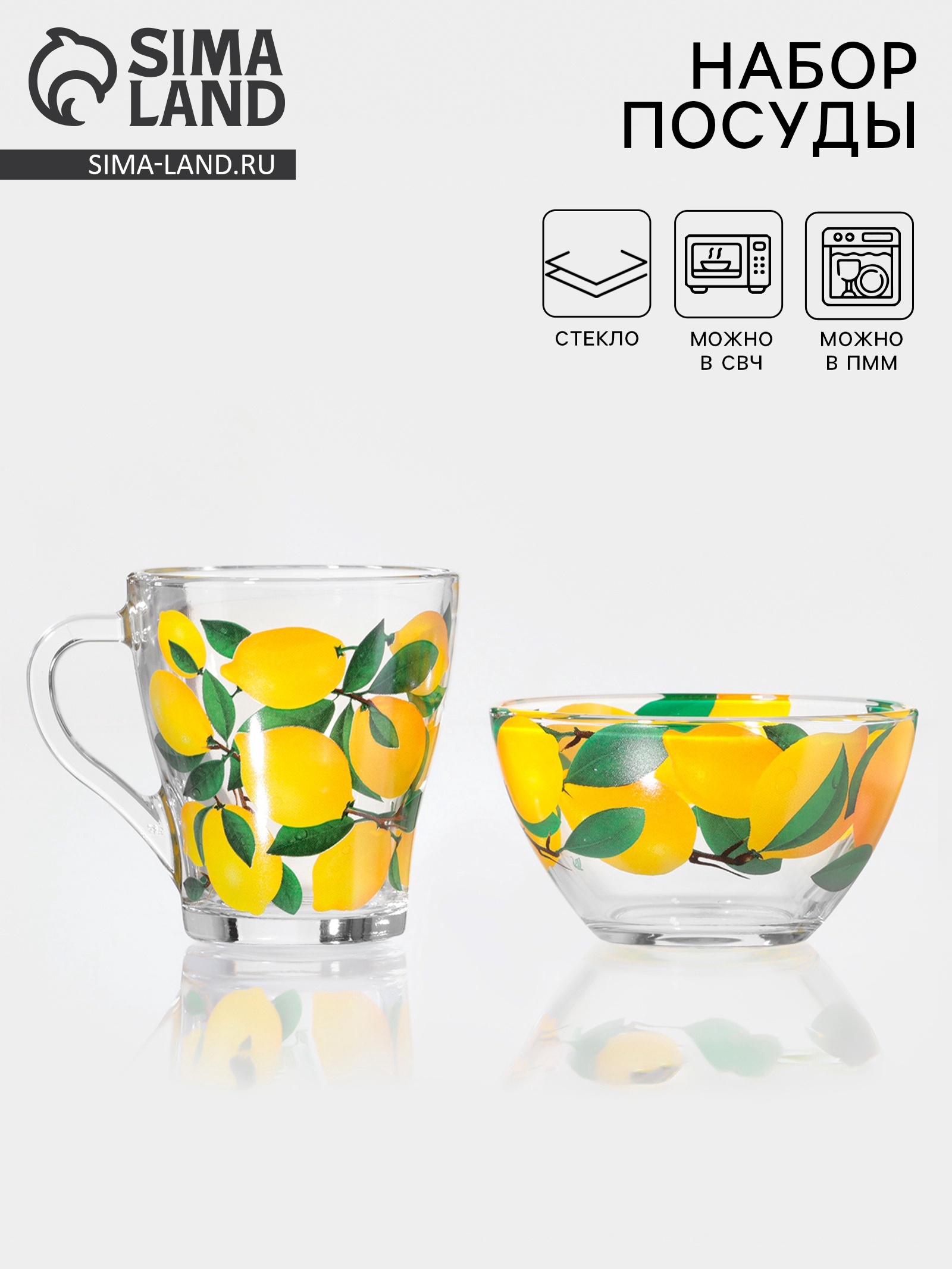 Набор посуды декостек «лимоны», 2 предмета: кружка 250 мл, салатник 250 мл., стекло, прозрачный, жёлтый
