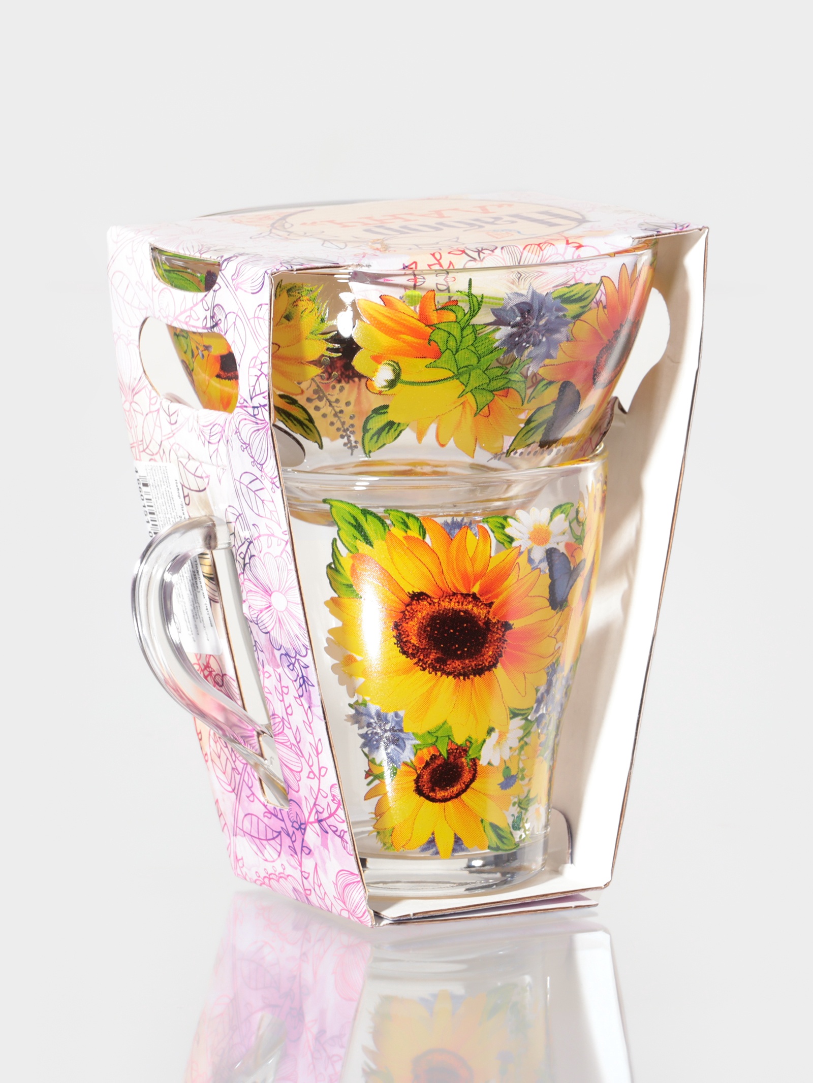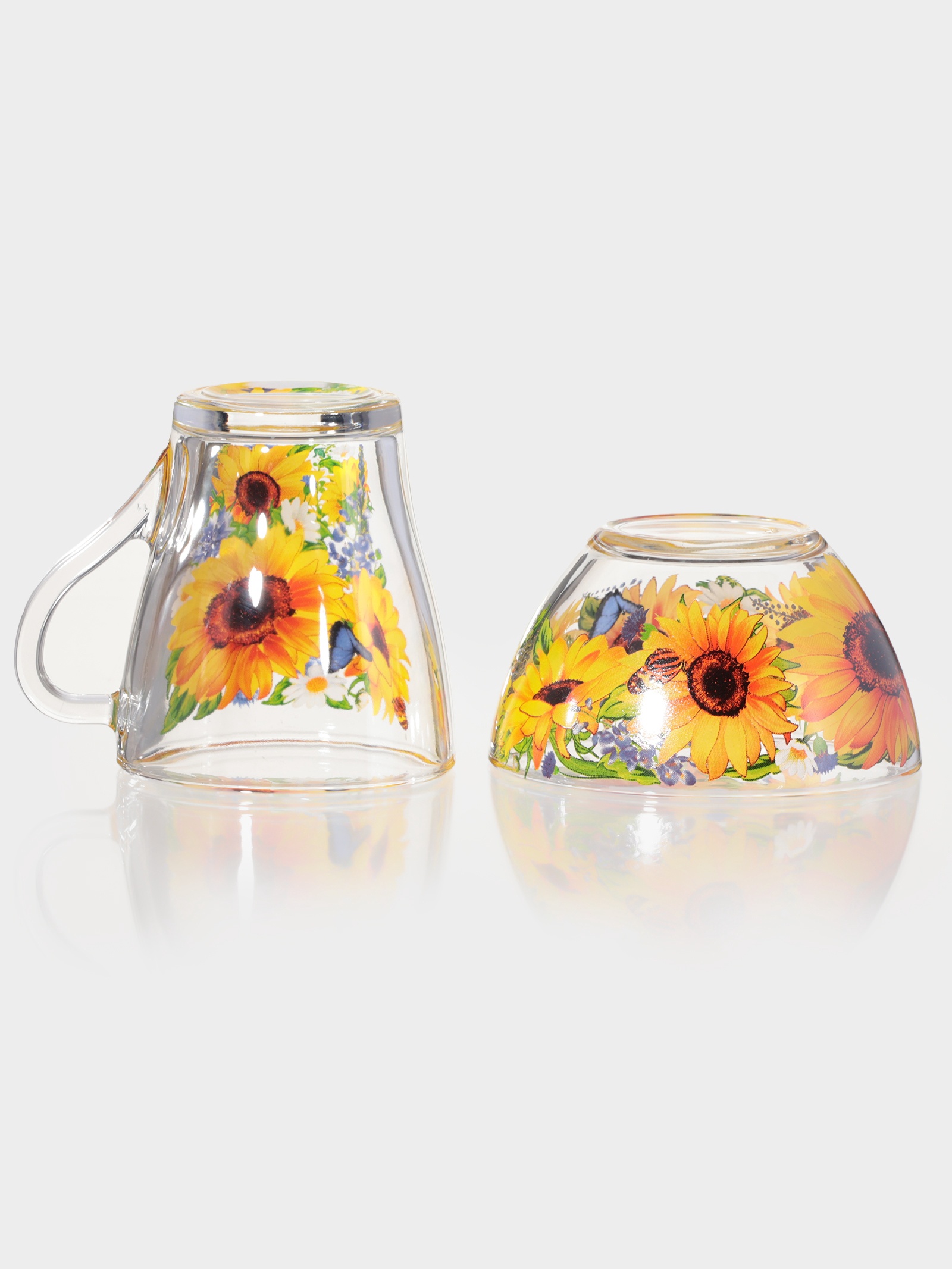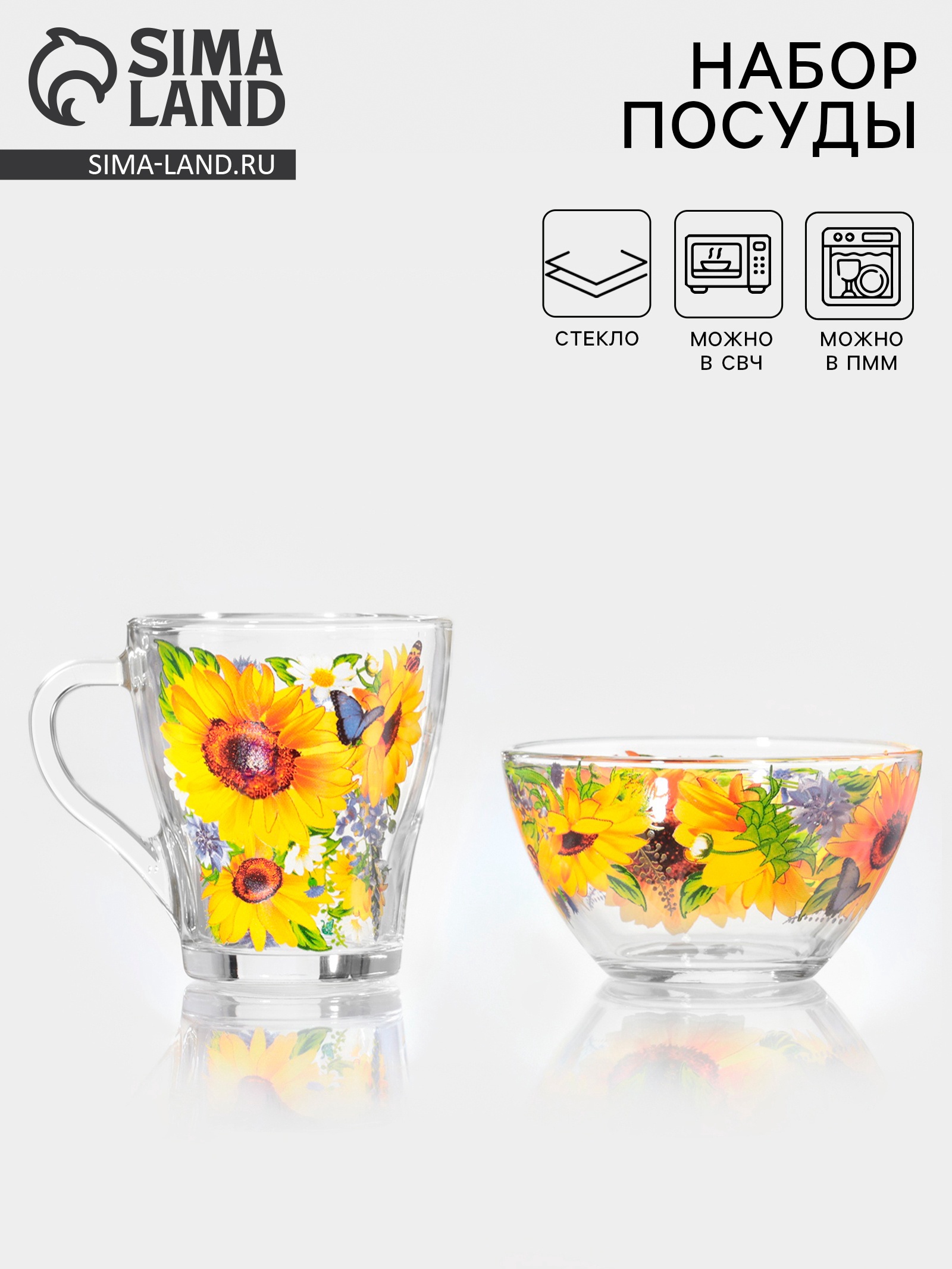 Набор посуды декостек «подсолнухи», 2 предмета: кружка 250 мл, салатник 250 мл., стекло, прозрачный, жёлтый
