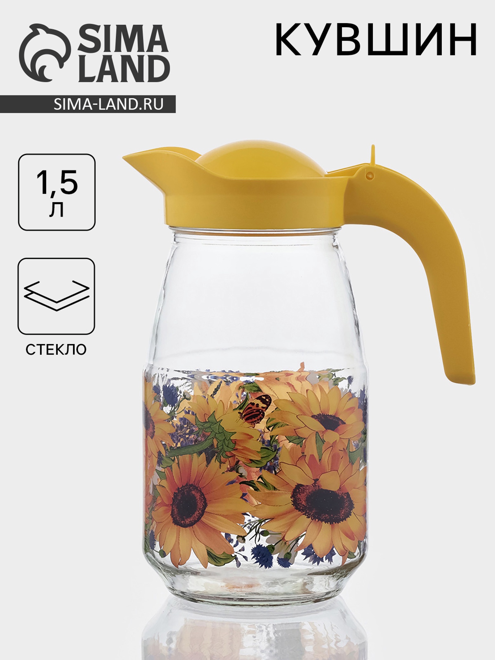Кувшин «подсолнух», 1.5 л, с крышкой, стекло, жёлтый