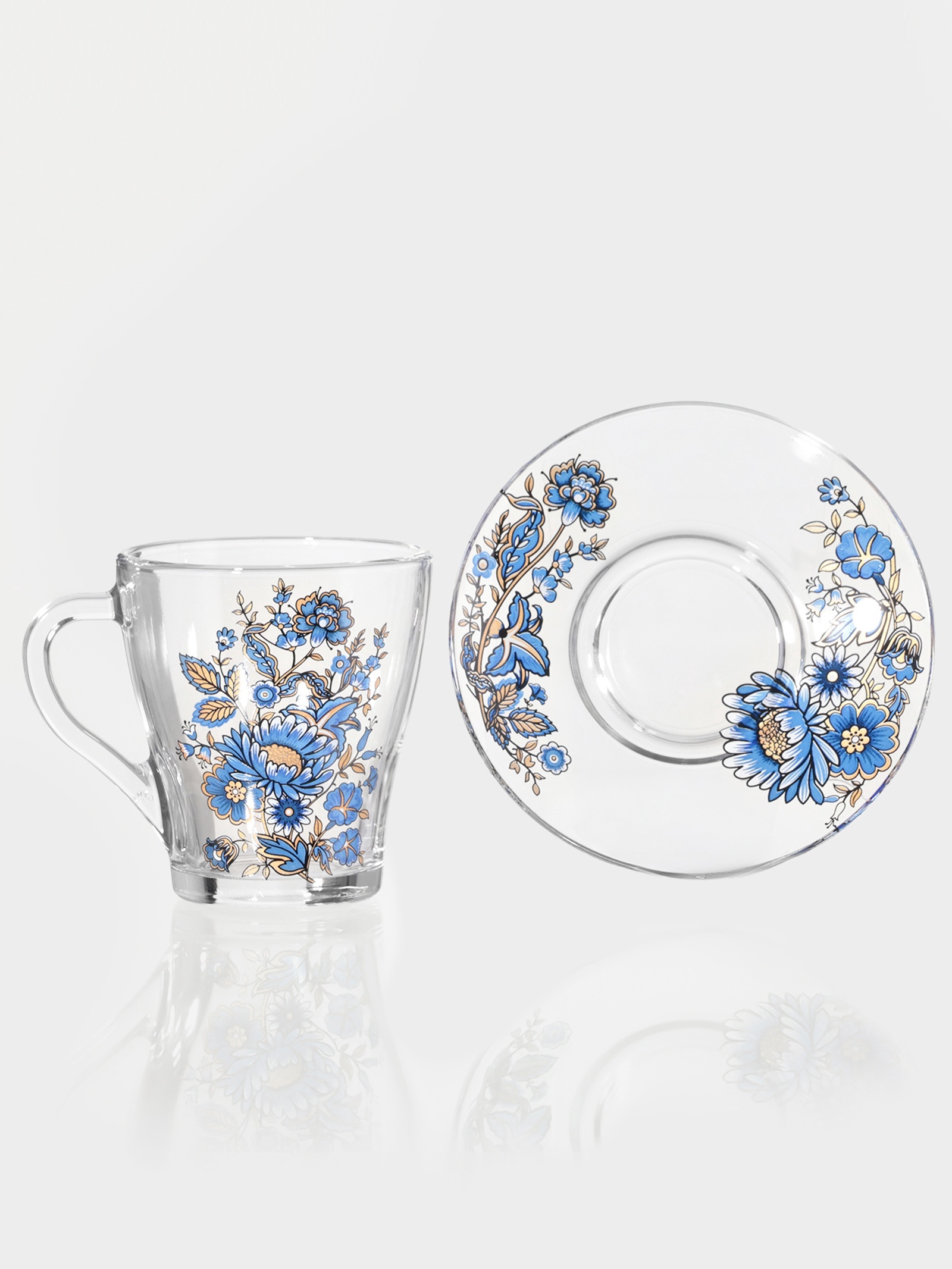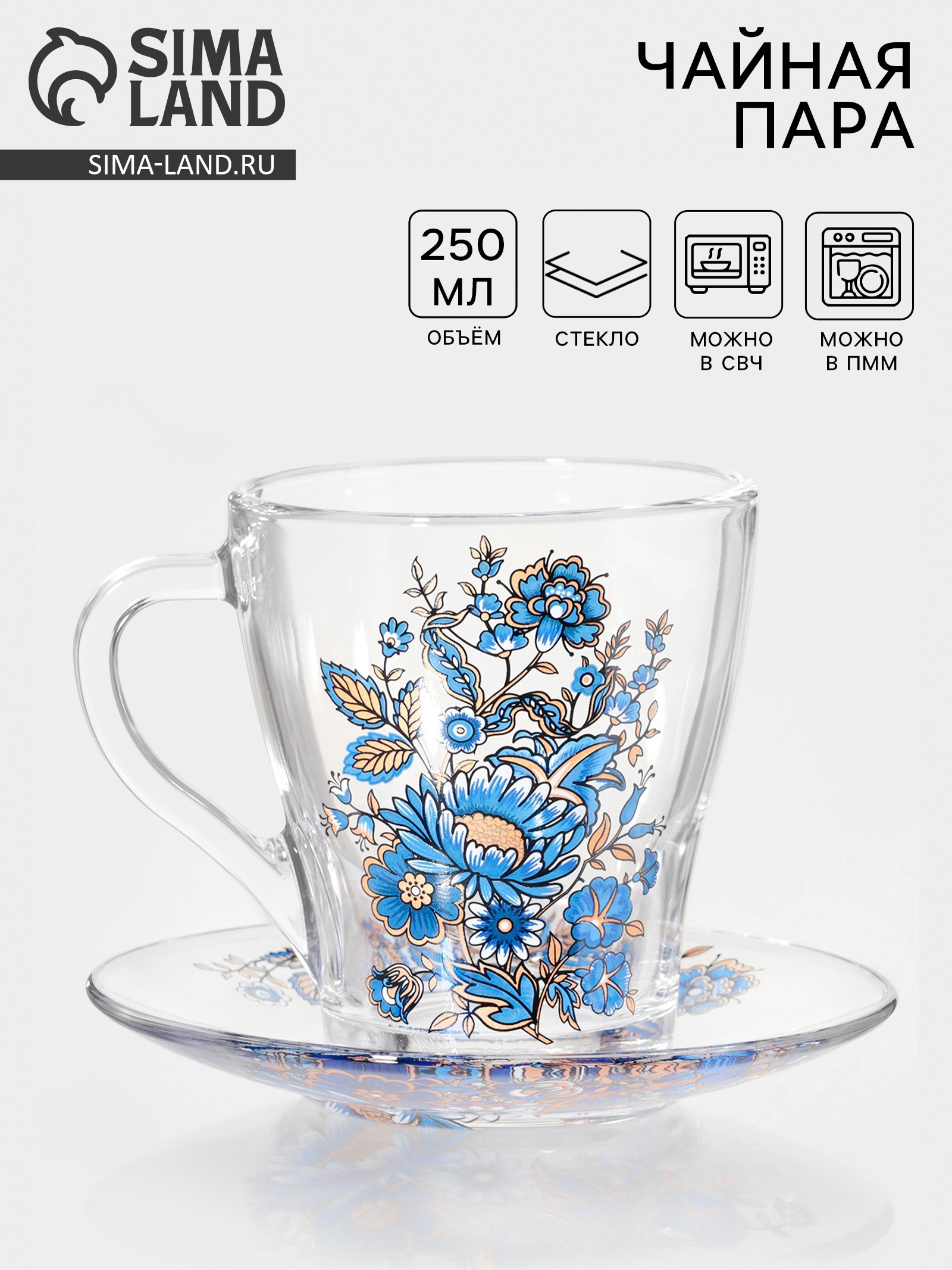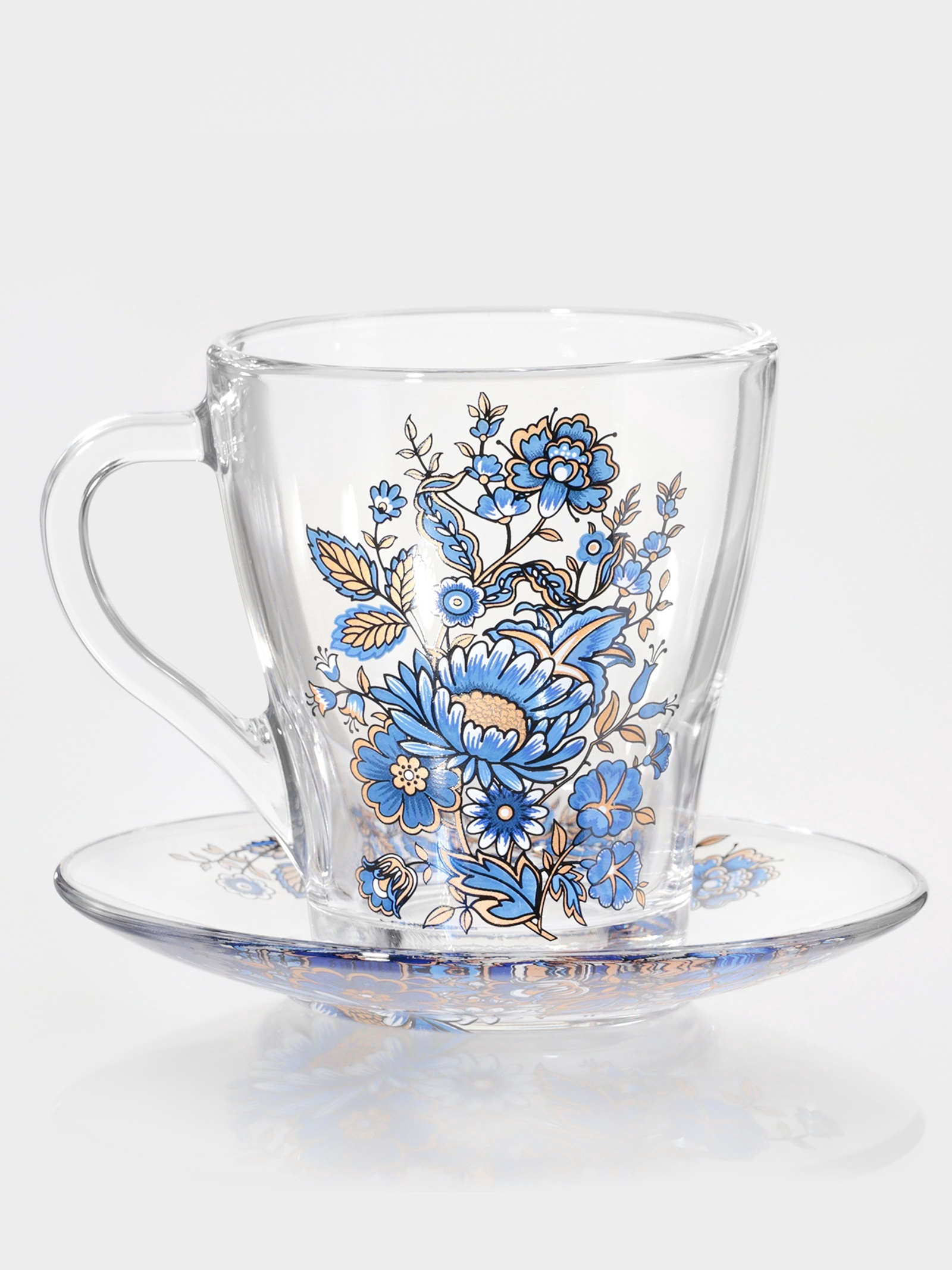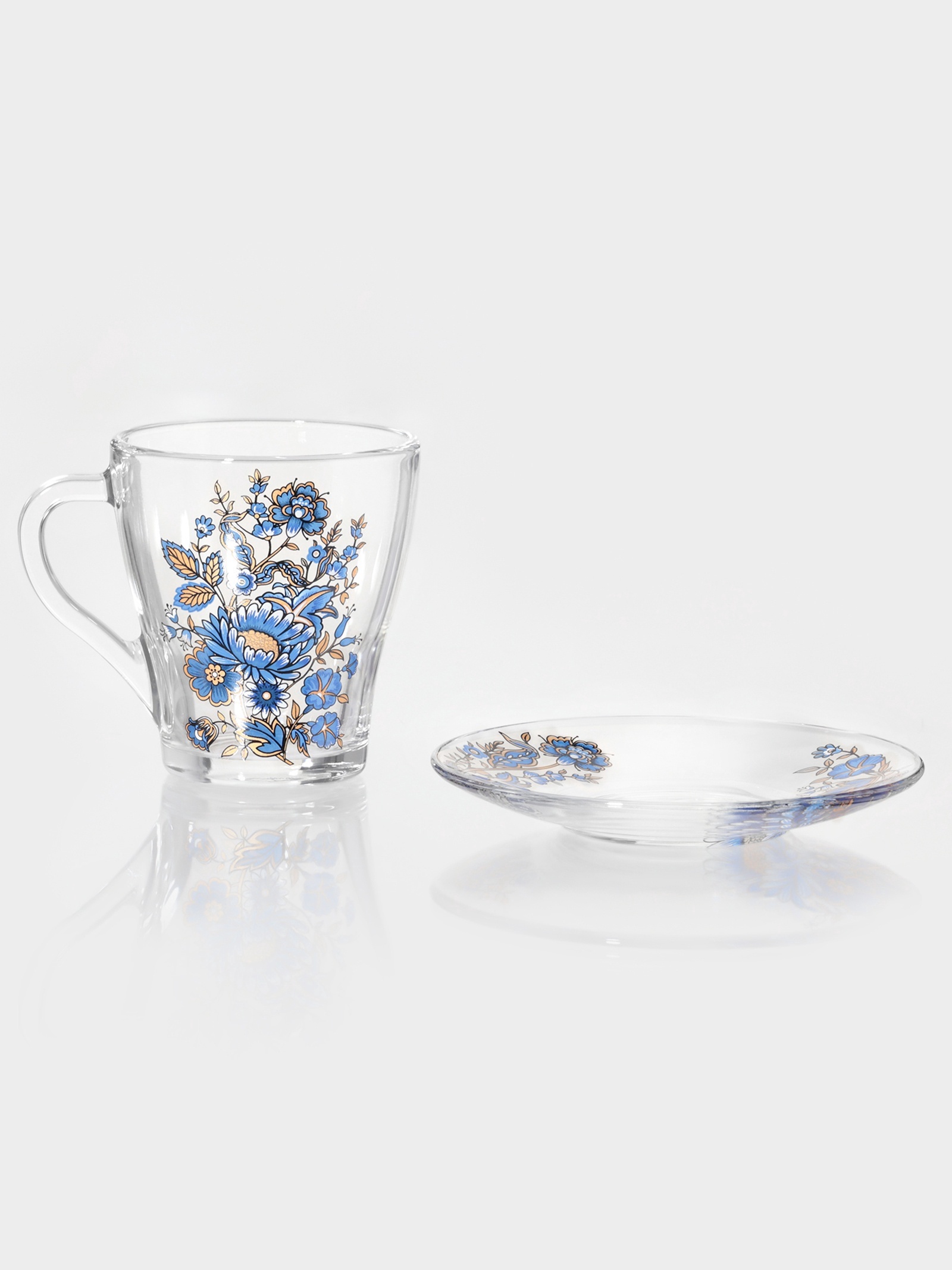 Чайная пара декостек «милори», 270 мл, стекло, прозрачная, голубая