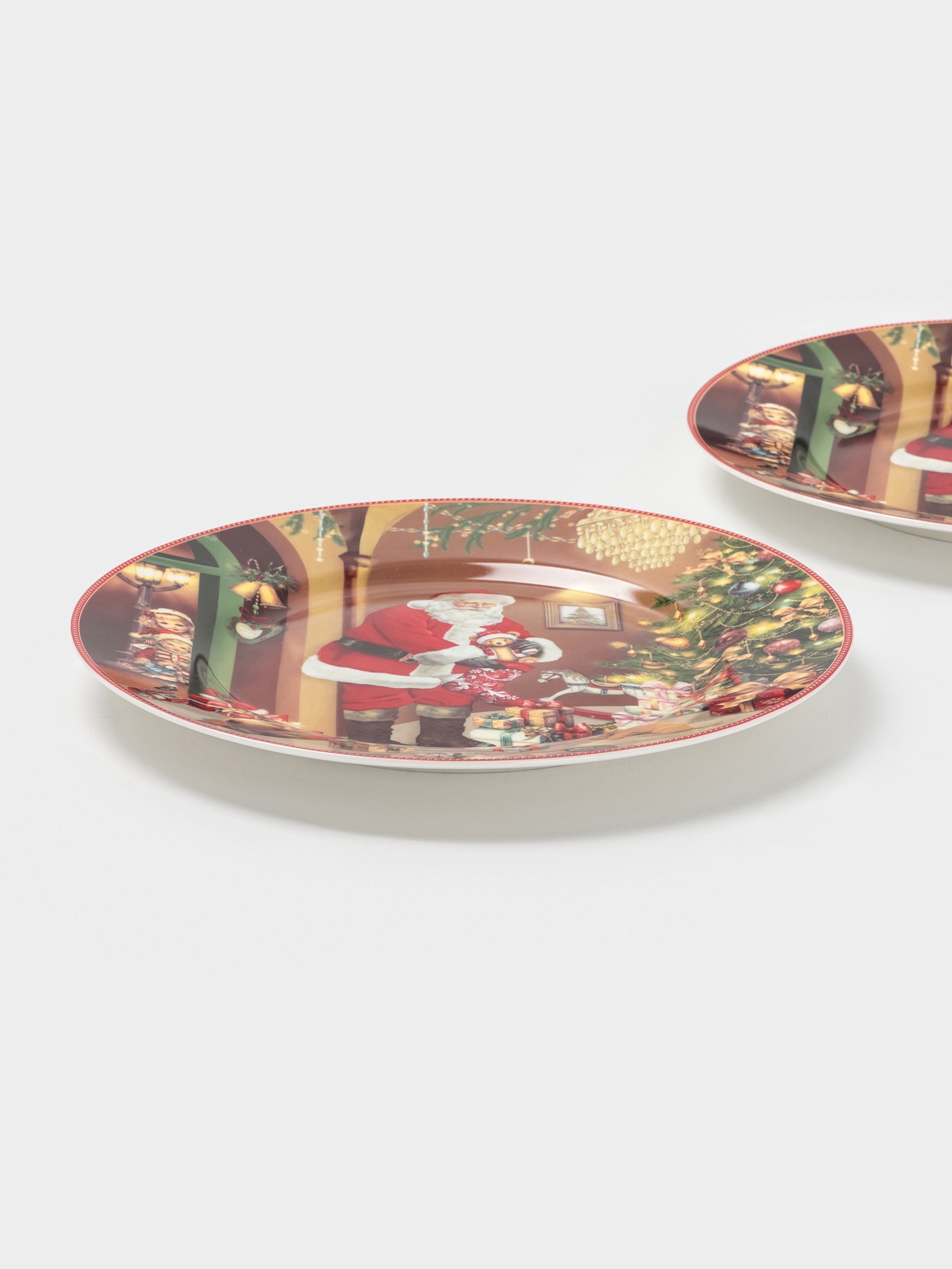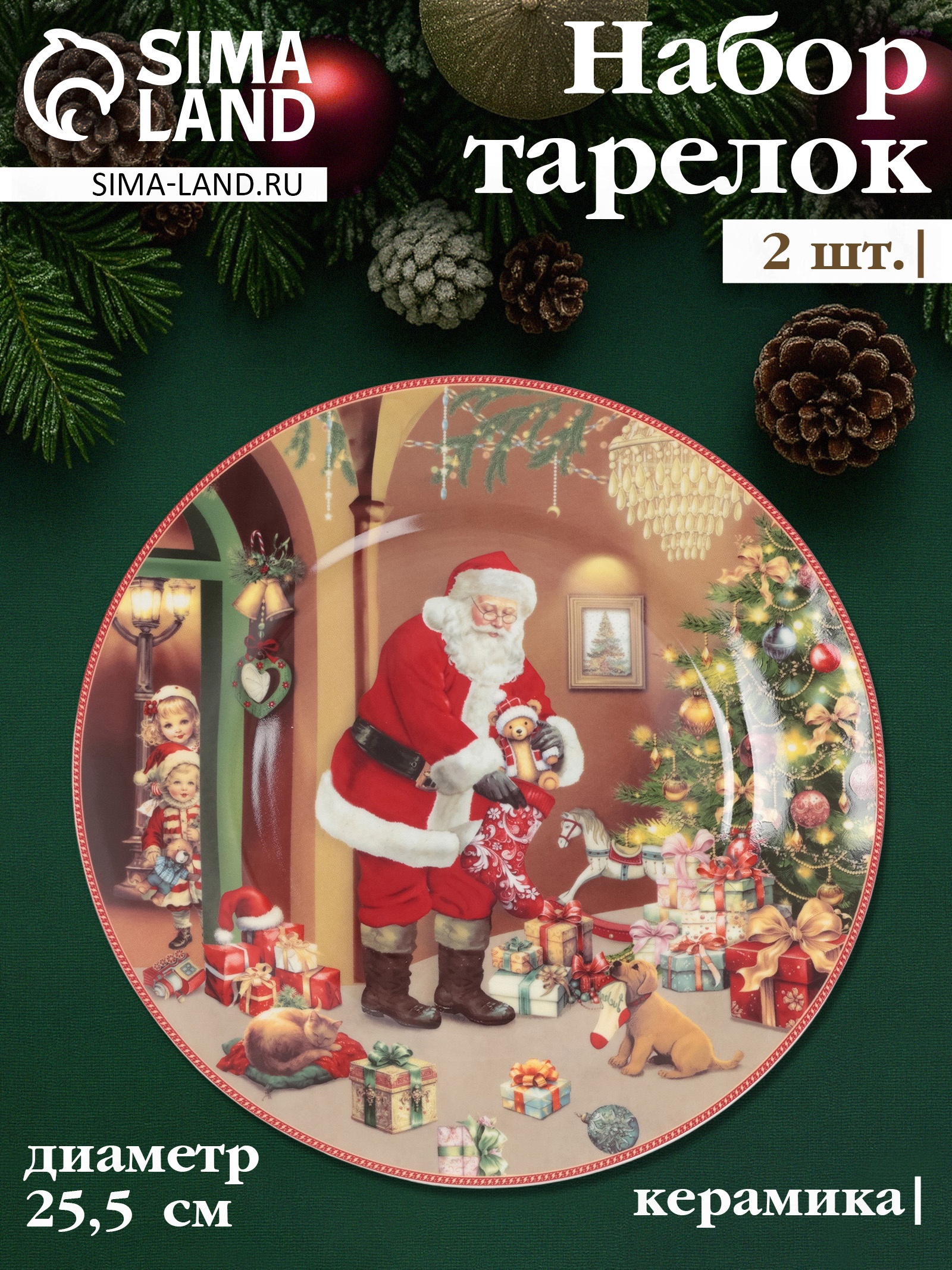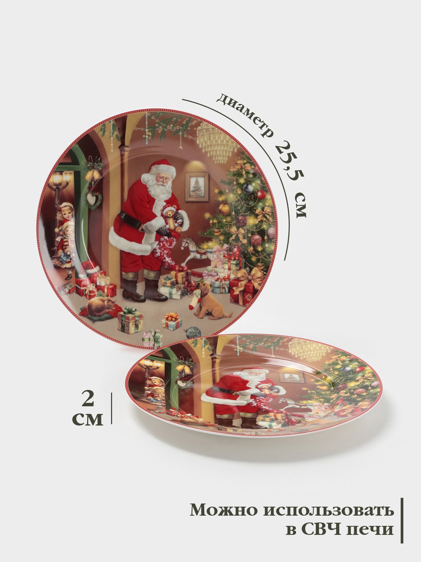 Набор тарелок новогодних «ночь чудес», 2 шт., d=25.5 см, керамика, подарочная упаковка, разноцветный. Создайте праздничное настроение за столом с набором новогодних тарелок «Ночь чудес» — парой ярких керамических блюд диаметром 25, 5 см для двоих. Разноцветный дизайн с праздничной тематикой и гладкой текстурой добавит столу живости, а подарочная упаковка делает набор готовым решением для подарка. Эти плоские тарелки подходят для подачи горячих блюд и созданы из прочной керамики с декольной печатью. Они совместимы с микроволновой печью, что делает их удобными в повседневном использовании. Несмотря на яркий внешний вид, тарелки остаются практичными и простыми в уходе. Праздничный стол без усилий: две тарелки с новогодним дизайном мгновенно преобразят обеденную зону и создадут атмосферу праздника. Яркий акцент на обеденном столе: разноцветная палитра и тематический рисунок добавляют весеннее настроение даже в самый пасмурный день. Комфорт в использовании: круглая форма и стандартный диаметр обеспечивают удобство при сервировке и хранении. Универсальный подарок: керамические тарелки в стильной упаковке подойдут как подарок для дома или квартиры, где ценят уют и внимание к деталям. С набором тарелок «Ночь чудес» каждый обед или ужин превращается в небольшой праздник, наполненный радостью и теплом. Эти тарелки — не просто посуда, а элемент декора, который говорит: «Здесь любят собираться вместе». Цвет: Разноцветный Диаметр, см: 25.5 В наборе, шт.: 2 Количество персон: 2 Тематика: Новогодняя Материал: Керамика С присоской: Нет Для детей до 3 лет: Нет Вид тарелки: Плоская Можно мыть в посудомоечной машине: Нет Можно использовать в СВЧ-печи: Да Текстура: Гладкая Особенности: Деколь Матовая поверхность: Нет Для горячего: Да Форма: Круг  развернуть описание ▼