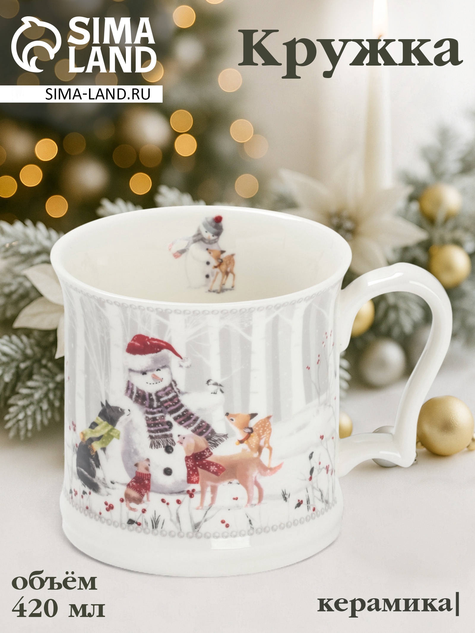 Кружка новогодняя «снежные забавы», 420 мл, керамика, подарочная упаковка, белая