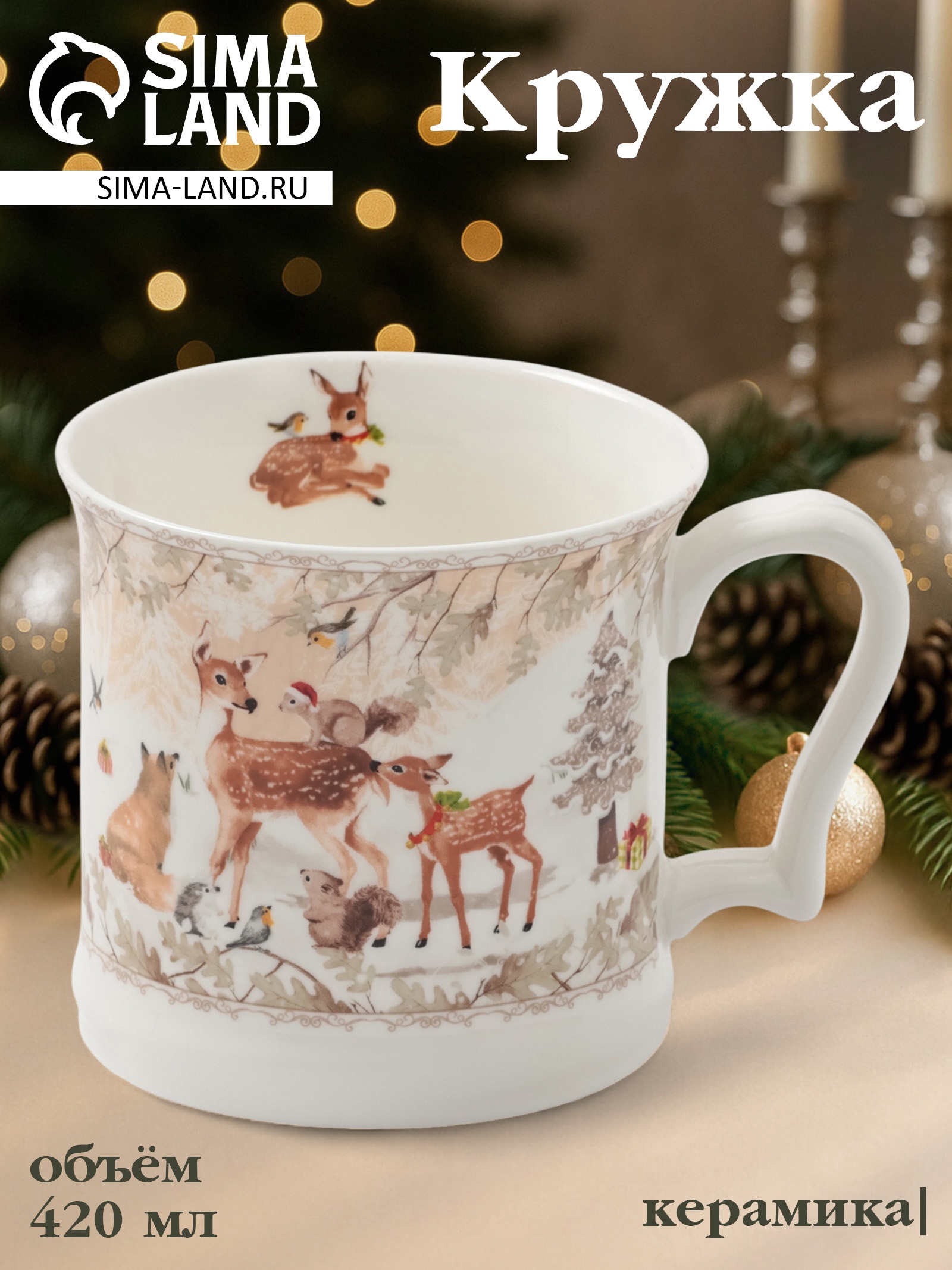 Кружка новогодняя «лесное чудо», 420 мл, керамика, подарочная упаковка, белая