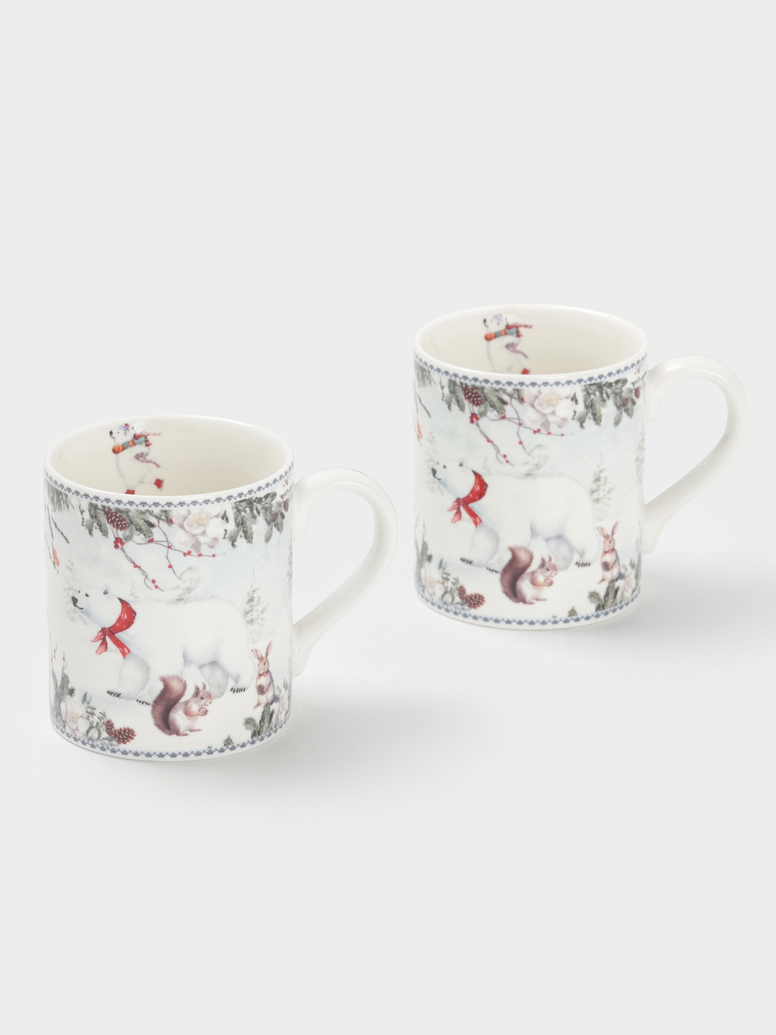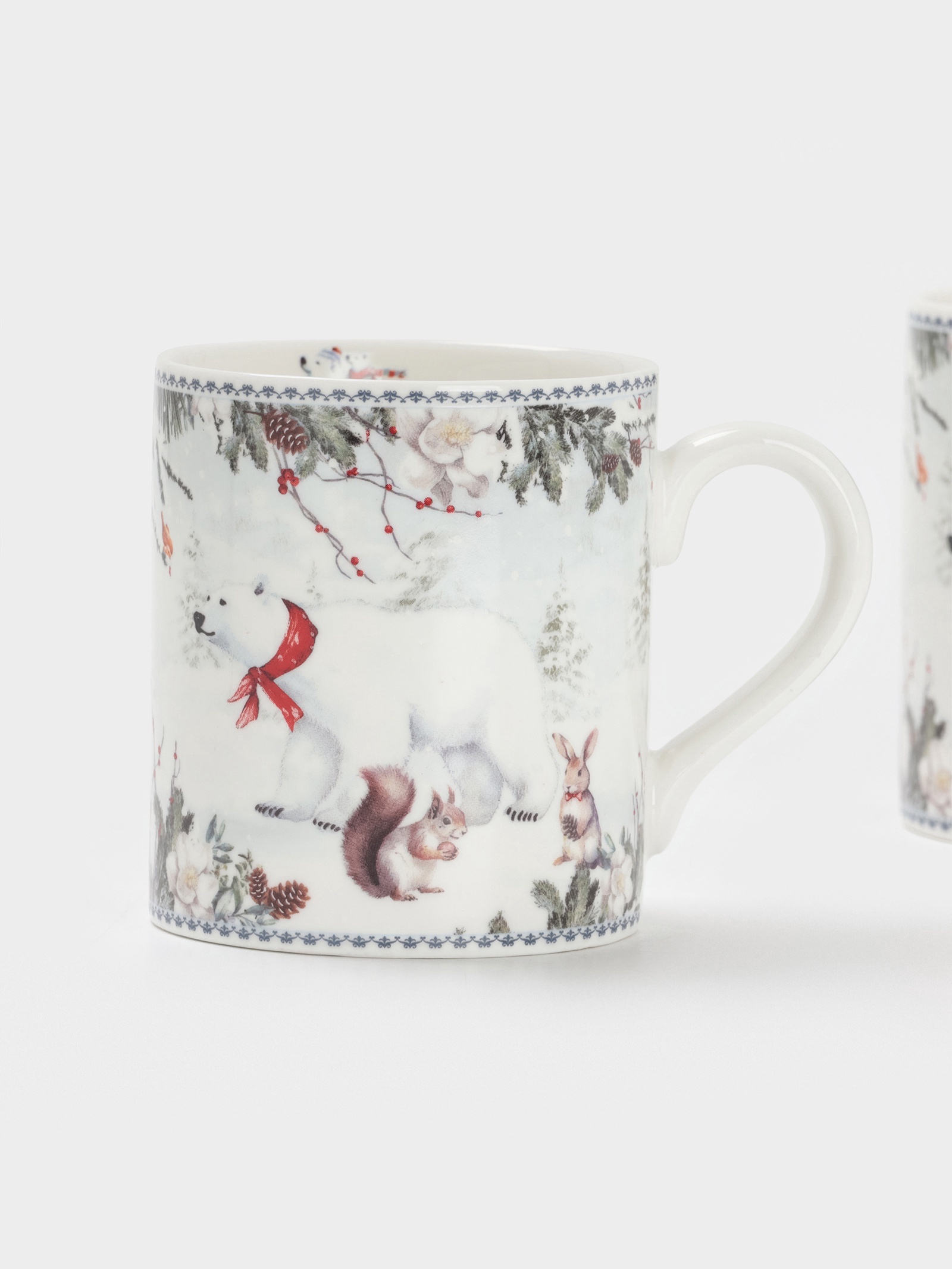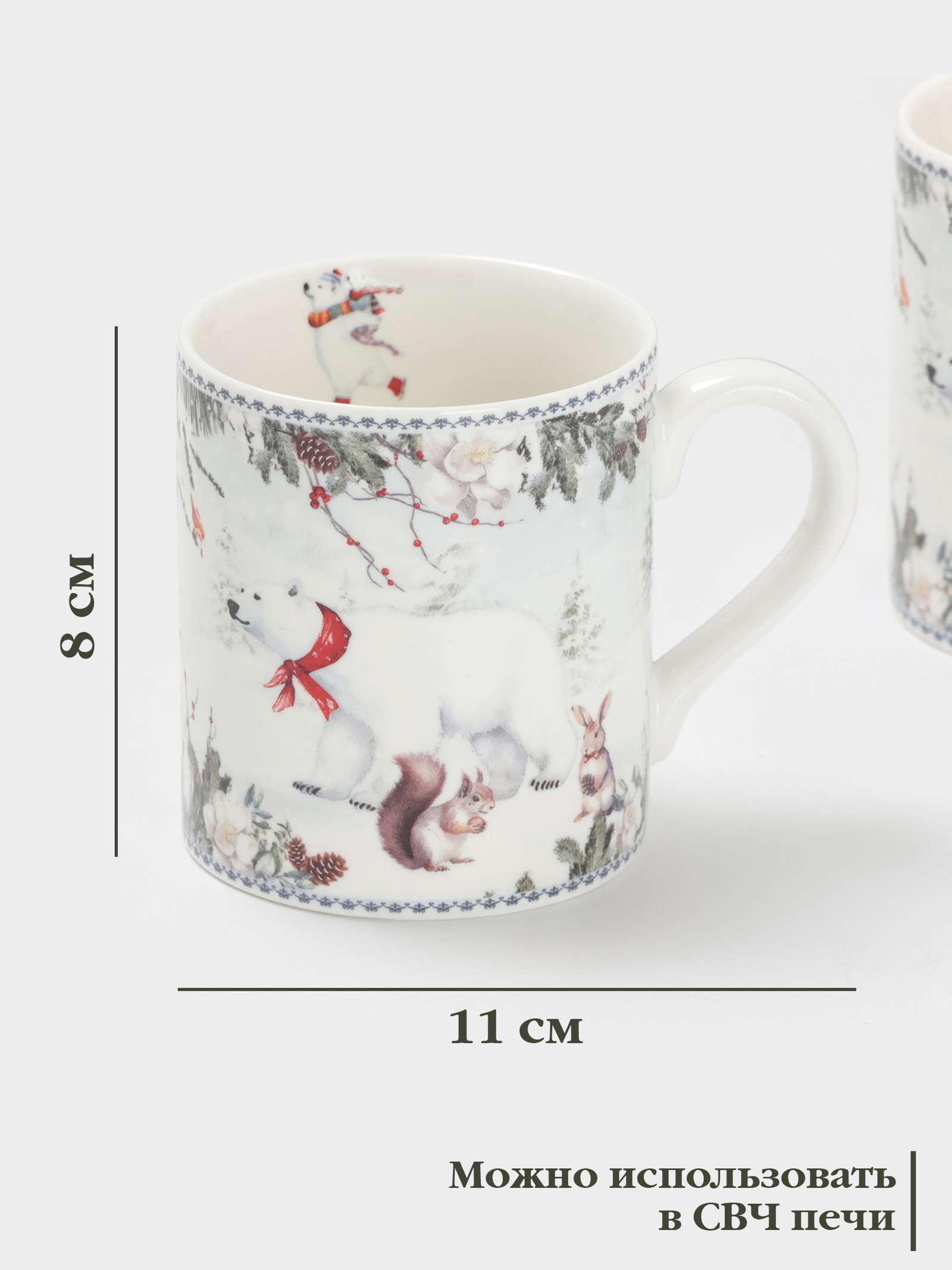 Набор кружек новогодних «белый мишка», 2 шт., 220 мл, керамика, подарочная упаковка, белый