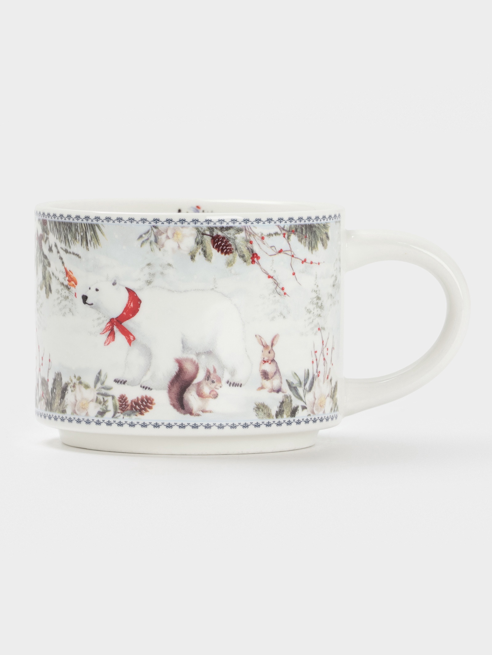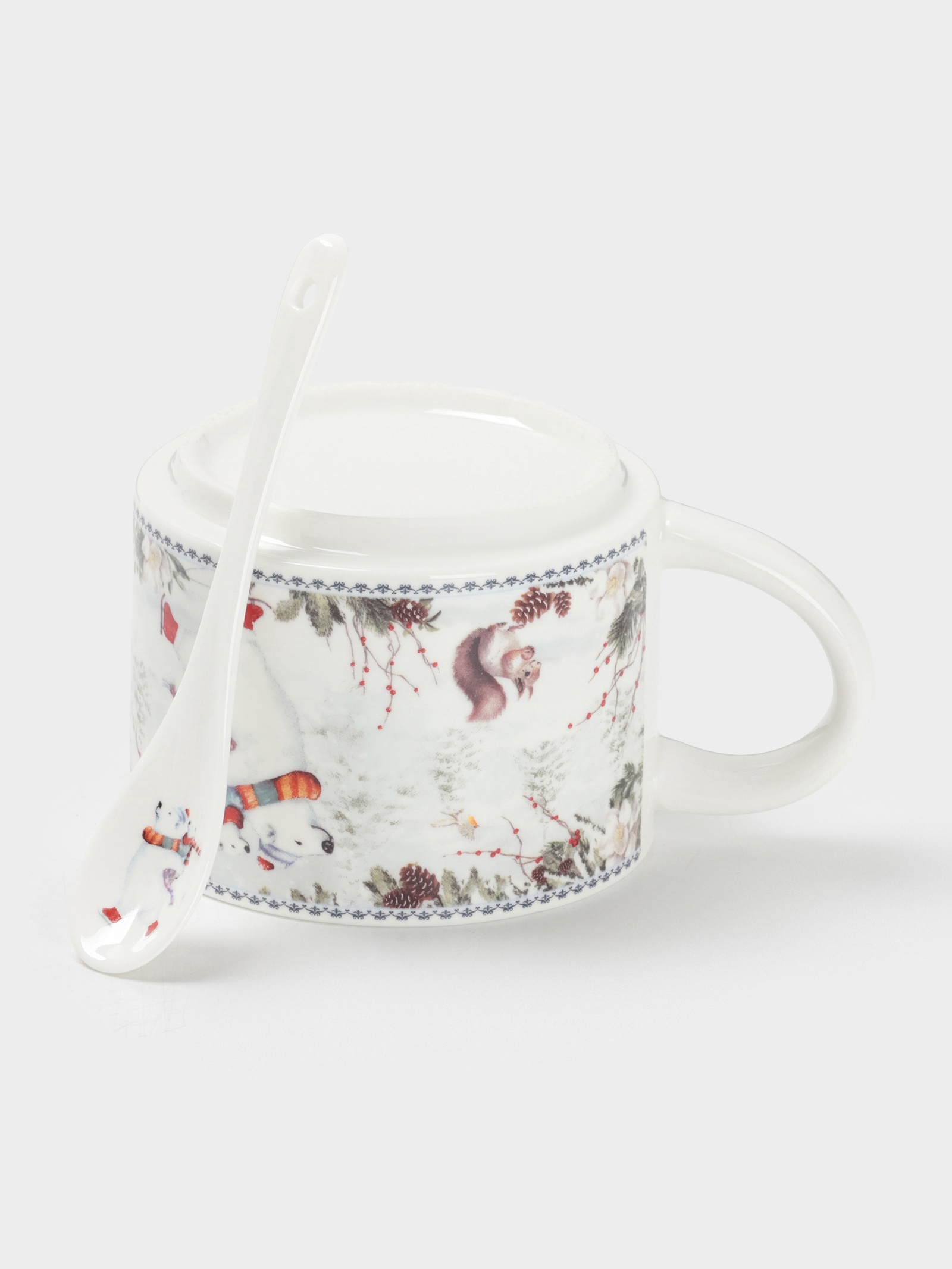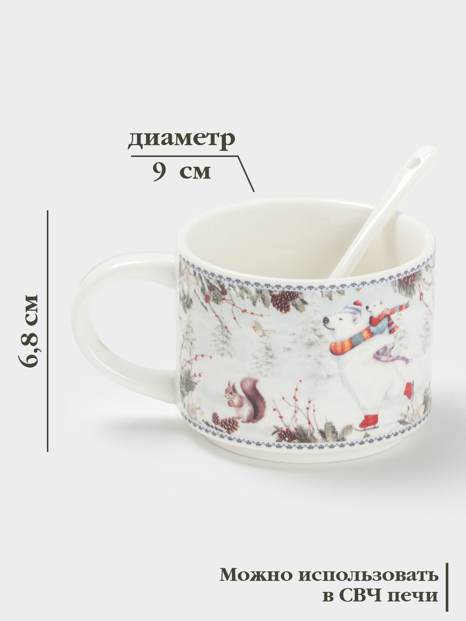 Кружка новогодняя «белый мишка», с ложкой, 280 мл, керамика, подарочная упаковка, белая