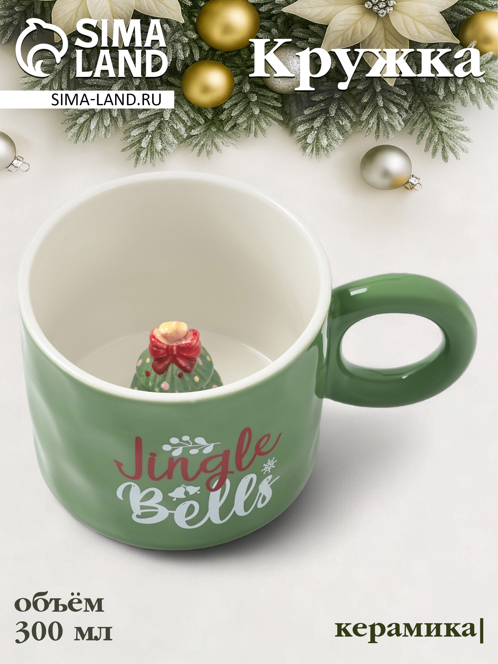Кружка новогодняя «ёлочка», 300 мл, керамика, зелёная