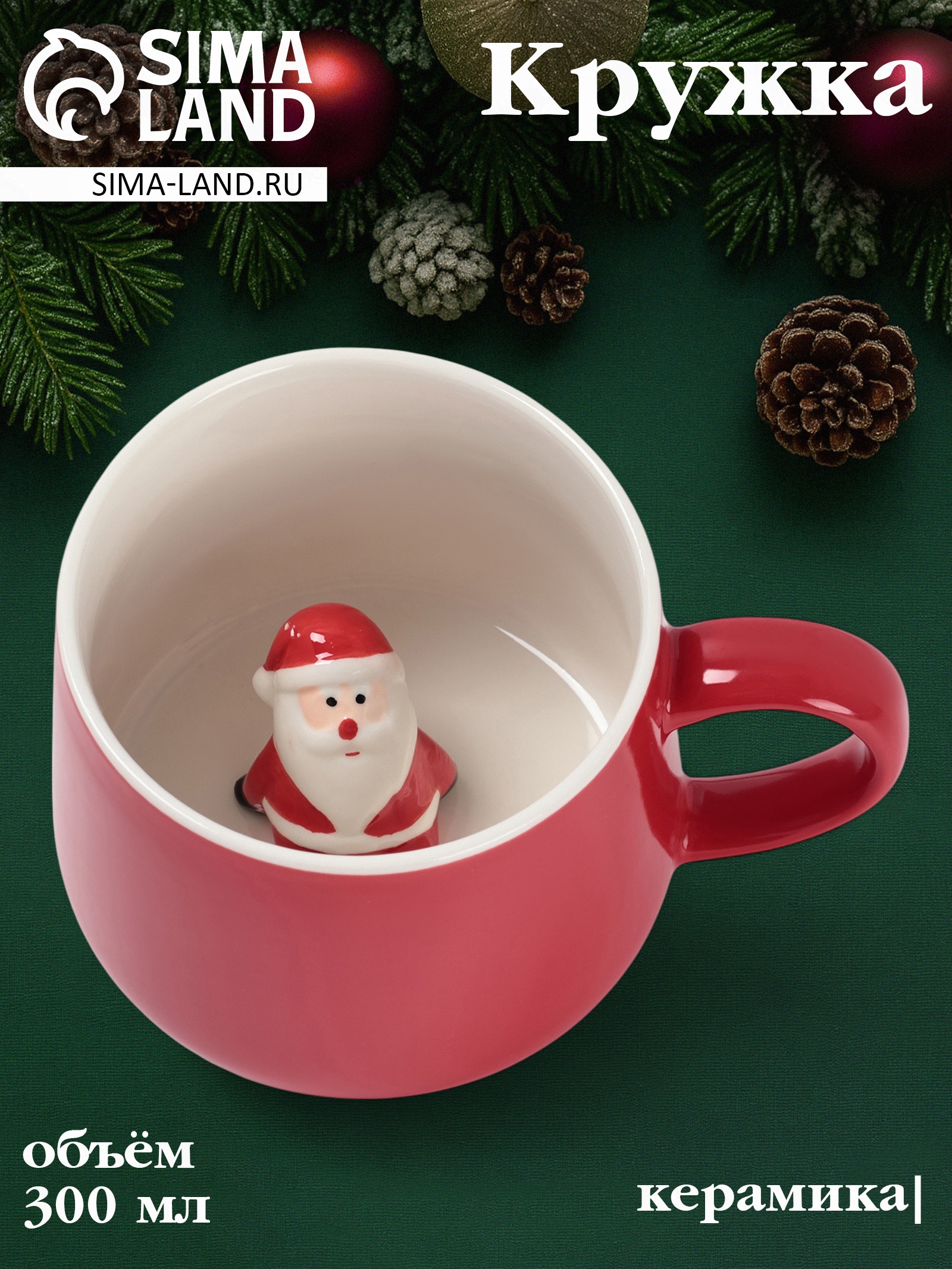 Кружка новогодняя «дед мороз», 300 мл, керамика, красная