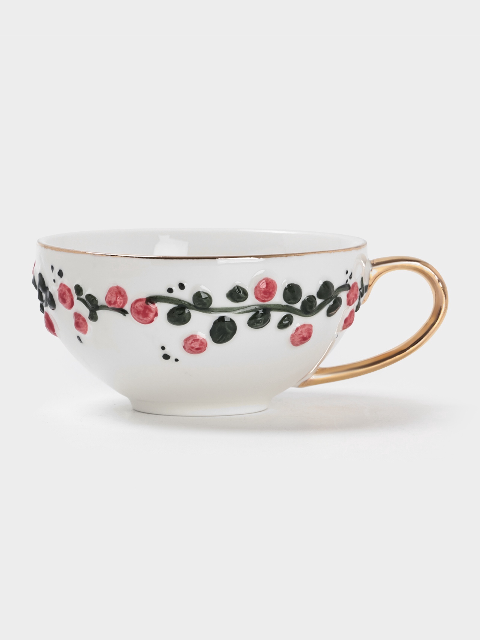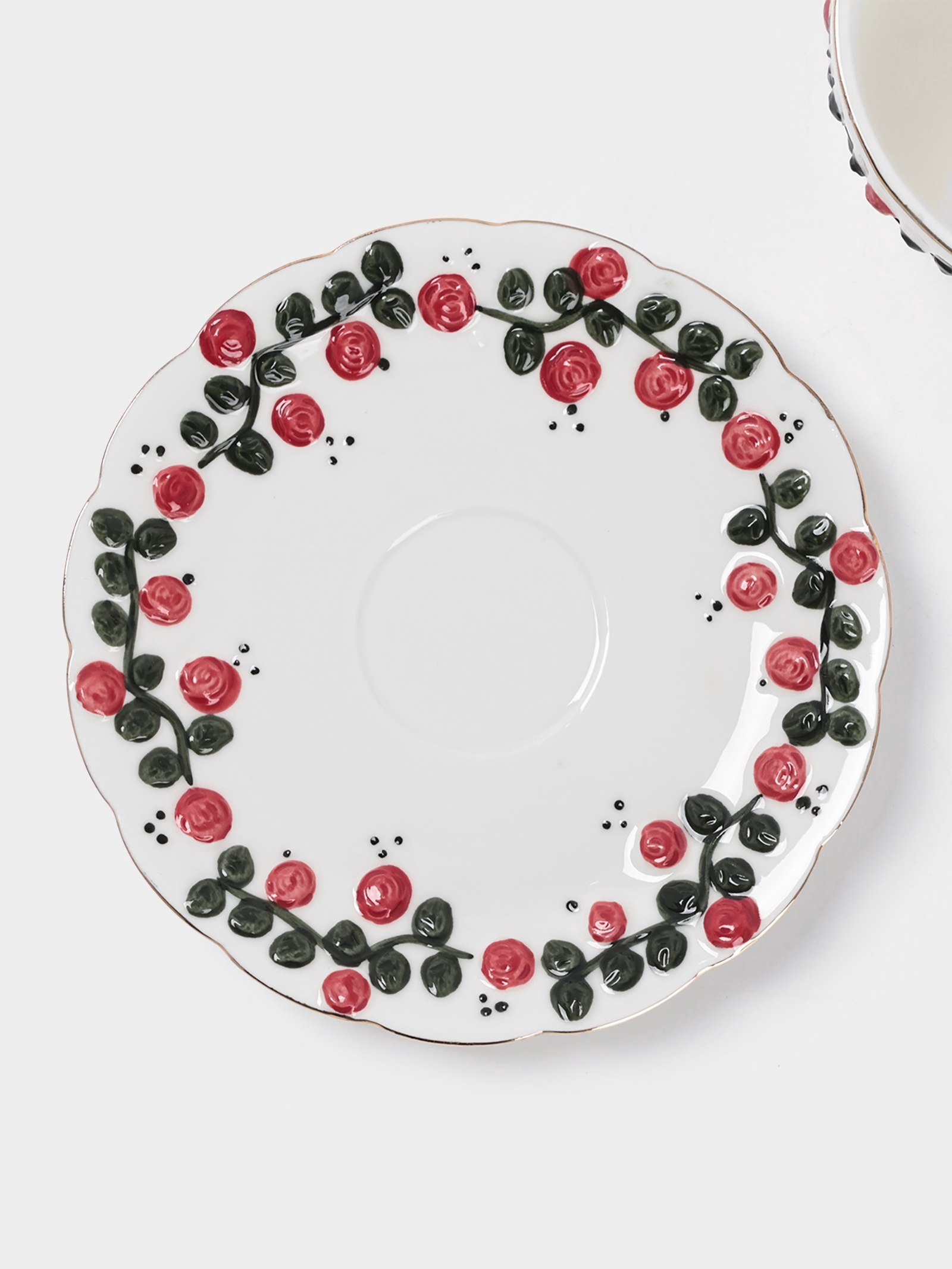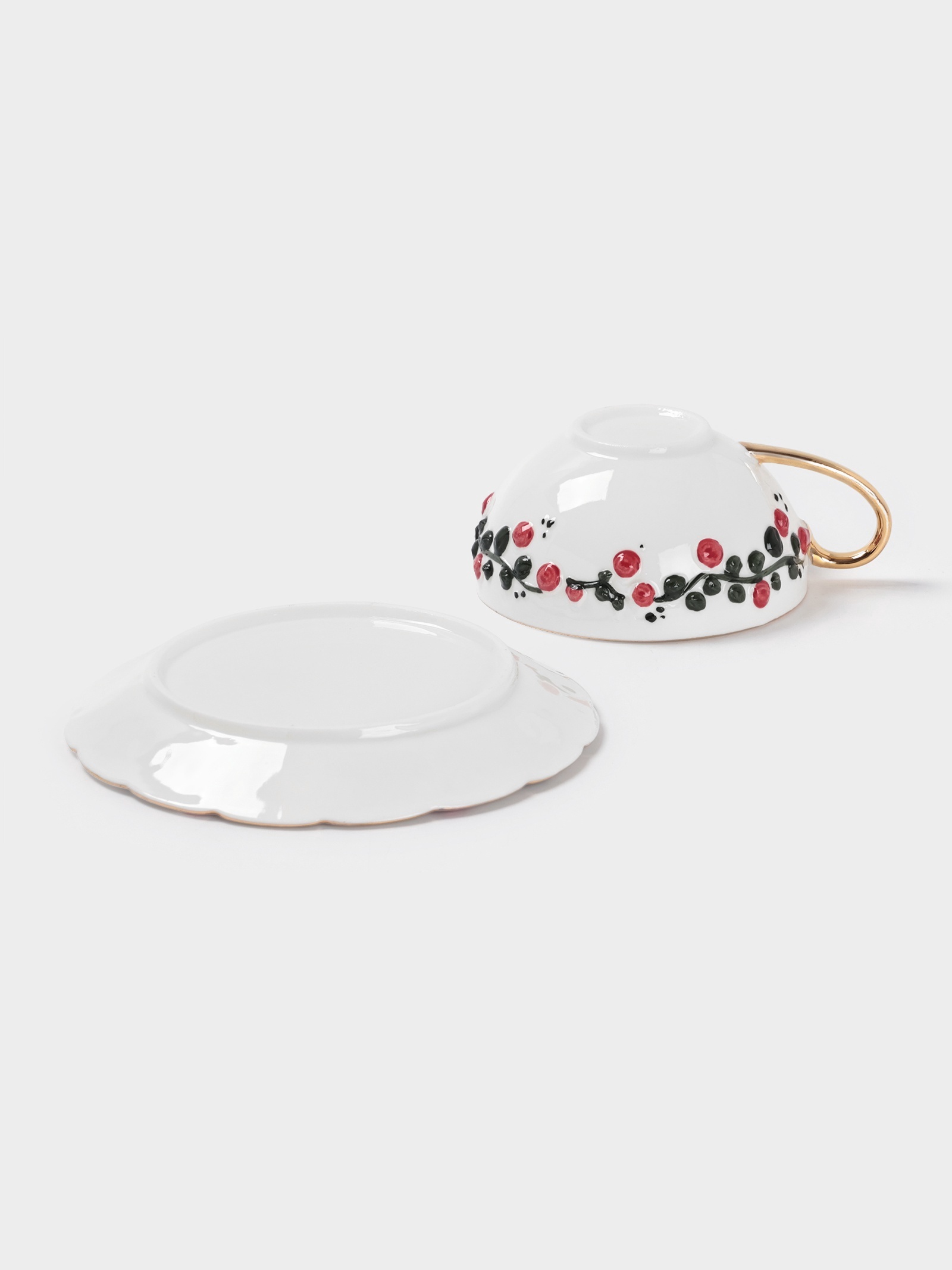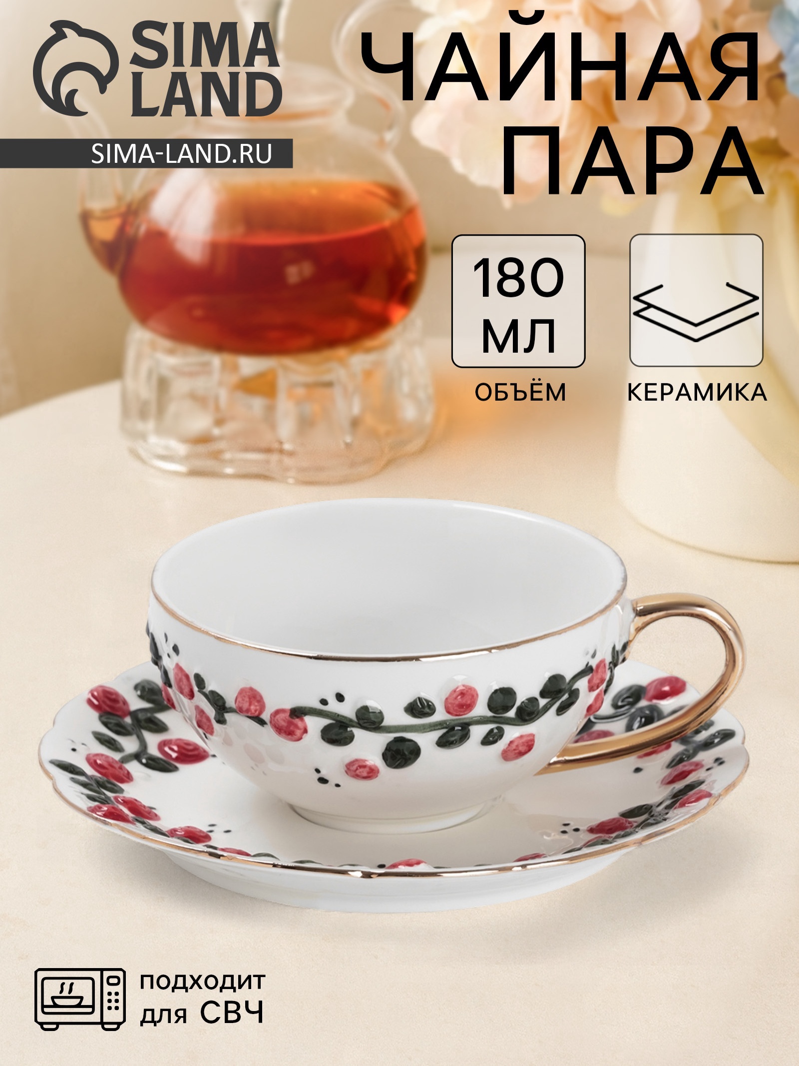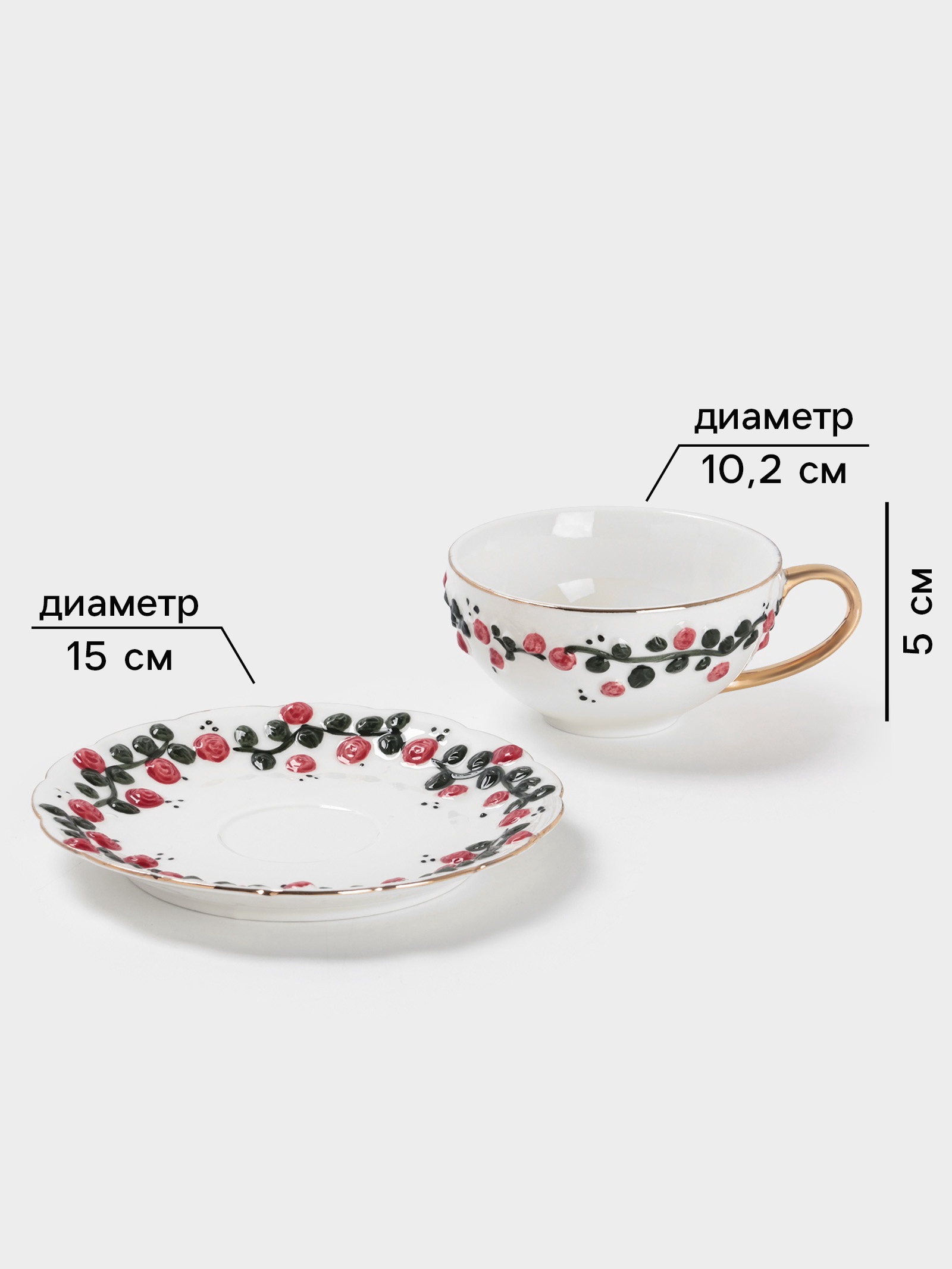 Чайная пара «красный бутон», 2 предмета: чашка 180 мл, блюдце D=15 см, керамика, белая