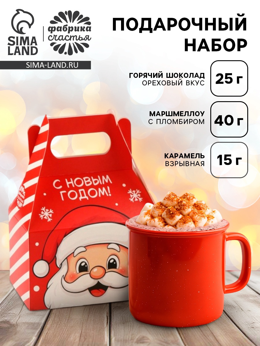 Подарочный набор новогодний «с новым годом», маршмеллоу, вкус: пломбир, 40 г, горячий шоколад, вкус: орех, 25 г, карамель взрывн