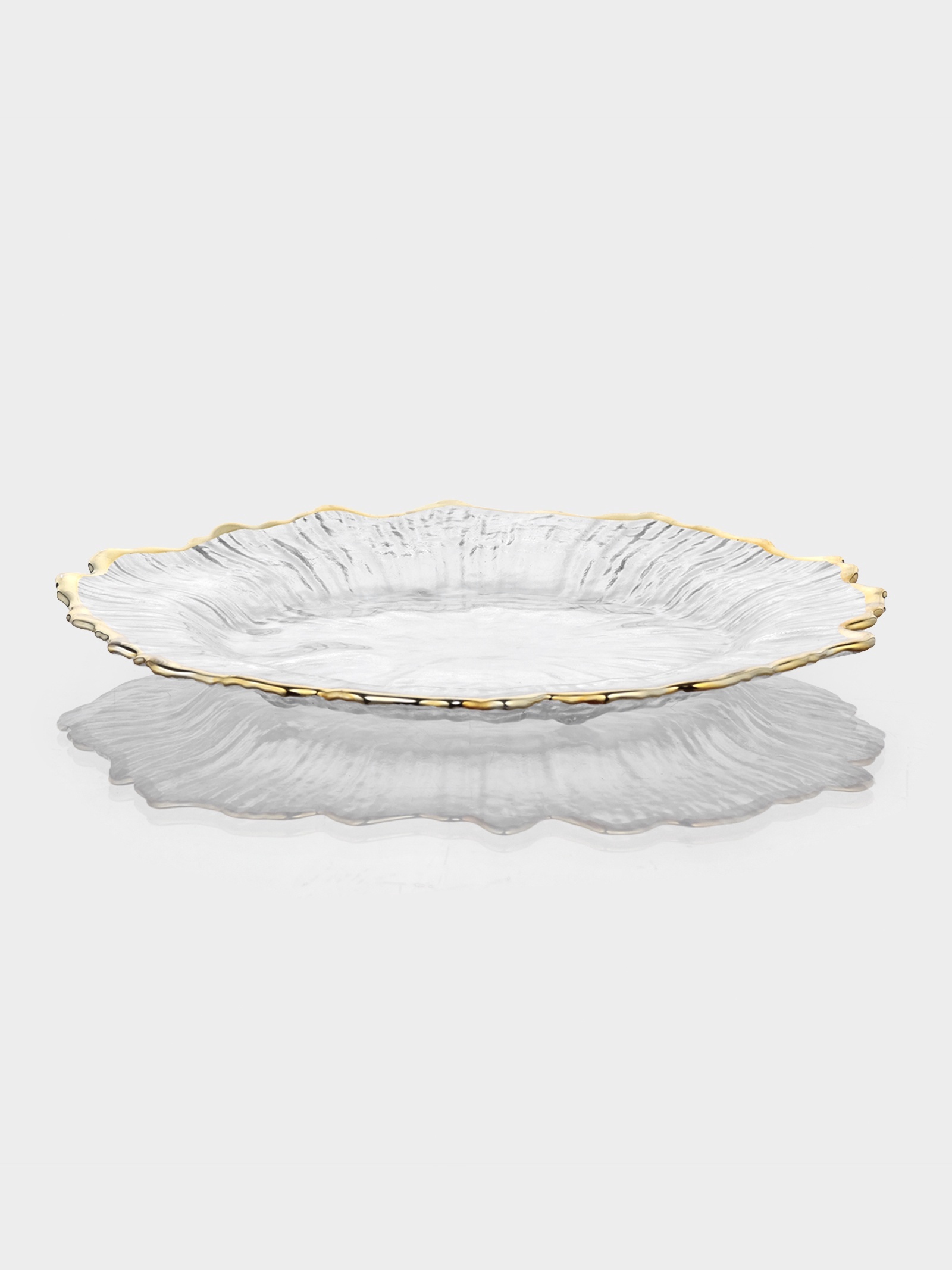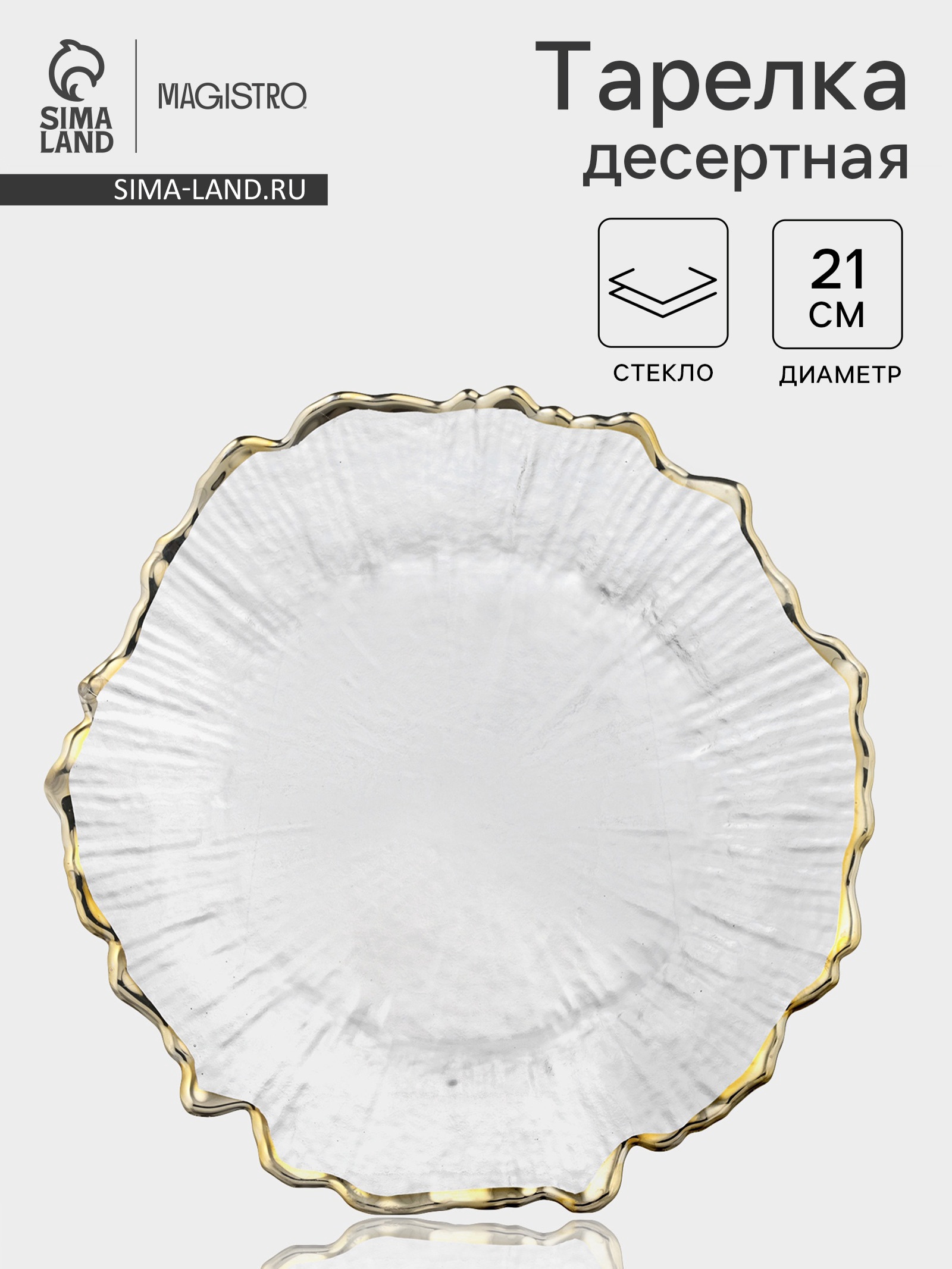 Десертная Magistro тарелка «сияние», D=21 см, золотистая отводка, стекло, прозрачная