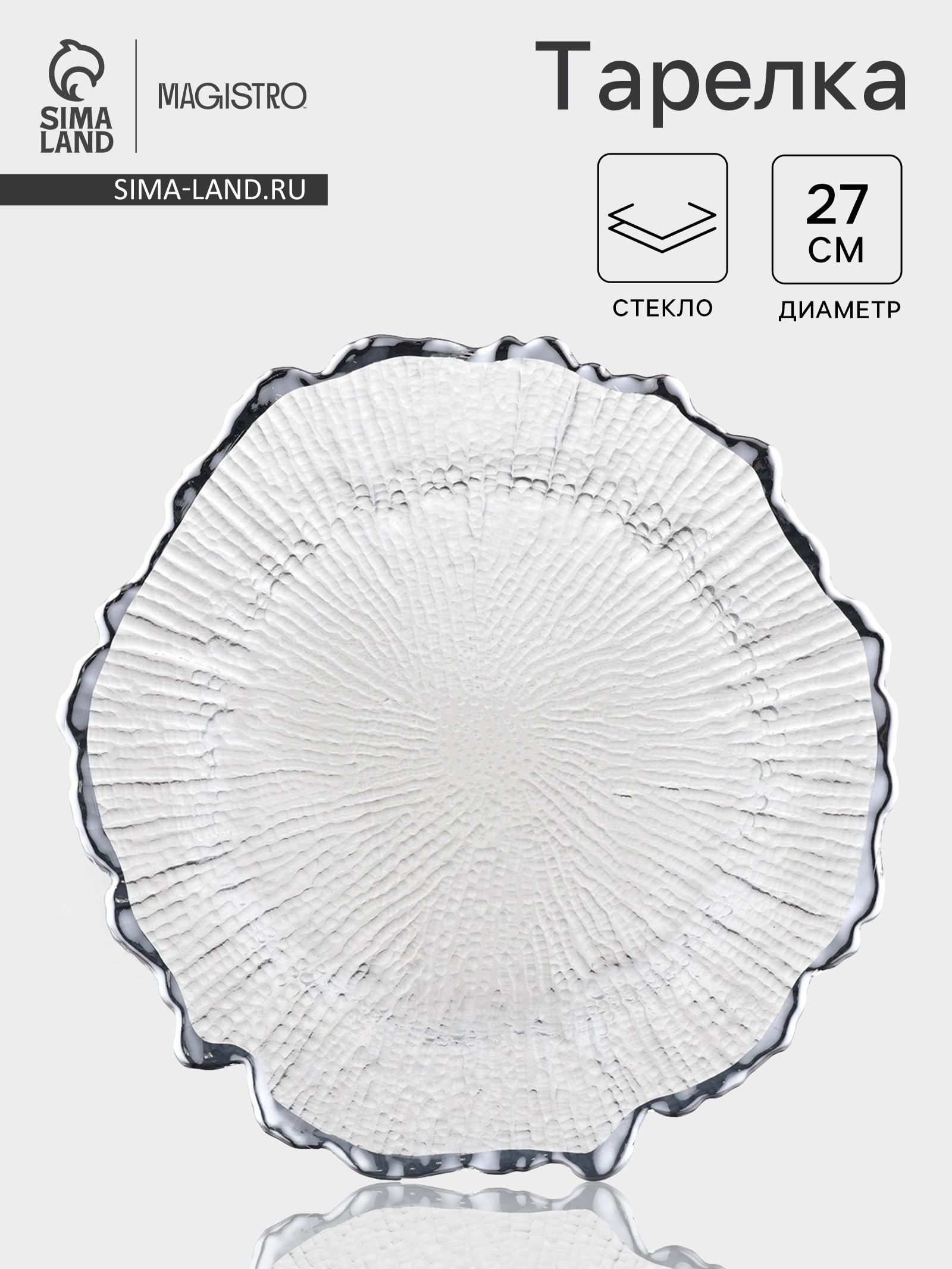 Тарелка Magistro «сияние», D=27 см, серебристая отводка, стекло, прозрачная