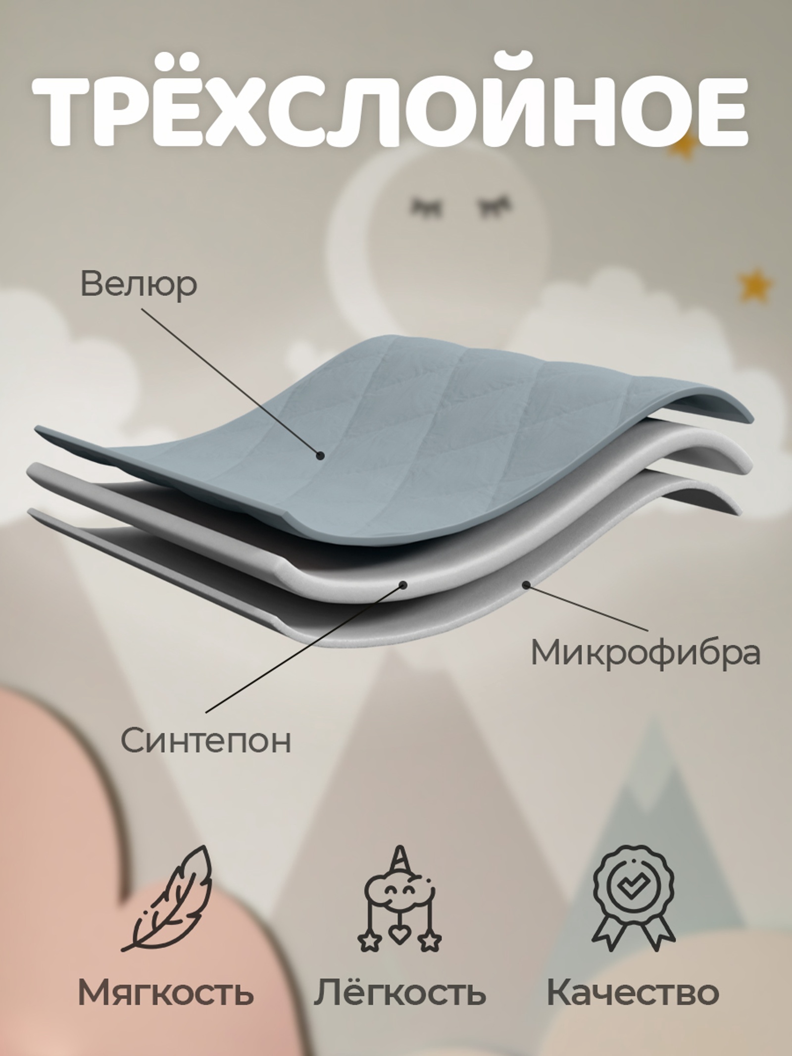 Покрывало 1.5-спальное «этель» Silk Velvet, 120 200±5 см, серо-голубое, велюр
