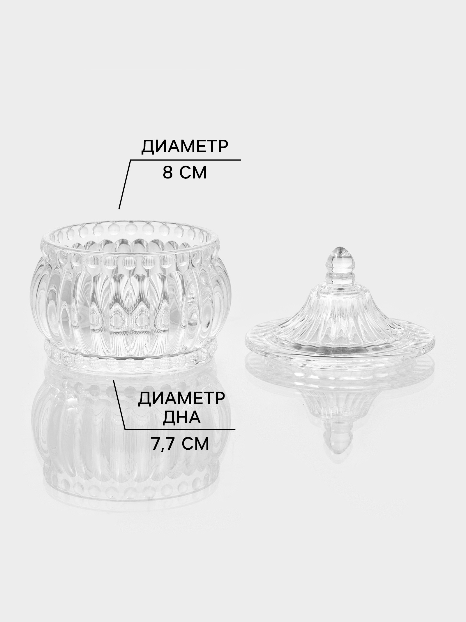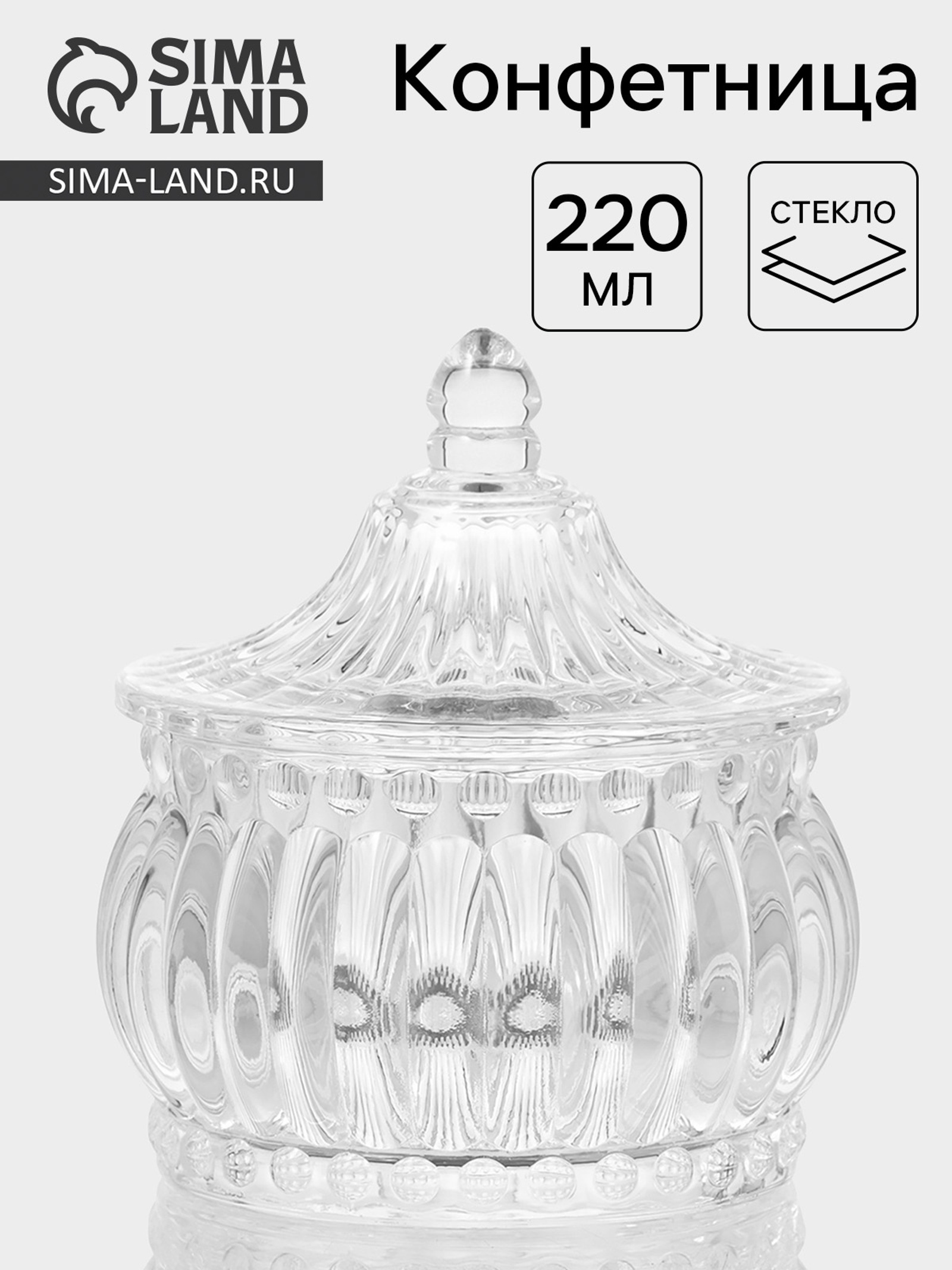 Конфетница «ребристая», 220 мл, 9.5x10.5 см, с крышкой, стекло, прозрачная