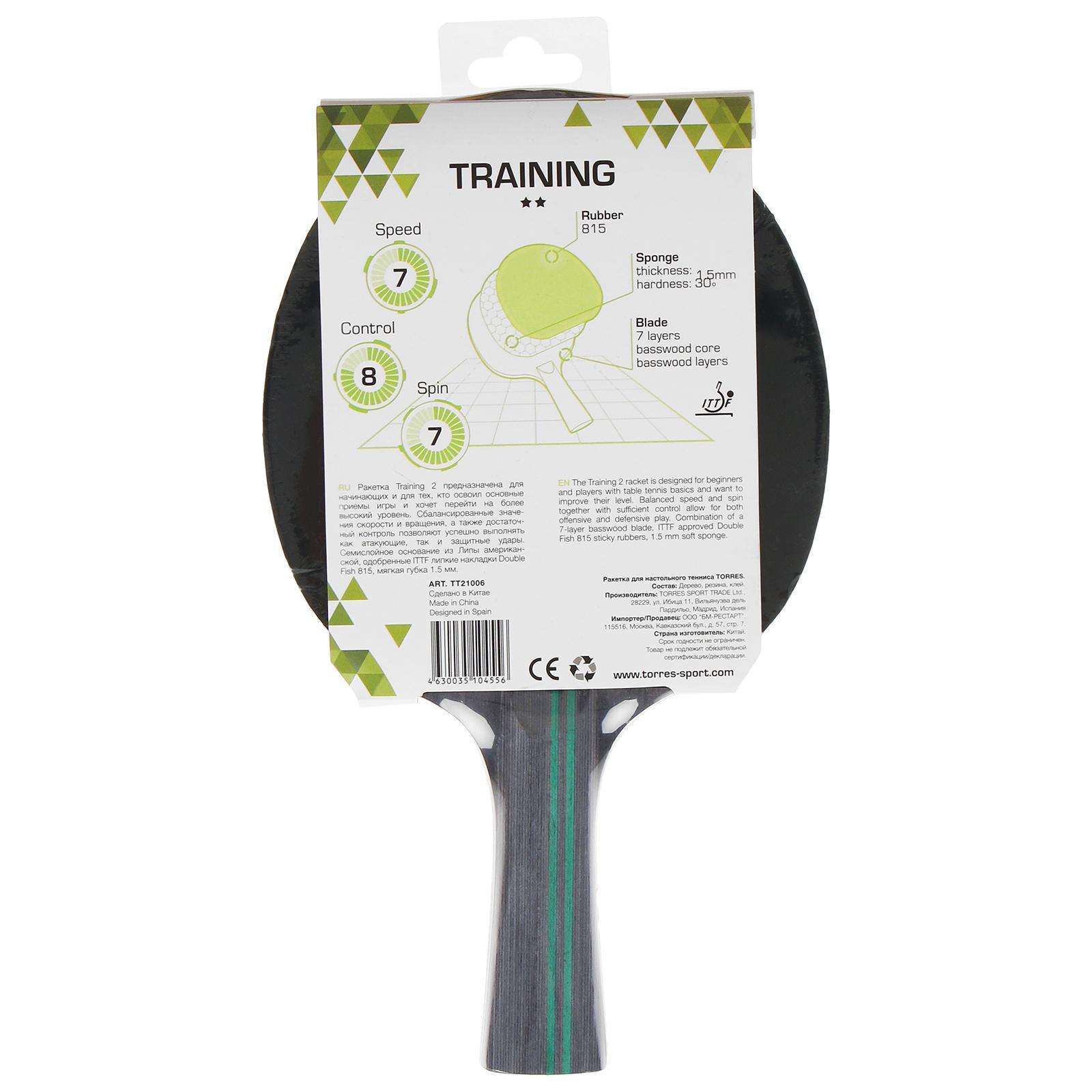 Ракетка для настольного тенниса Torres Training, 2 звезды, накладка 1.5 мм, коническая ручка
