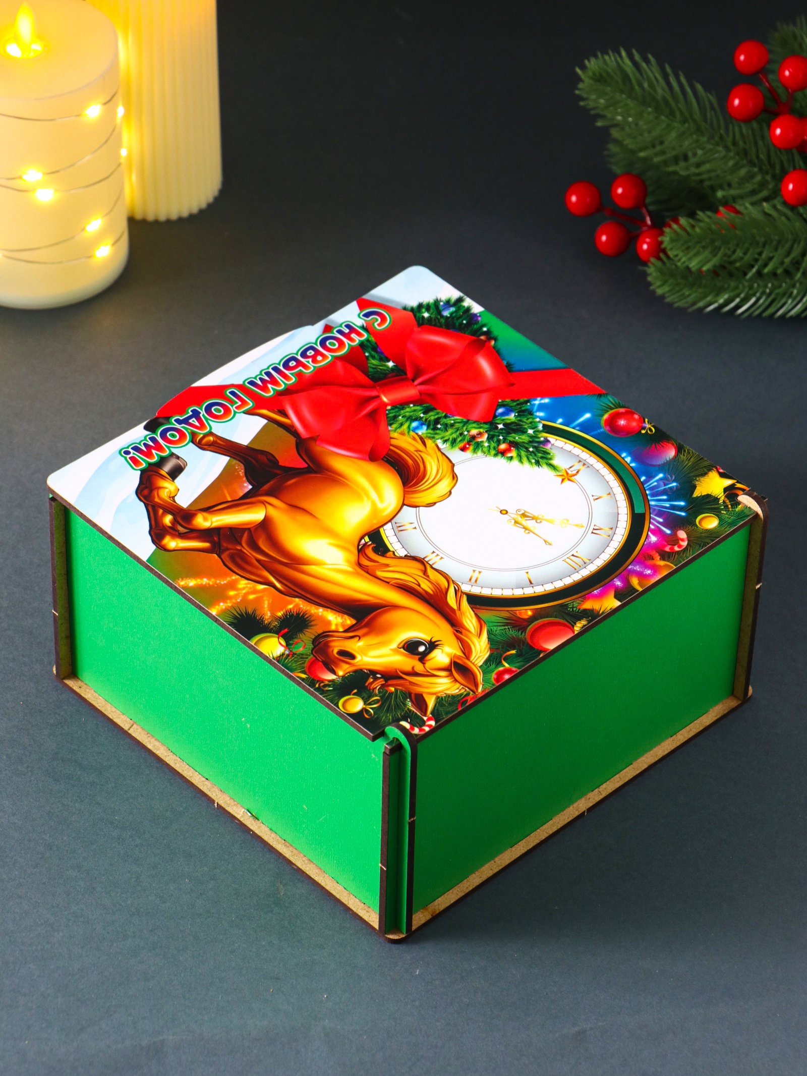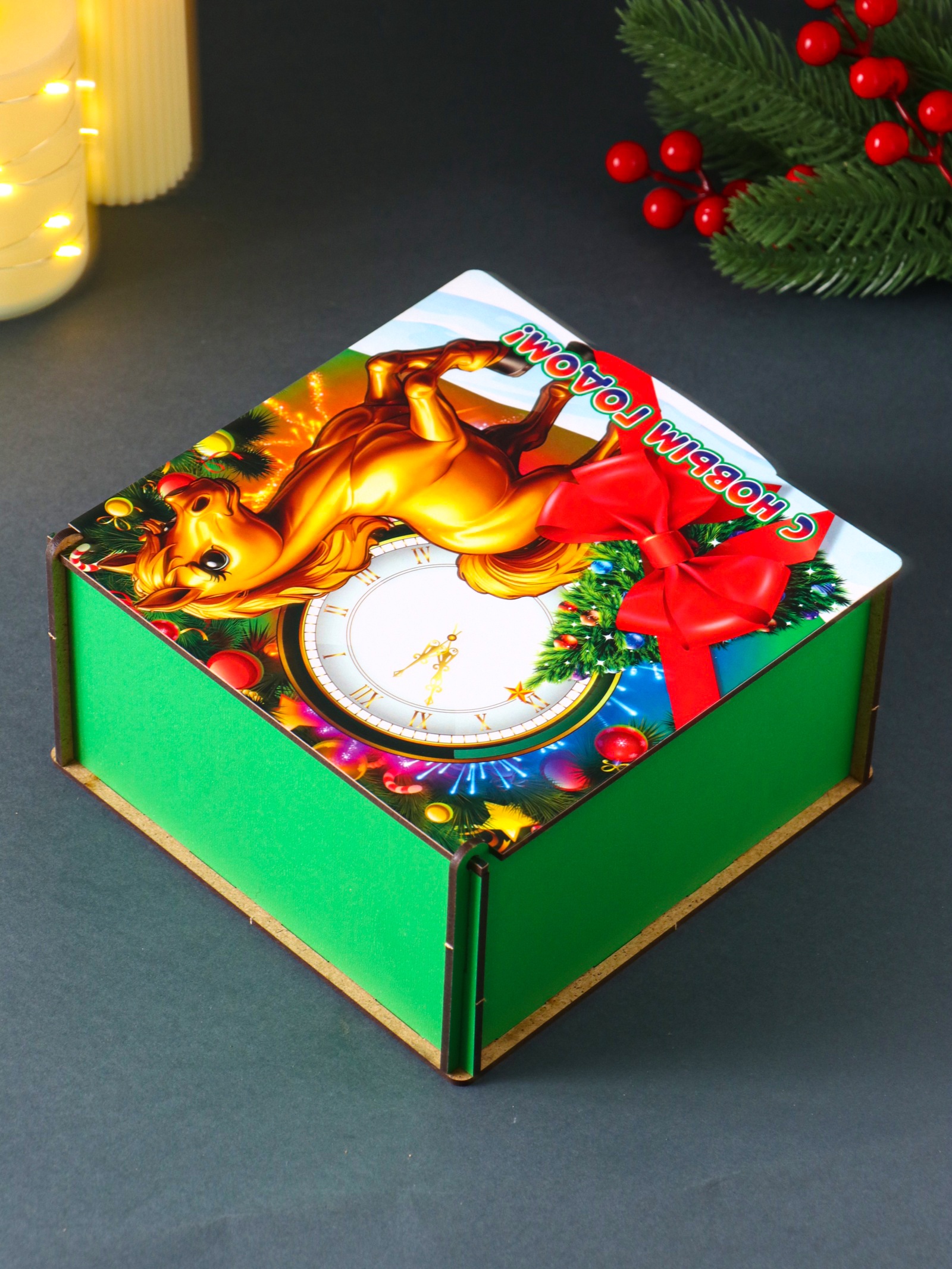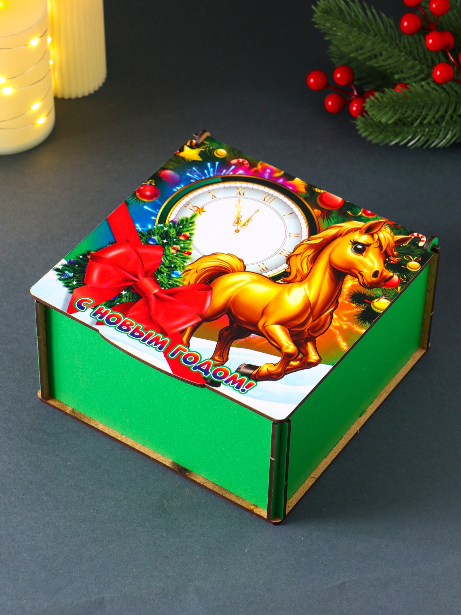 Коробка подарочная новогодняя «шкатулка с лошадкой. с новым годом», 18 18 9.5 см