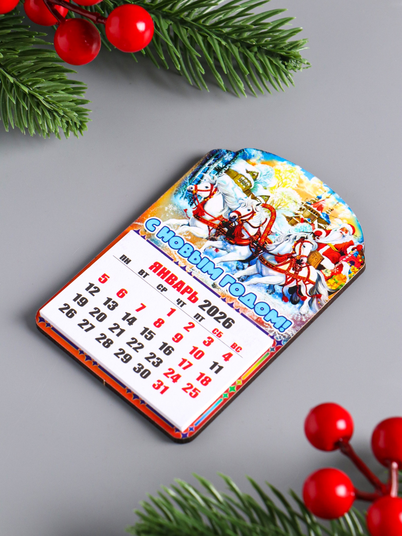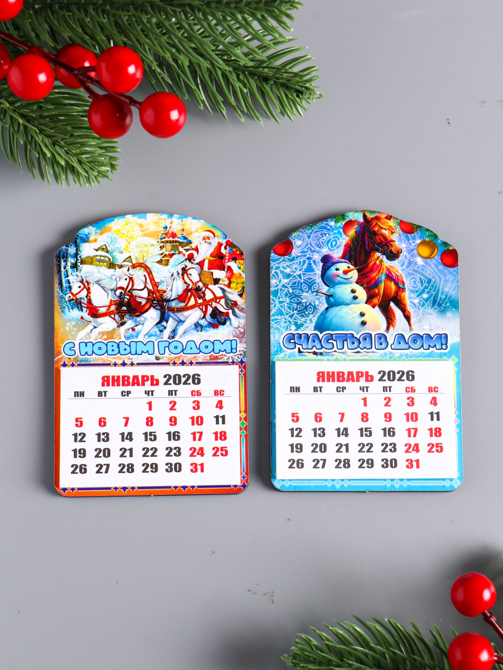 Набор магнитов на холодильник с календарём 2026, 2 шт., «конь: с новым годом, счастья в дом», 9.5 6.5 см