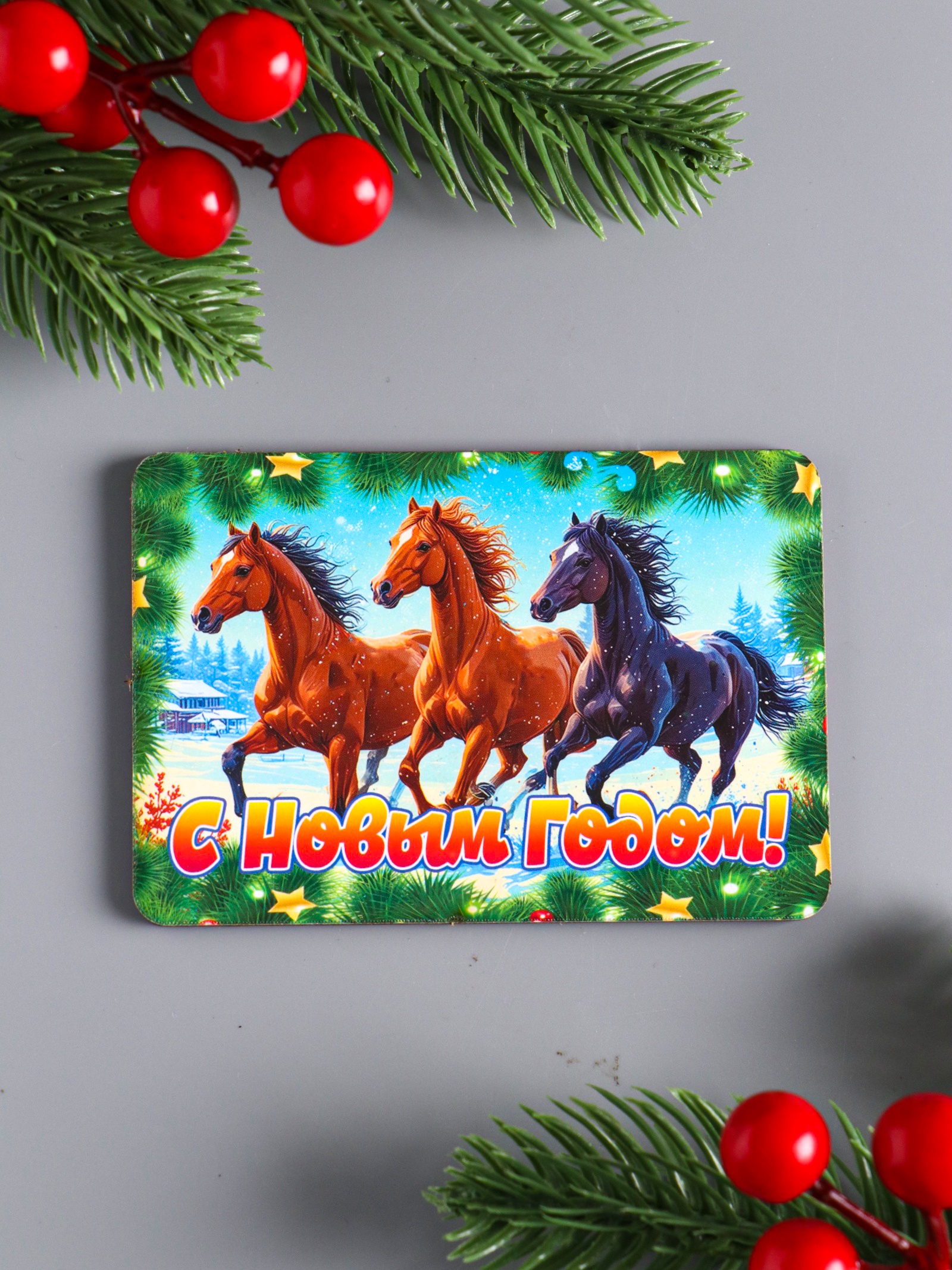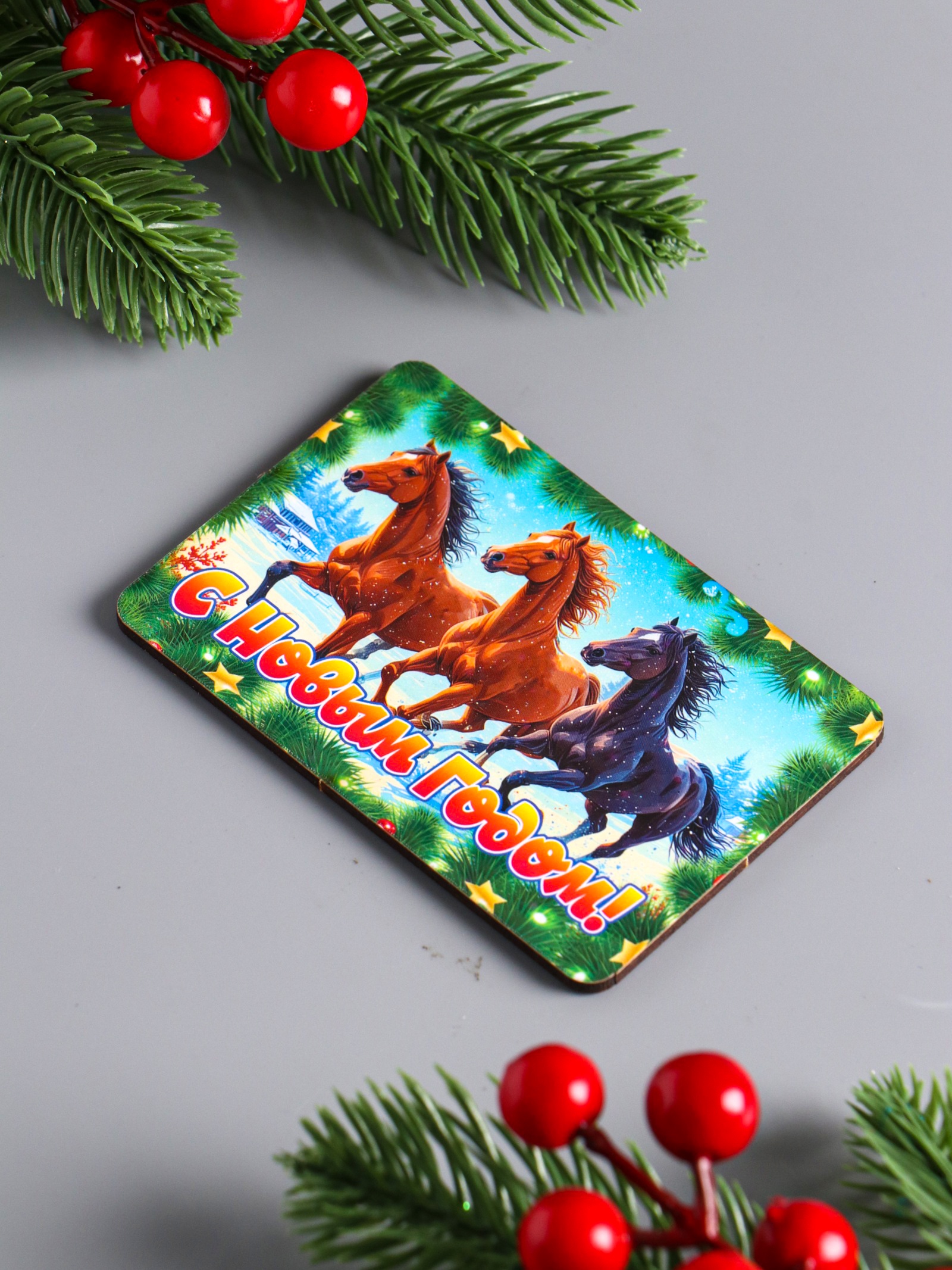 Магнит на холодильник «конь. с новым годом 2026», 9.5 6.5 см. Символ года:Символ года 2026 (Лошадь)|Материал:Дерево|Страна:Россия