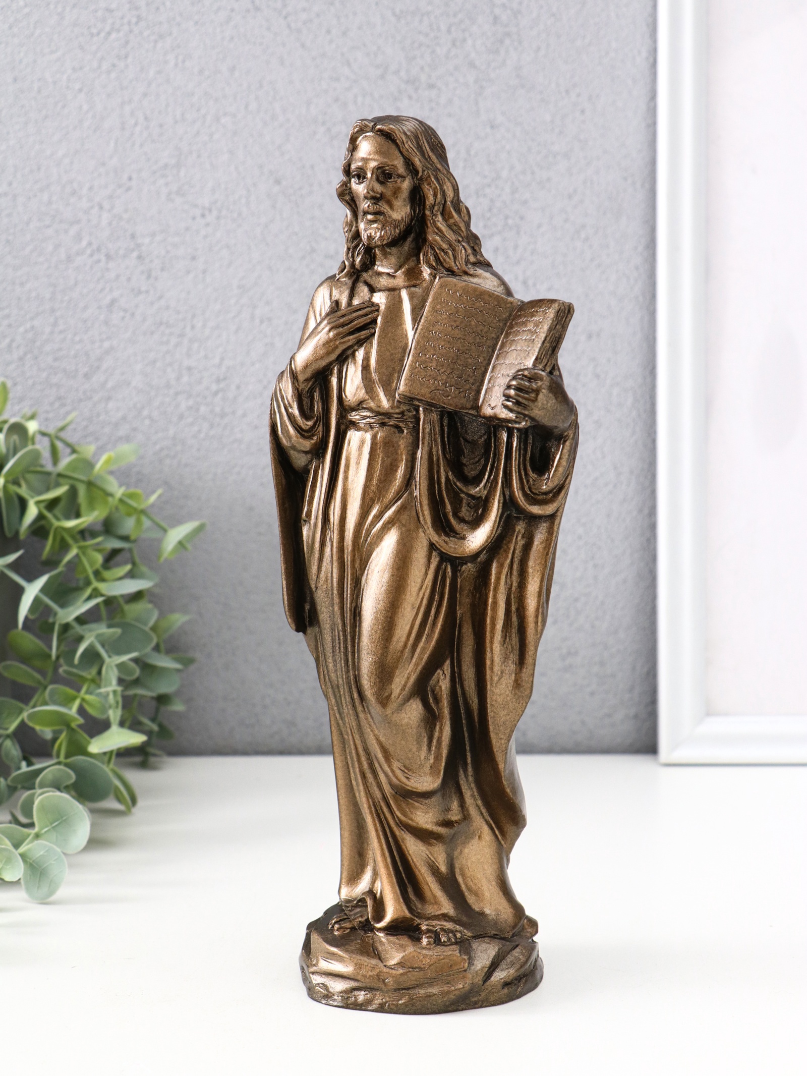 Фигурка гипс «иисус», 25 см, под бронзу. Изящная гипсовая фигурка, выполненная под бронзу, воплощает образ Иисуса Христа с глубоким уважением и вниманием к деталям. Высота изделия — 25 см, что делает её выразительным акцентом в интерьере, способным подчеркнуть духовную атмосферу в доме или служебном помещении. Благодаря бронзовому оттенку фигурка приобретает благородство и визуальную теплоту, оставаясь при этом универсальным декоративным элементом, уместным в любой обстановке. Изготовленная из прочного гипса, она обладает устойчивостью и долговечностью, что позволяет сохранить первозданный вид на долгие годы. Этот предмет декора отлично впишется в тематические композиции, посвящённые Пасхе, а также станет символом веры и вдохновения вне зависимости от времени года. Духовное значение: символизирует веру и надежду, служит напоминанием о важности духовных ценностей.Эстетическая выразительность: бронзовое покрытие придаёт фигурке благородный и тёплый оттенок.Оптимальный размер: высота 25 см позволяет гармонично разместить изделие в любом интерьере.Качественные материалы: гипс обеспечивает прочность и долговечность, сохраняя детали рельефа.Универсальность применения: подходит для домашнего декора, подарка на Пасху или религиозного праздника.Выбирая эту фигурку, вы приобретаете не просто декоративный элемент, а символ, который наполнит пространство особым смыслом и создаст атмосферу умиротворения и духовного тепла. Набор:Нет|Цвет:Бронзовый|Высота, см:25|Тематика праздника:Универсальная тематика|Тематика праздника:Пасха|Имя Бога:Иисус Христос|Страна:Россия  развернуть описание ▼