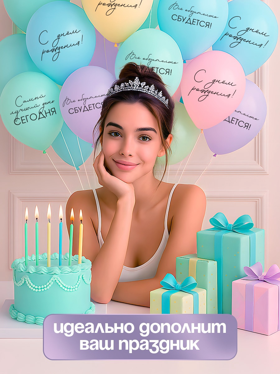 Воздушные шары латексные 12 «всё обязательно сбудется», 5 шт.. Набор качественных латексных воздушных шаров станет идеальным решением для праздничного оформления дня рождения. Шары диаметром 12 дюймов (около 30 см) создадут яркую атмосферу и превратят любое помещение в праздничное пространство. Набор включает воздушные шары из прочного латекса, которые отличаются долгим сроком службы и способностью долго сохранять гелий. Шары идеально подходят для оформления фотозон, праздничных арок, украшения потолка и стен. Их стандартный размер 12 дюймов делает их универсальным элементом декора - достаточно крупными для эффектного оформления, но при этом удобными в работе. Набор воздушных шаров - это простой способ создать праздничную атмосферу без лишних хлопот. Набор:Да|Цвет:Разноцветный|В наборе, шт.:5|Диаметр, дюйм:12|Адресат:Именинница|Адресат:Именинник|Материал:Латекс|Тематика рисунка:День Рождения|Вид шара:Классический|Надувка шара:Гелием|Надувка шара:Воздухом|Язык надписи:Русский|Оттенок:Макарунс|Страна:Россия  развернуть описание ▼