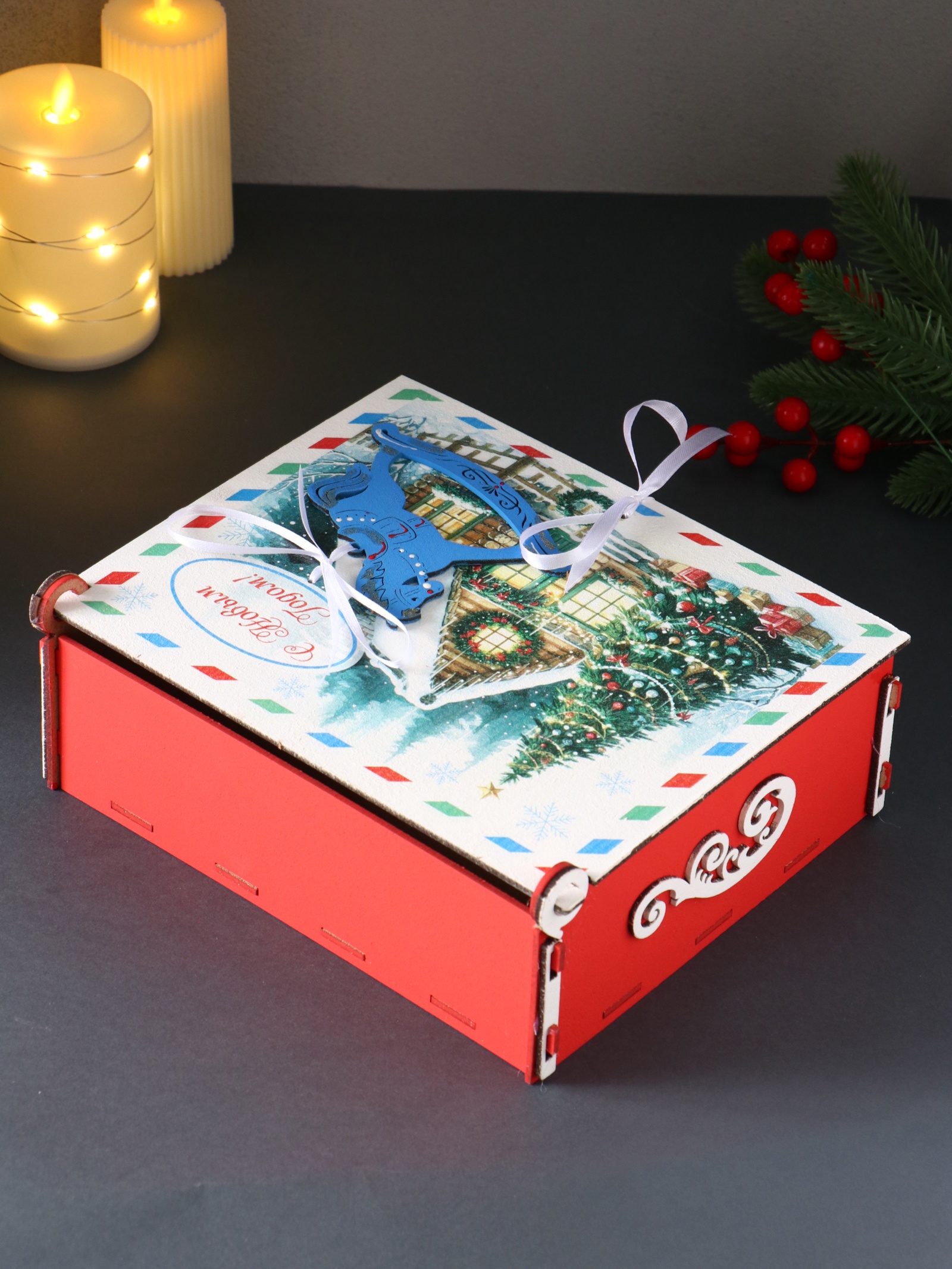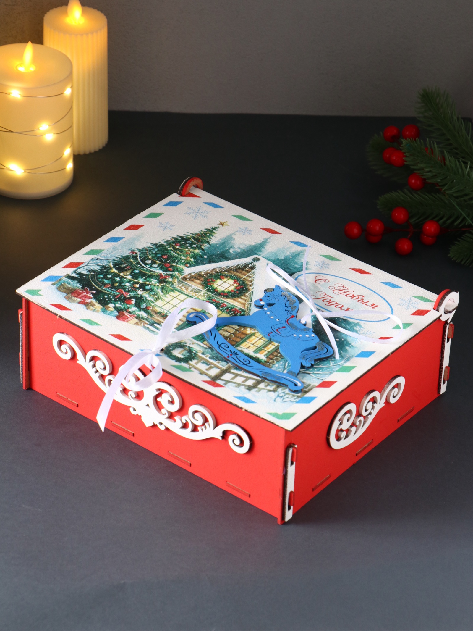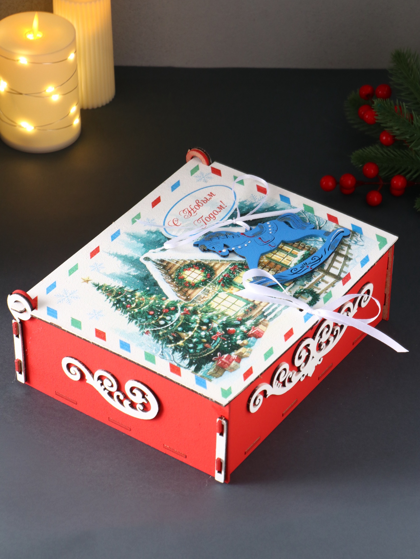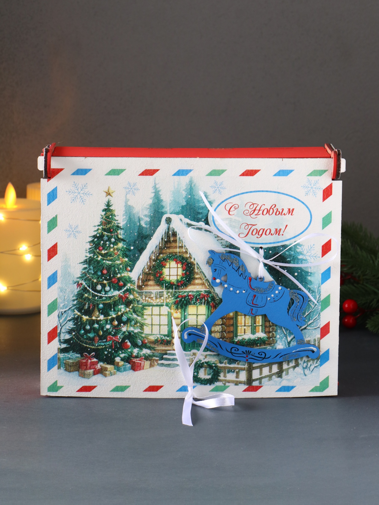 Деревянная шкатулка подарочная «с новым годом», упаковка с фигуркой, 24 20 9 см