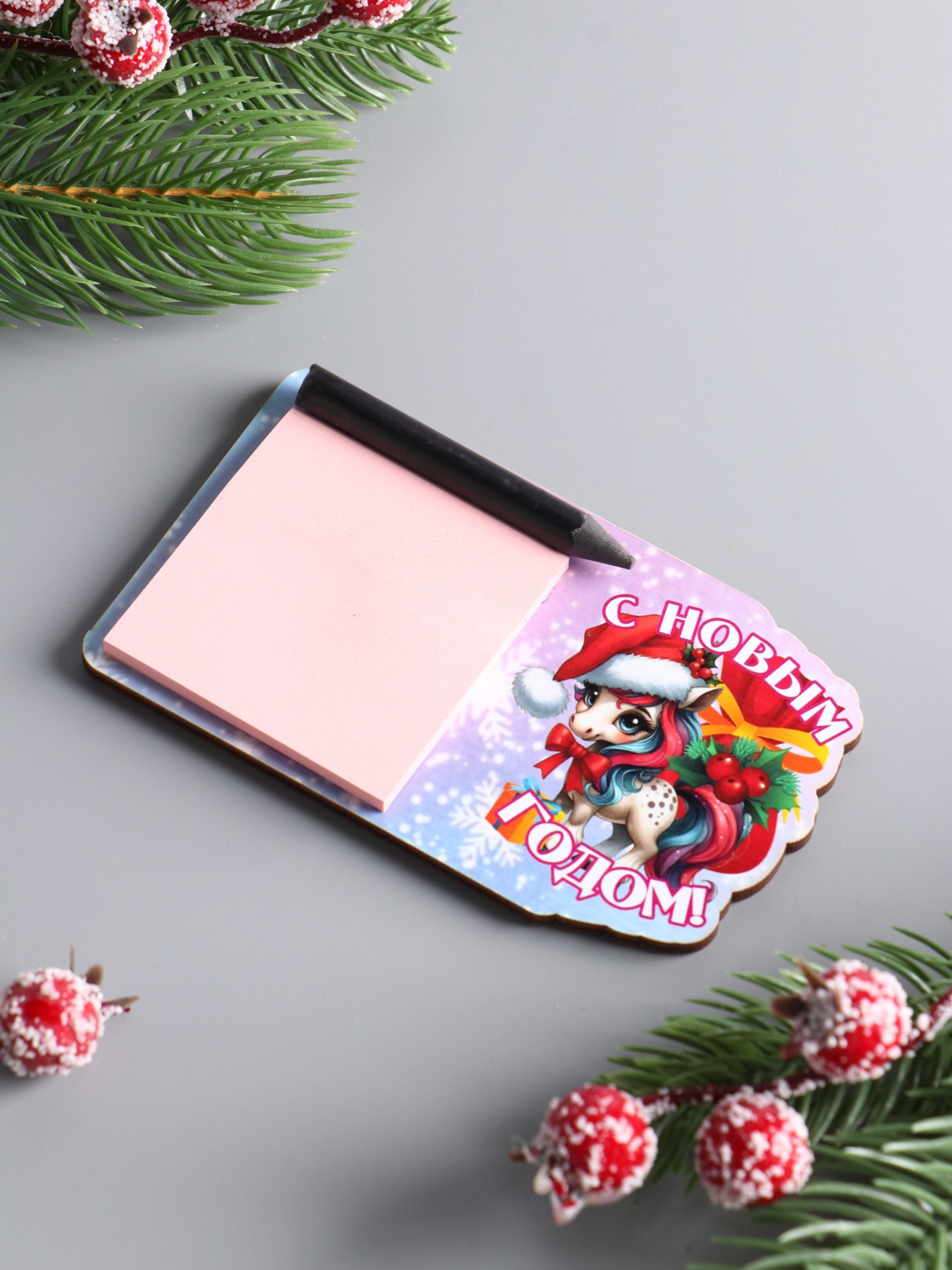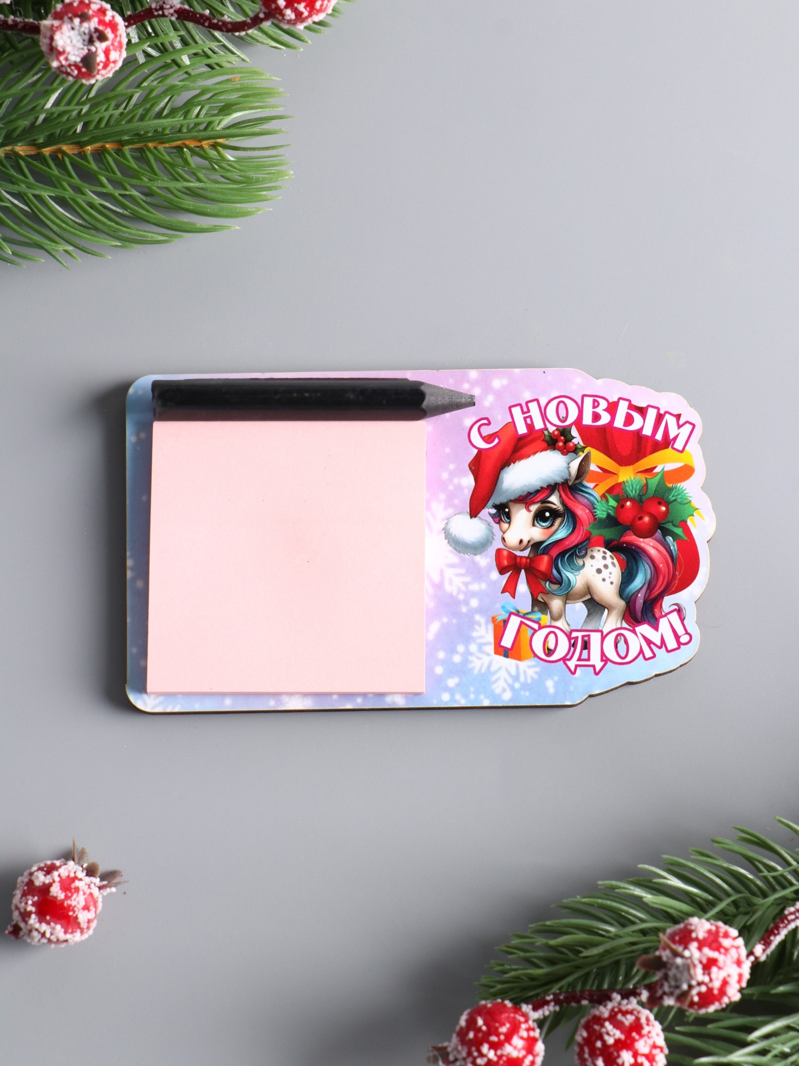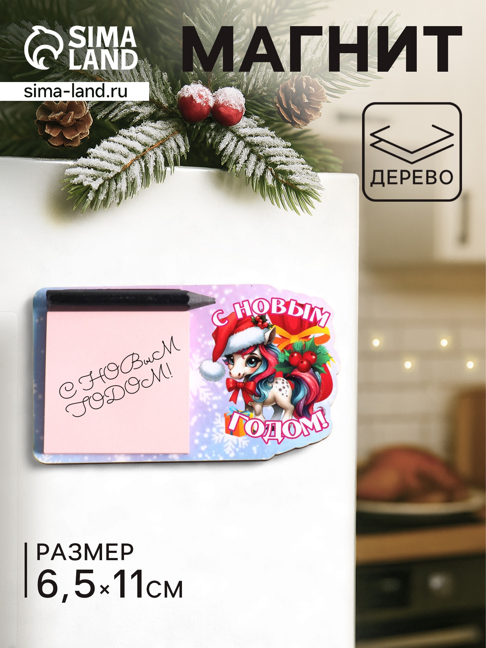Магнит на холодильник с блоком для заметок «лошадь. с новым годом», 6.5 11 см. Символ года:Символ года 2026 (Лошадь)|Материал:Дерево|Страна:Россия