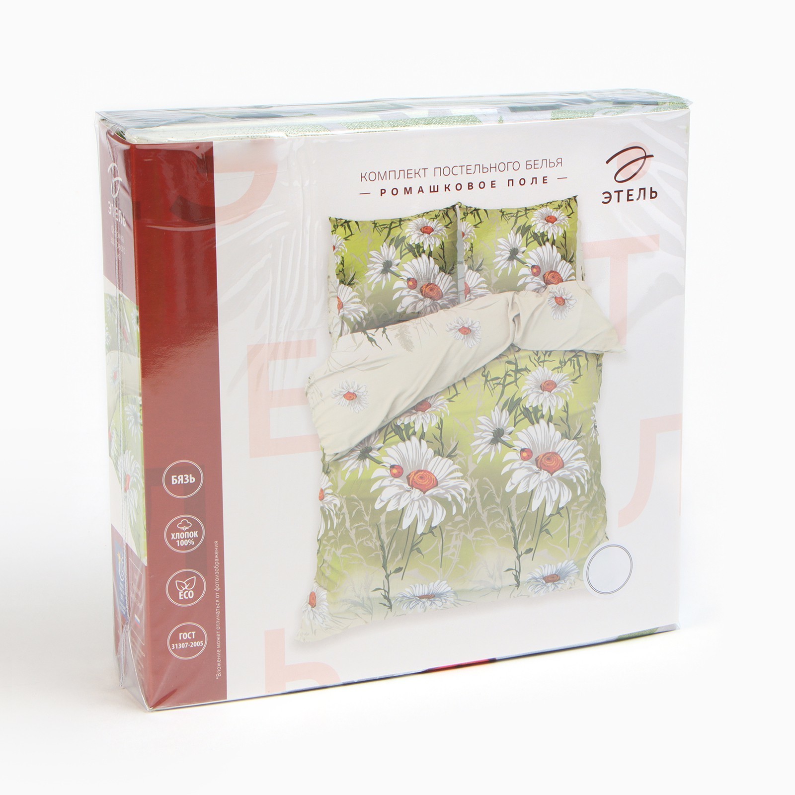 Постельное бельё 2-спальное «этель. ромашковое поле», бязь. Постельное бельё «Этель: бязь» освежит интерьер любой спальни, внесёт в него новые краски и создаст в комнате неповторимый комфорт и атмосферу уюта. Чем хороша бязьx Комплекты из этой ткани — выбор практичных людей. Данный материал обладает массой положительных качеств. Он: приятный на ощупь;подходит даже для людей с чувствительной кожей;отлично пропускает воздух и впитывает влагу, поддерживая комфортный микроклимат в постели на протяжении всей ночи;неприхотлив в уходе;не даёт усадки после стирки.Особенности постельного белья Постельное бельё соответствует стандартам ГОСТ 31307-2005 и имеет европейский сертификат качества Oeko-Tex.09.HRU.73228.Изделия изготовлены из 100 % натурального экологически чистого хлопка.Плотность ткани составляет 125 г/м .Для нанесения рисунков использовались качественные европейские красители. Именно поэтому цвета надолго останутся яркими и насыщенными, а аллергия и раздражения пройдут мимо.Простыня без поперечного шва!Все внутренние швы дополнительно обработаны оверлоком, чтобы избежать естественного осыпания края.Вход в пододеяльник и наволочки оформлен клапаном, простыня без резинки.Комплектация: Пододеяльник, 175 215 см — 1 шт.; простыня, 200 220 см — 1шт.; наволочка, 70 70 см — 2 шт. Рекомендации по уходу за изделиями: стирка при температуре не выше 40 °C без использования отбеливающих средств. Цвет:Зелёный|Цвет:Белый|Размер наволочки, см:70 х 70|Ткань:Бязь|Плотность, г/м :125|Размер:2-спальное|На резинке:Нет|Тематика:Цветочно-растительная|Вид упаковки:PVC-пакет|Тематика праздника:8 Марта|Декоративные элементы:Без элементов|Рекомендации по уходу:Барабанная сушка при низкой температуре|Рекомендации по уходу:Не отбеливать|Рекомендации по уходу:Бережный режим глажки|Рекомендации по уходу:Деликатная стирка при 40 °С|Состав ткани:Хлопок|Количество наволочек:2|Режим стирки:При 40 градусах|Вид простыни:Стандартная|Отделка:Без отделки|Вид печати:Пигментная|Размер пододеяльника, см:175 х 215|Размер простыни, см:200 х 220|Простыня в комплекте:Да|Особенности простыни:Стандартная|Вид застёжки наволочки:Клапан|Вид застёжки пододеяльника:Без застёжки|Страна:Россия  развернуть описание ▼
