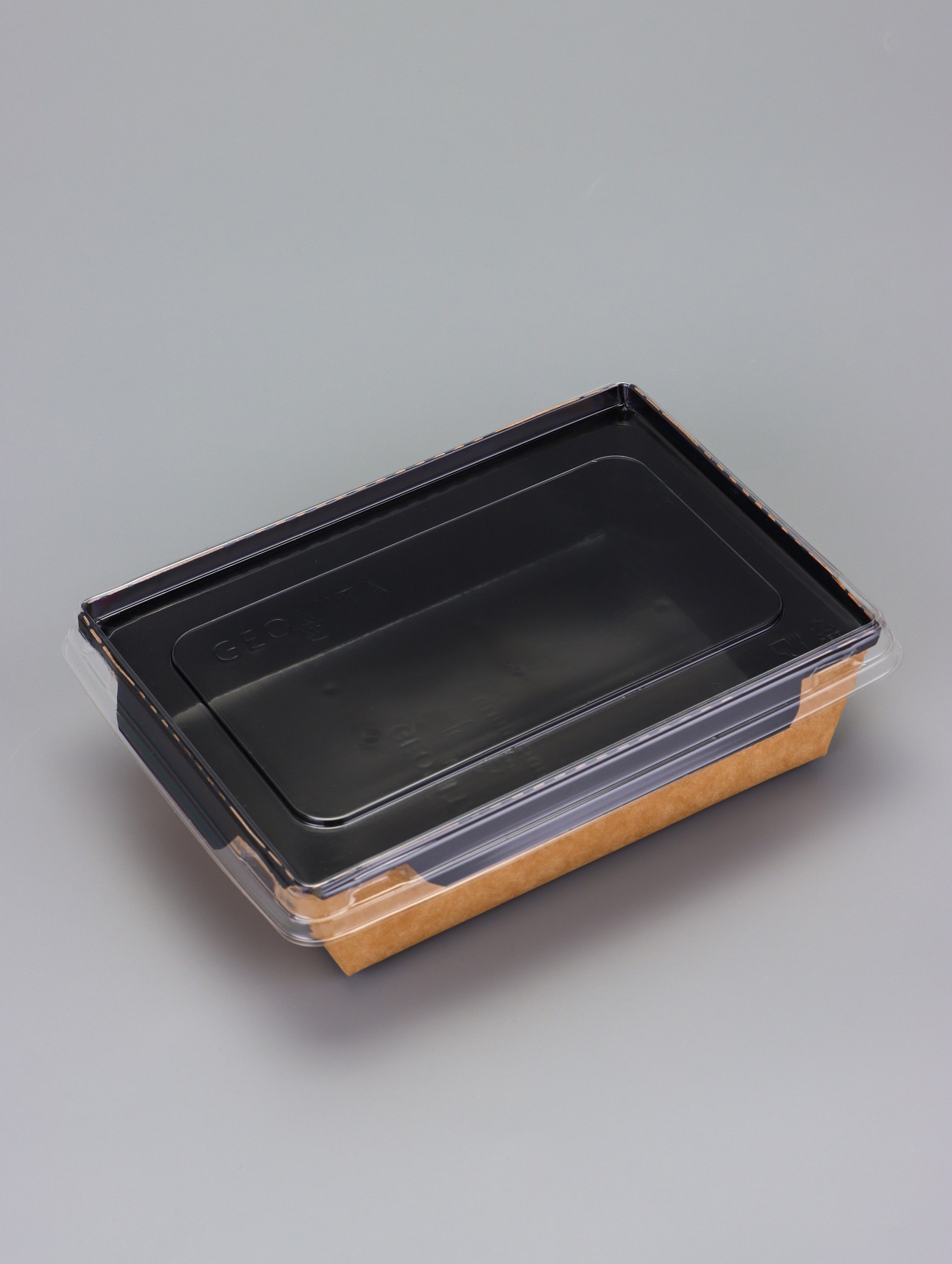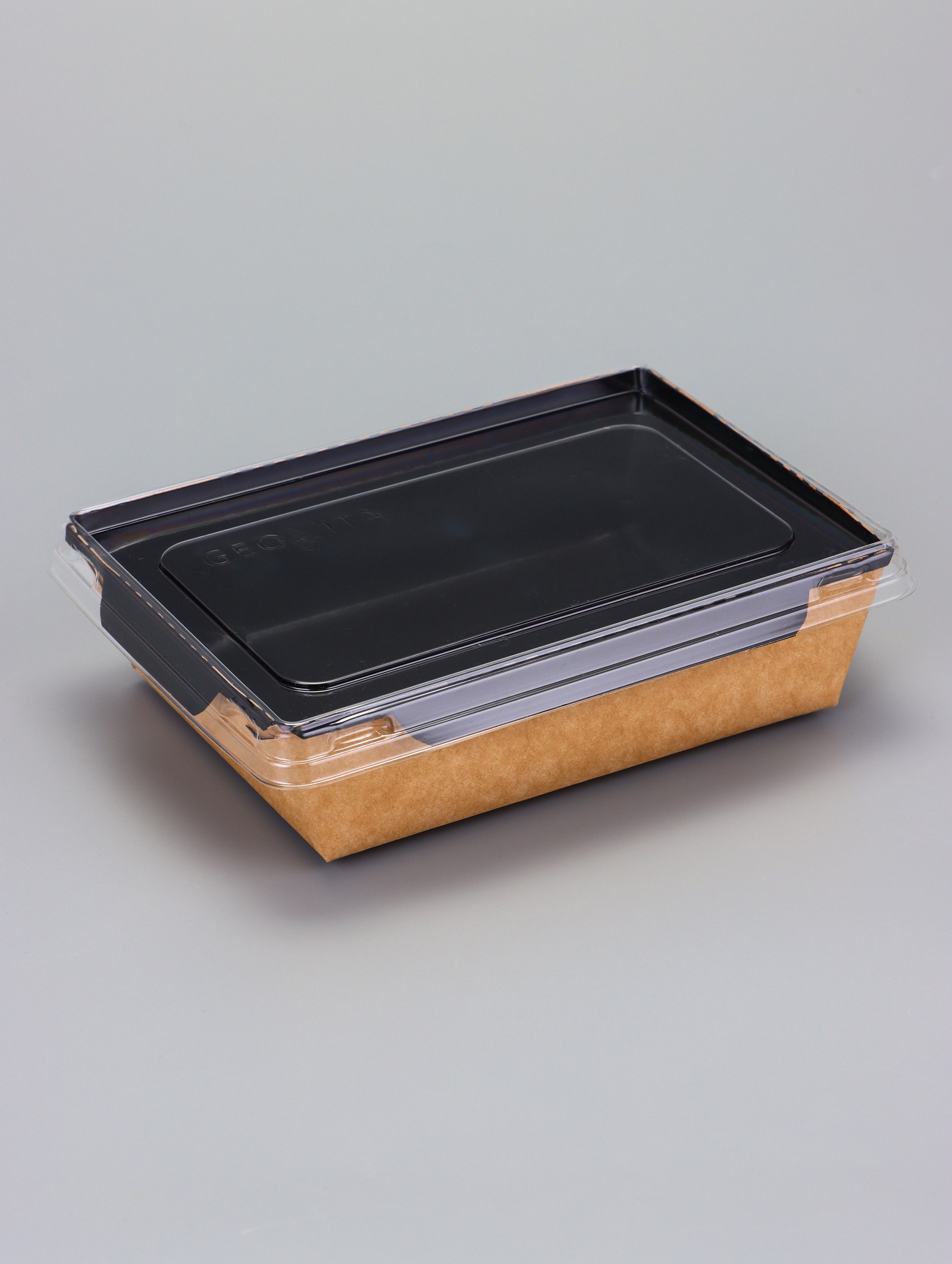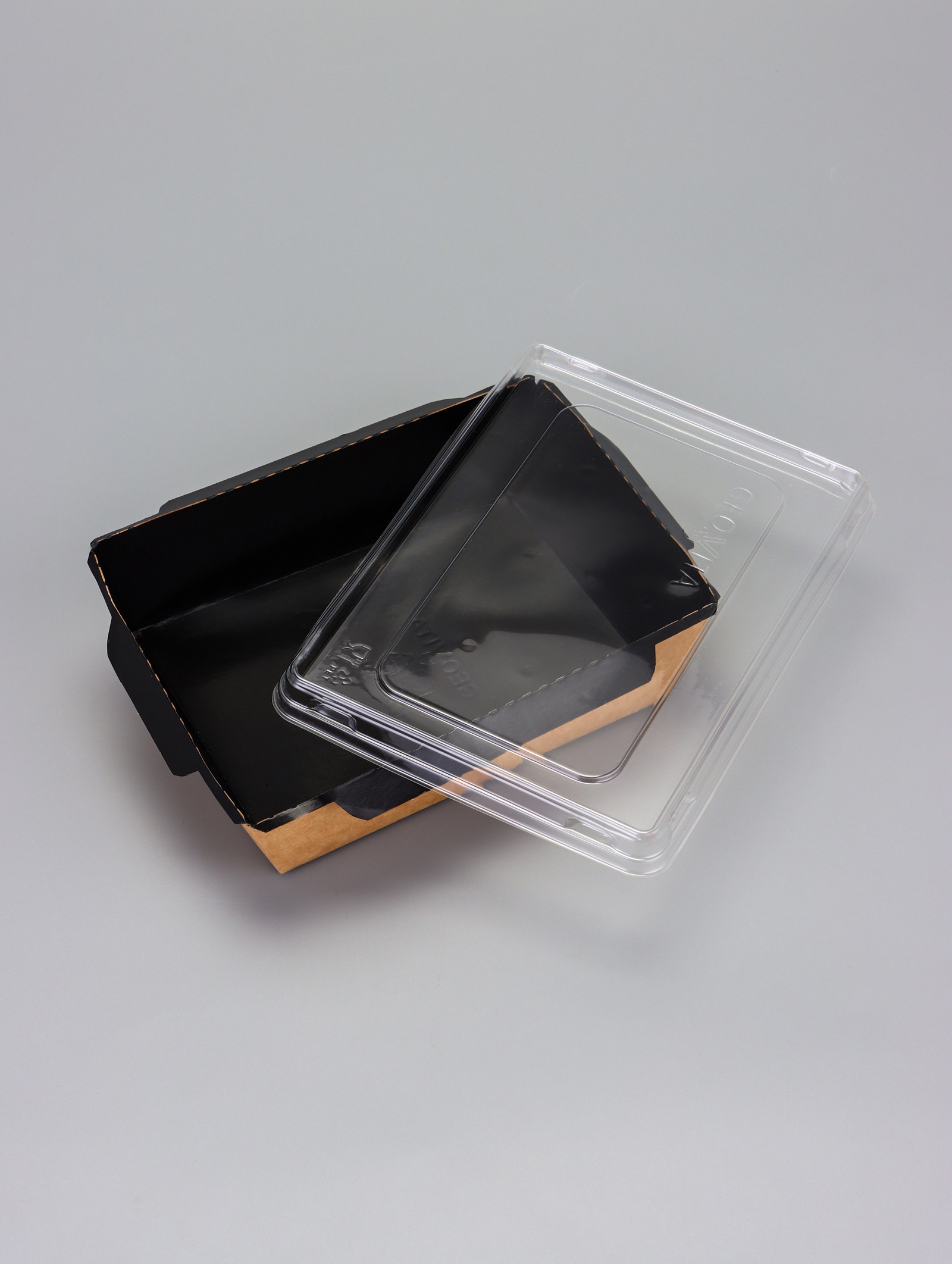 Контейнер - салатник, 0.5 л, черный, с плоской прозрачной крышкой, 16x12x4.5 см.