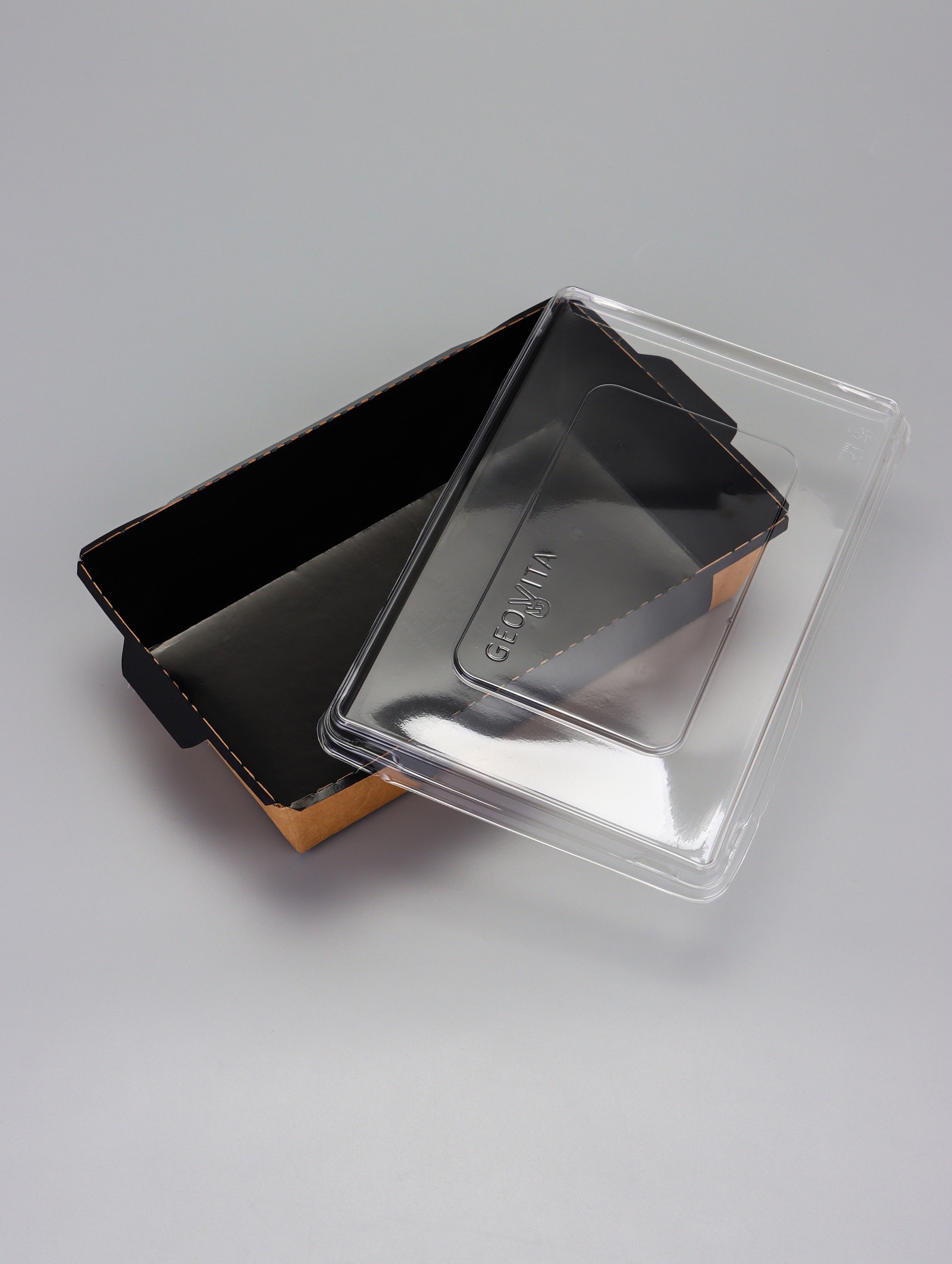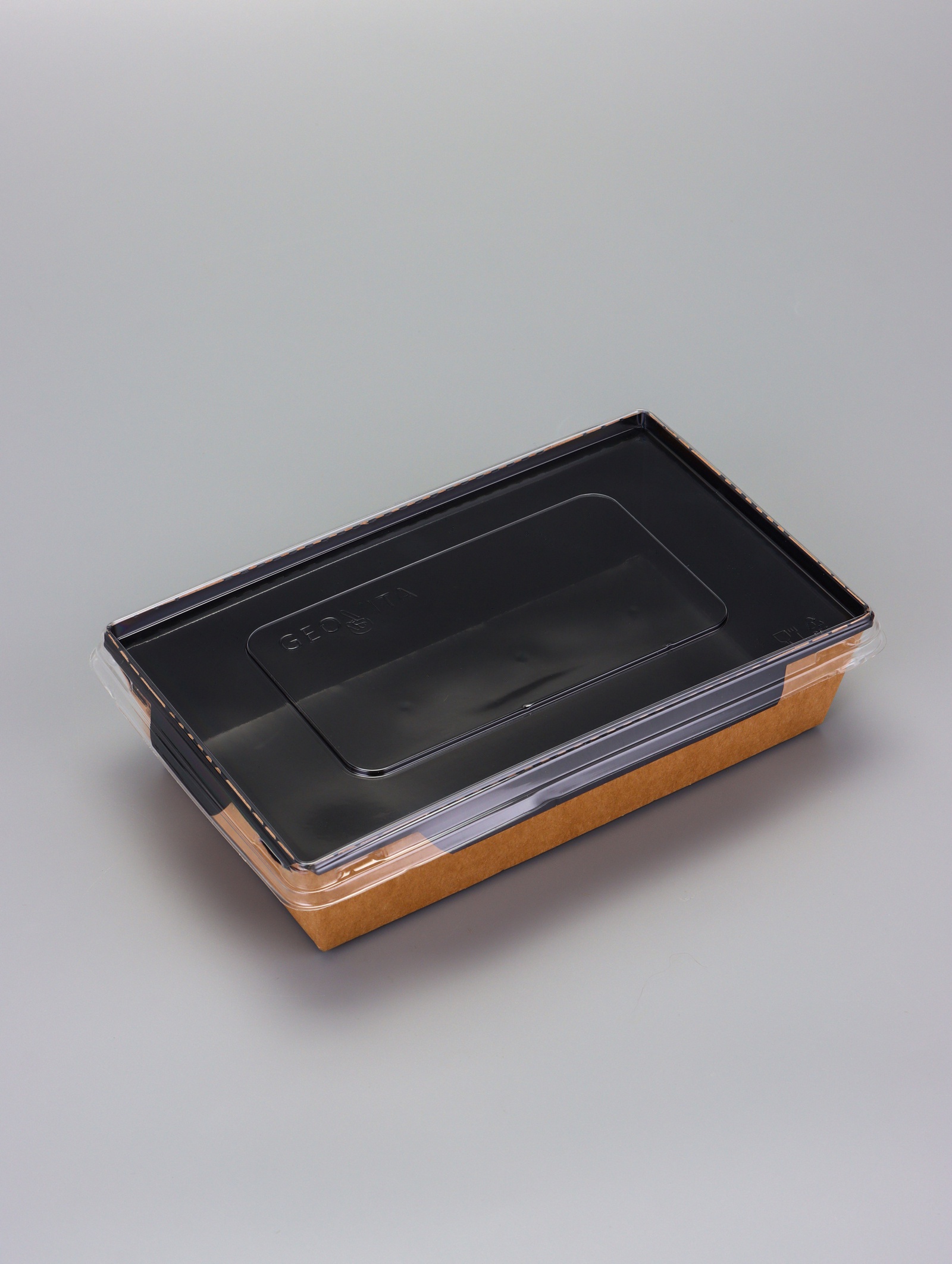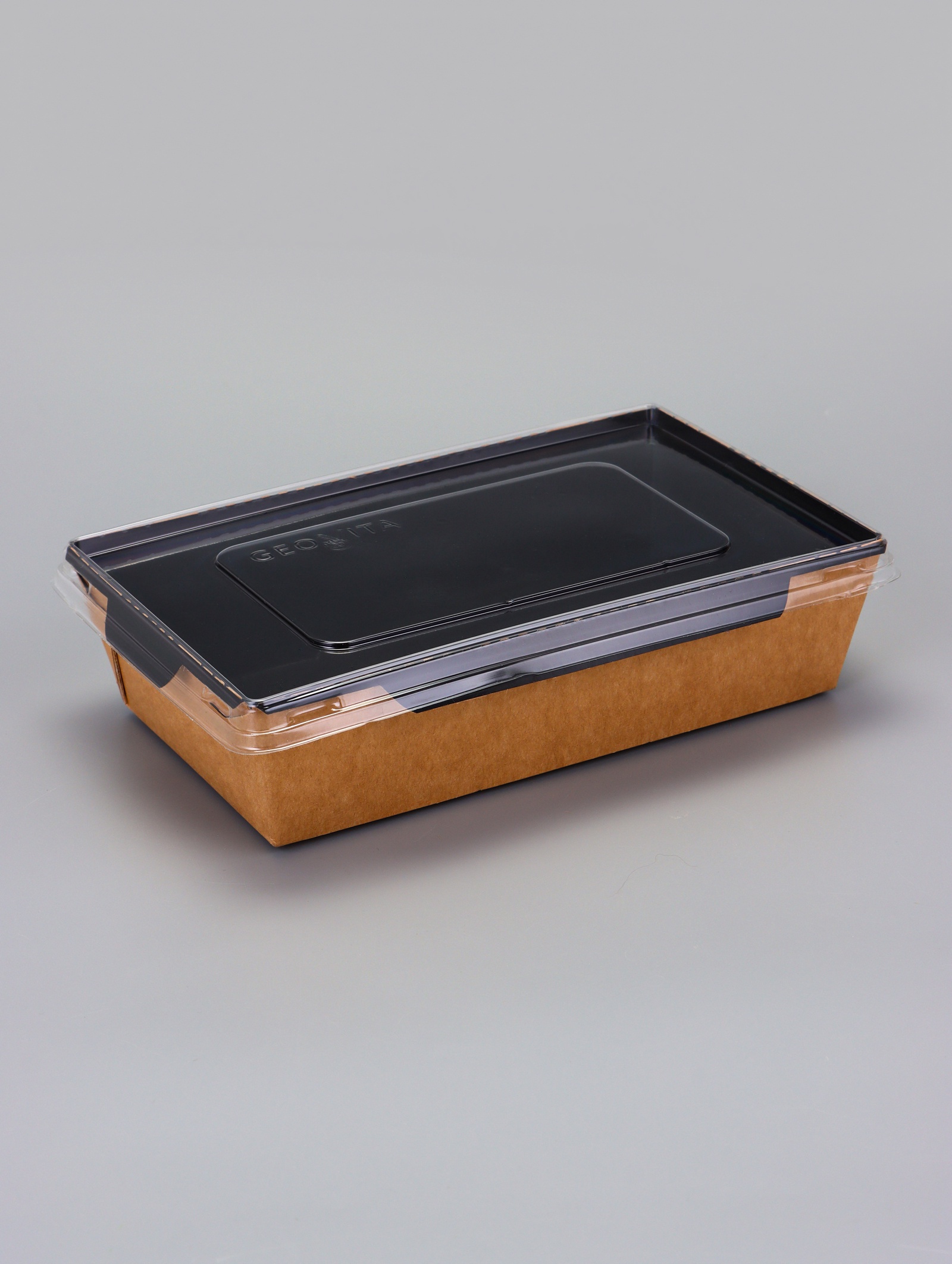Контейнер - салатник, 0.8 л, черный, с плоской прозрачной крышкой, 19x13x5.5 см