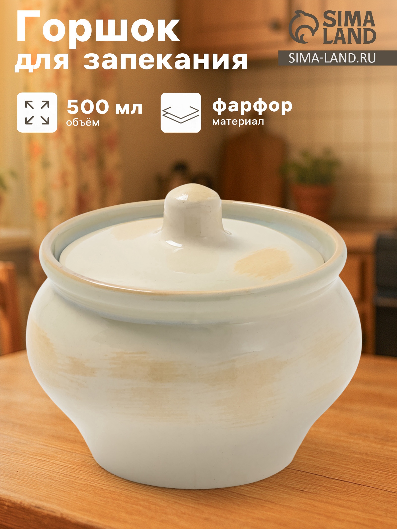 Горшочек для запекания хорекс, D=11.5 см, H=8 см, 500 мл, фарфор, молочный