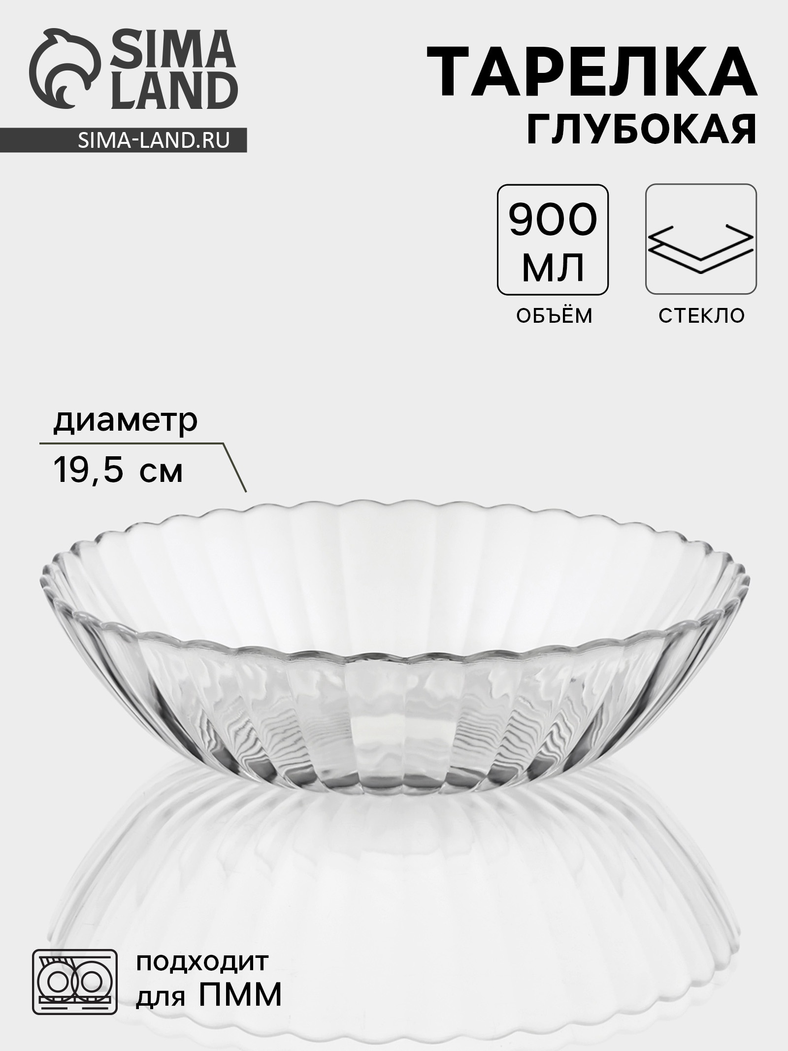 Тарелка глубокая «магия», 900 мл, D=19.5 см, стекло, прозрачная