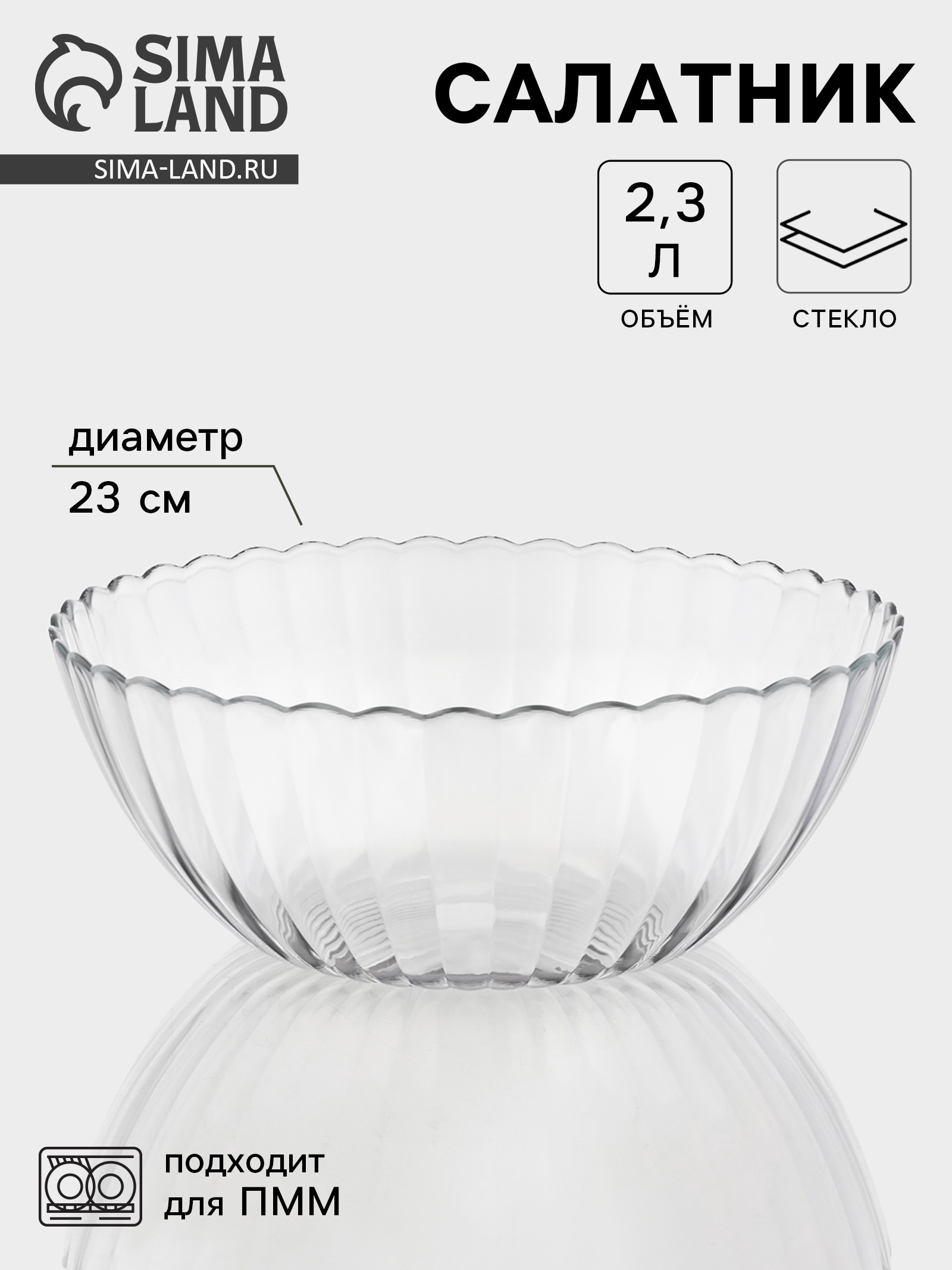 Салатник «магия», 2.3 л, D=23 см, стекло, прозрачный