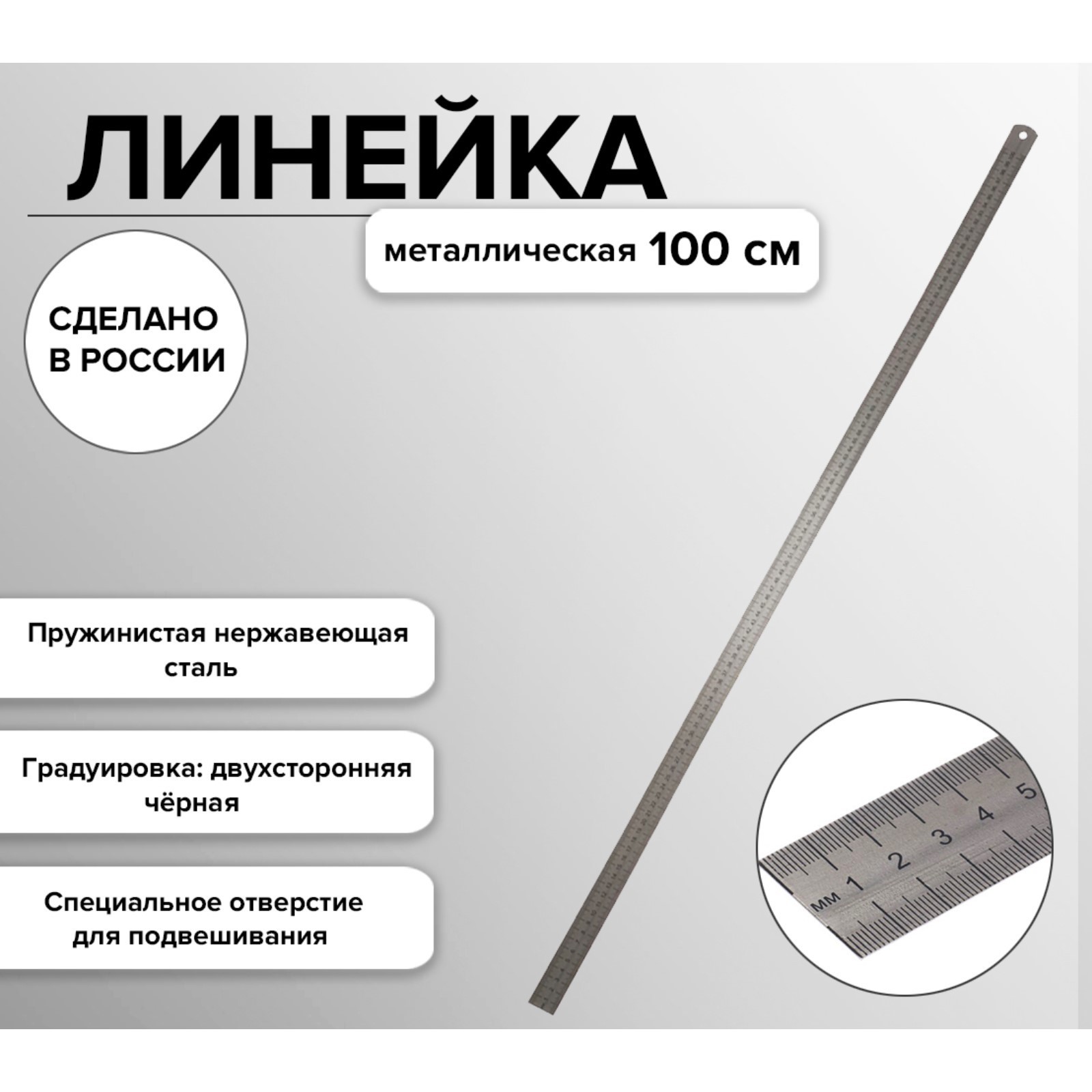 Линейка стальная (пружинистая нержавеющая) 100 см, в футляре